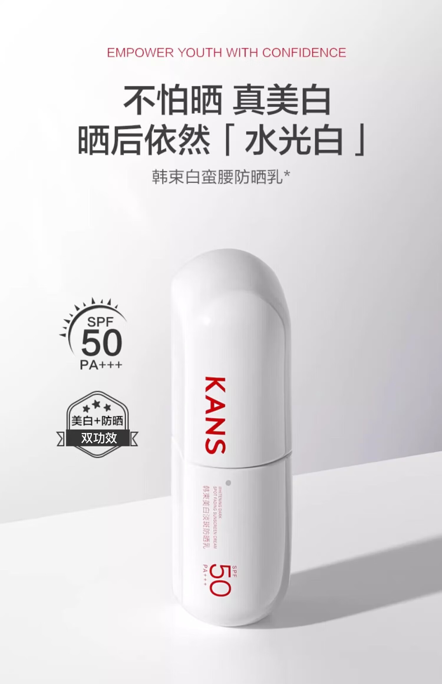 韩束(KanS)白蛮腰美白防晒乳SPF50面部防晒霜隔离春夏清爽不腻学生户外可用 美白亮肤防晒乳50ml*2