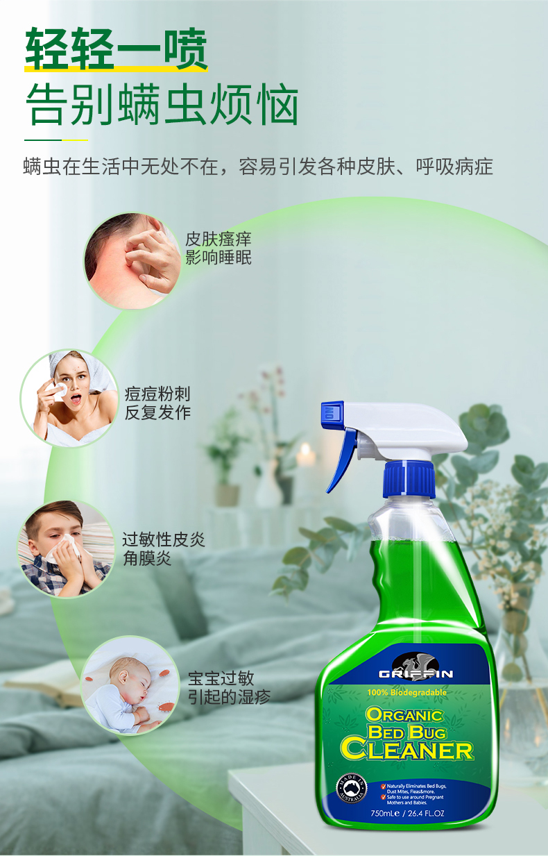 GRIFFIN澳洲除螨喷雾床上免洗免晒杀菌抑菌去螨虫家用品除螨祛螨虫喷雾剂 第2瓶半价【总共发2瓶】