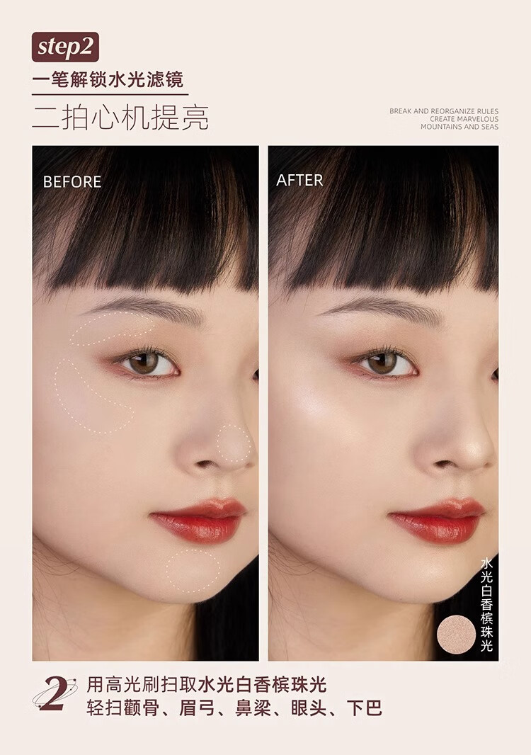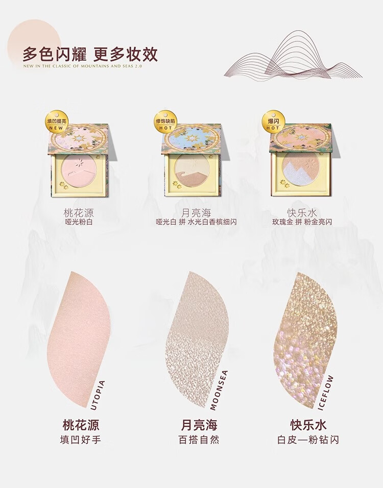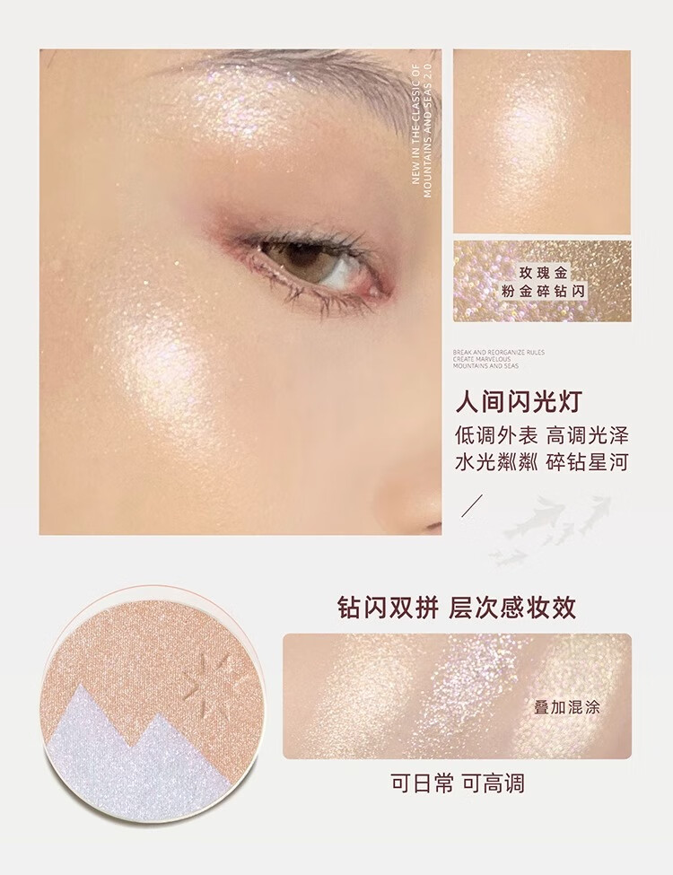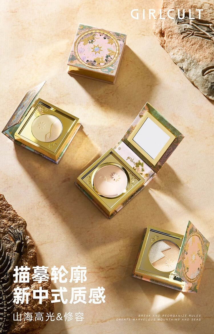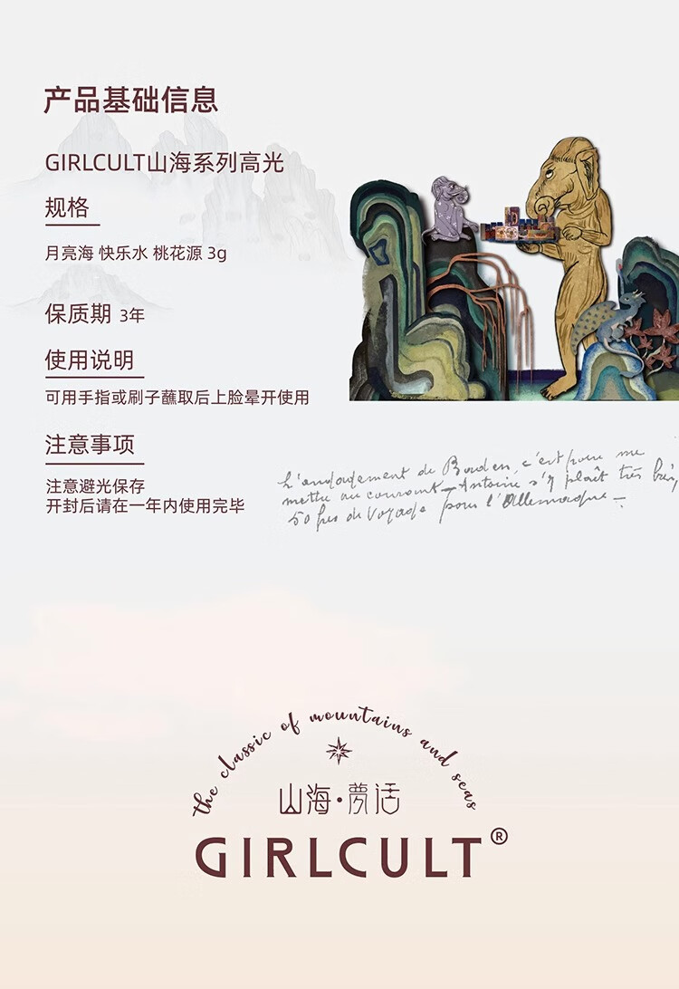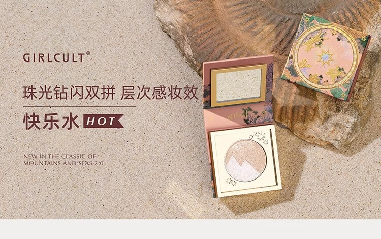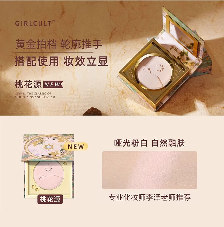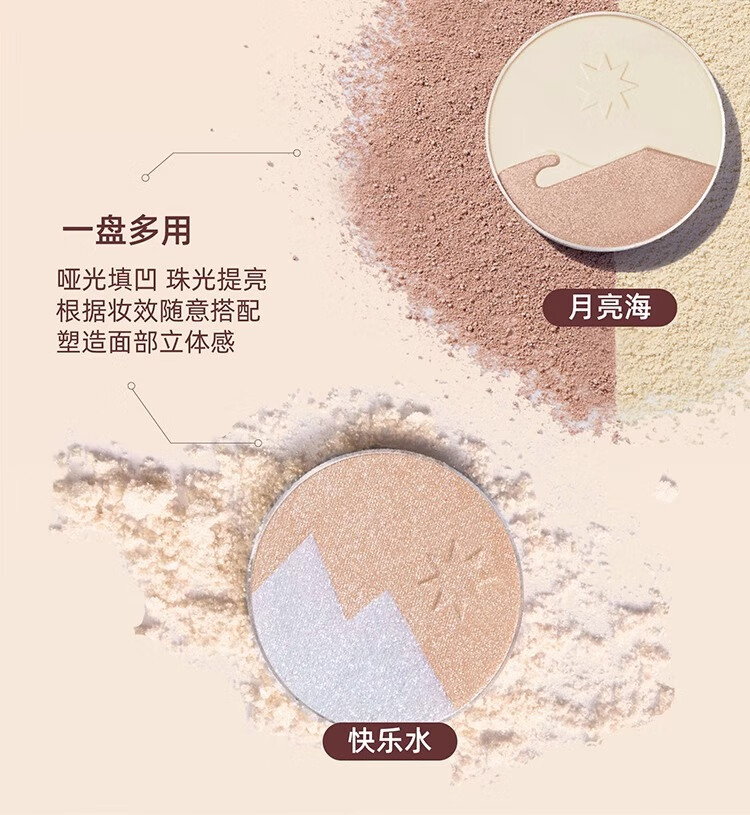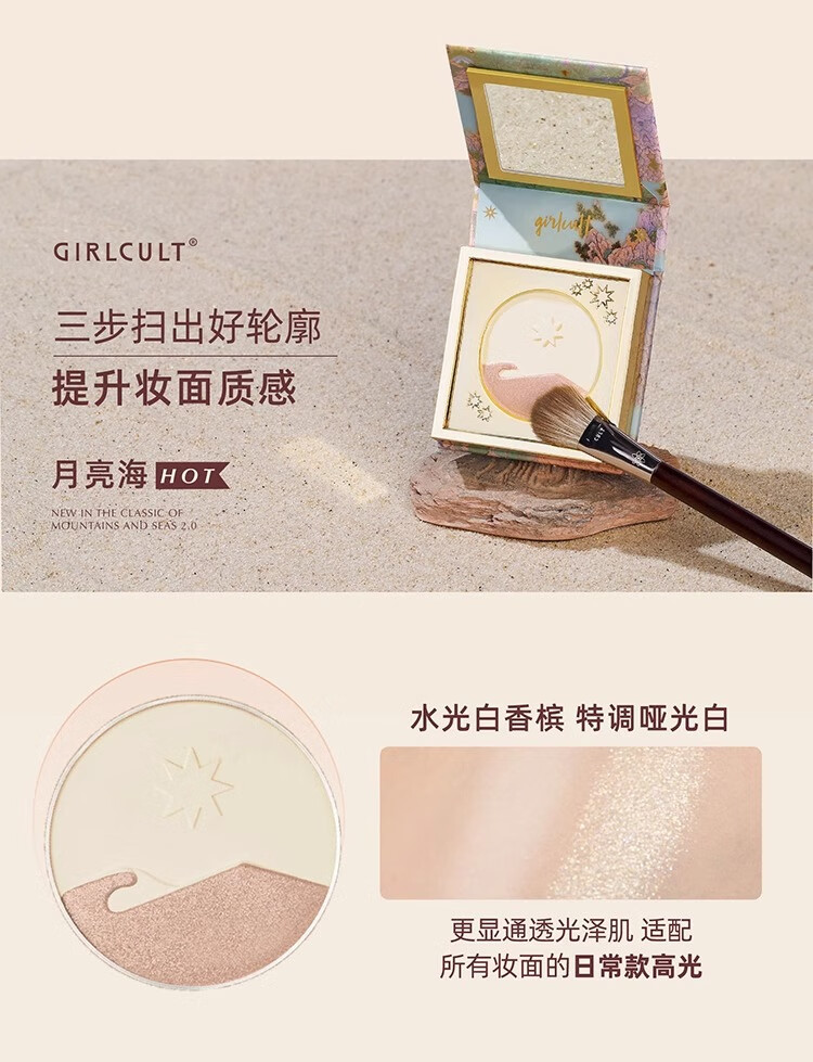 girlcult【跨年礼物】山海高光腮红修容三合一哑光膨胀色立体脸部桃花源女 【自然百搭】月亮海(哑光白+香槟细闪)