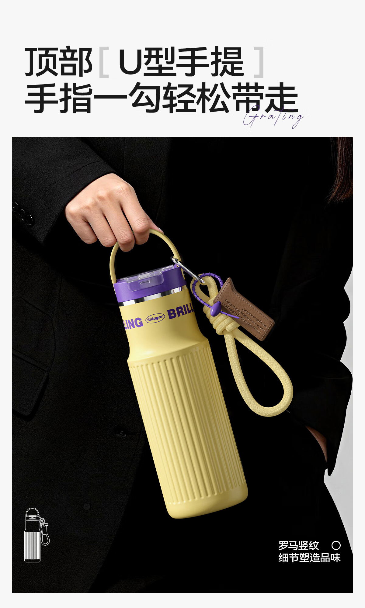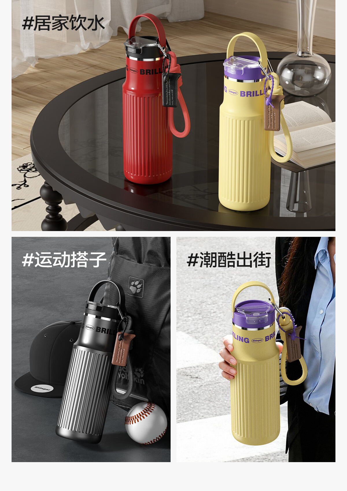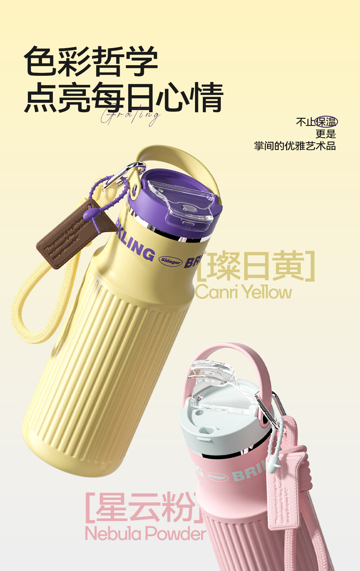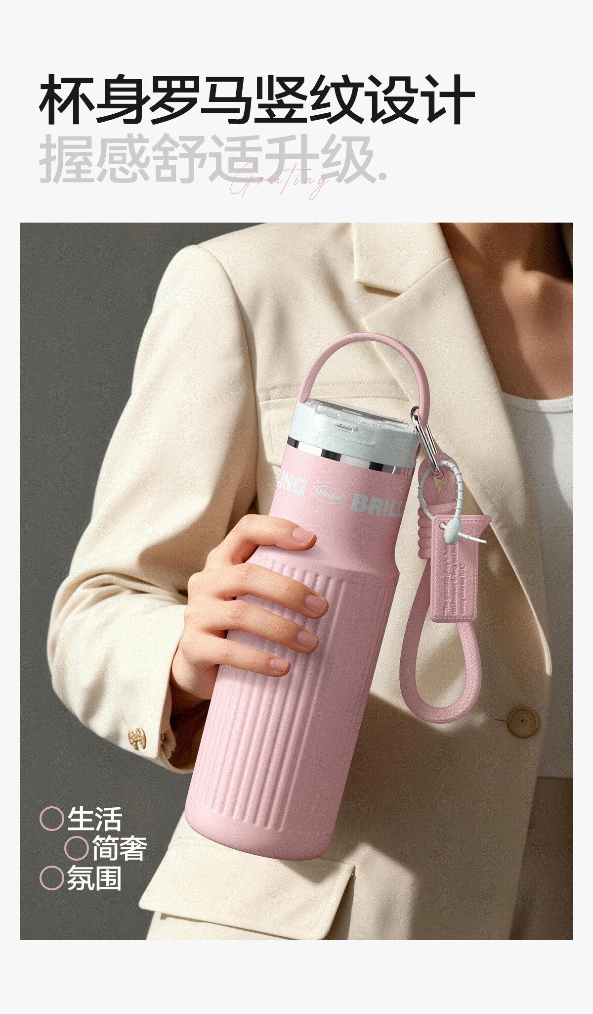 世大家保温杯女士水杯高颜值提手吸管杯字大容量便携不锈钢办公室水杯 星云粉【S31603不锈钢内胆】赠拎绳 570ML
