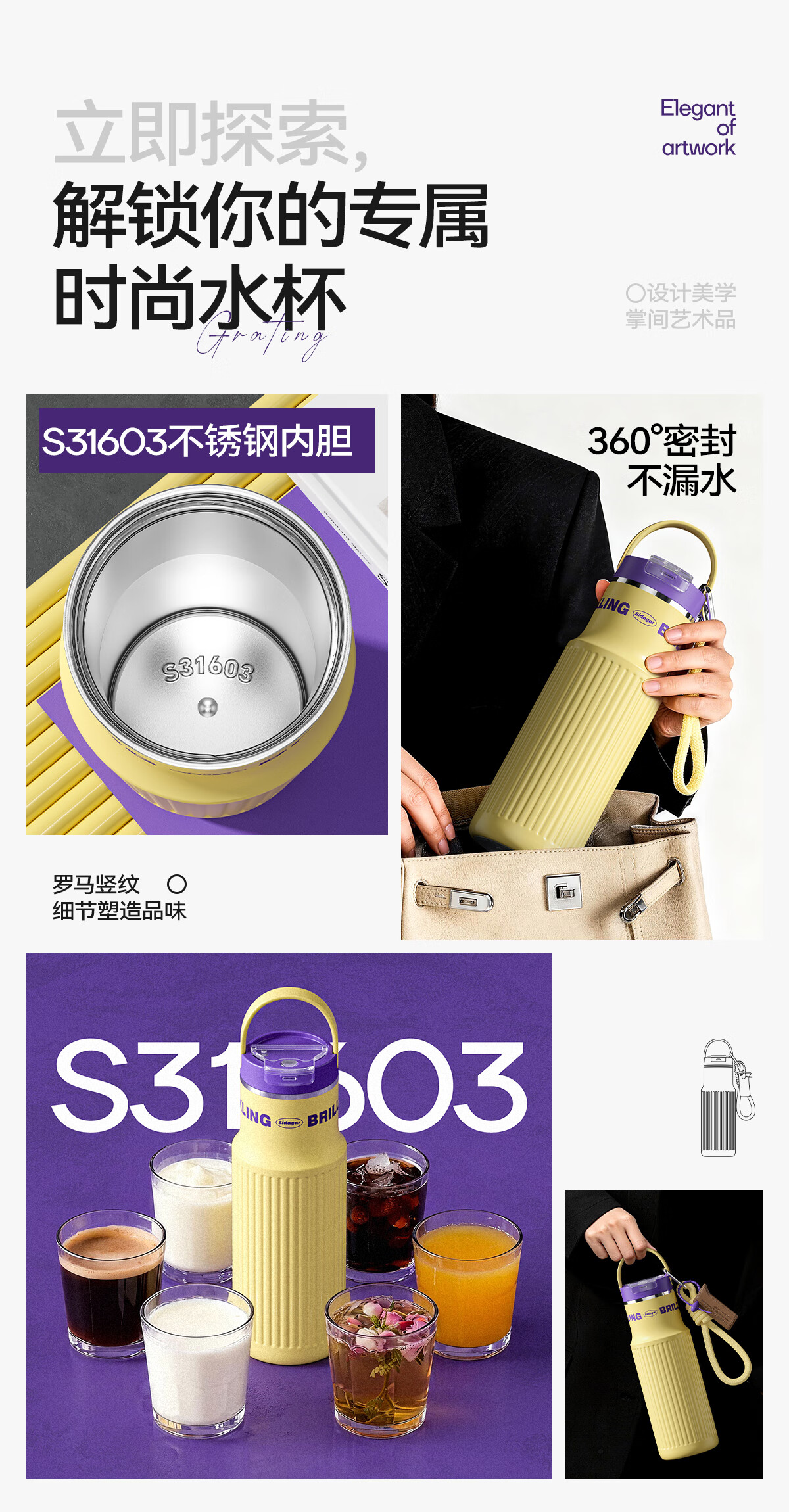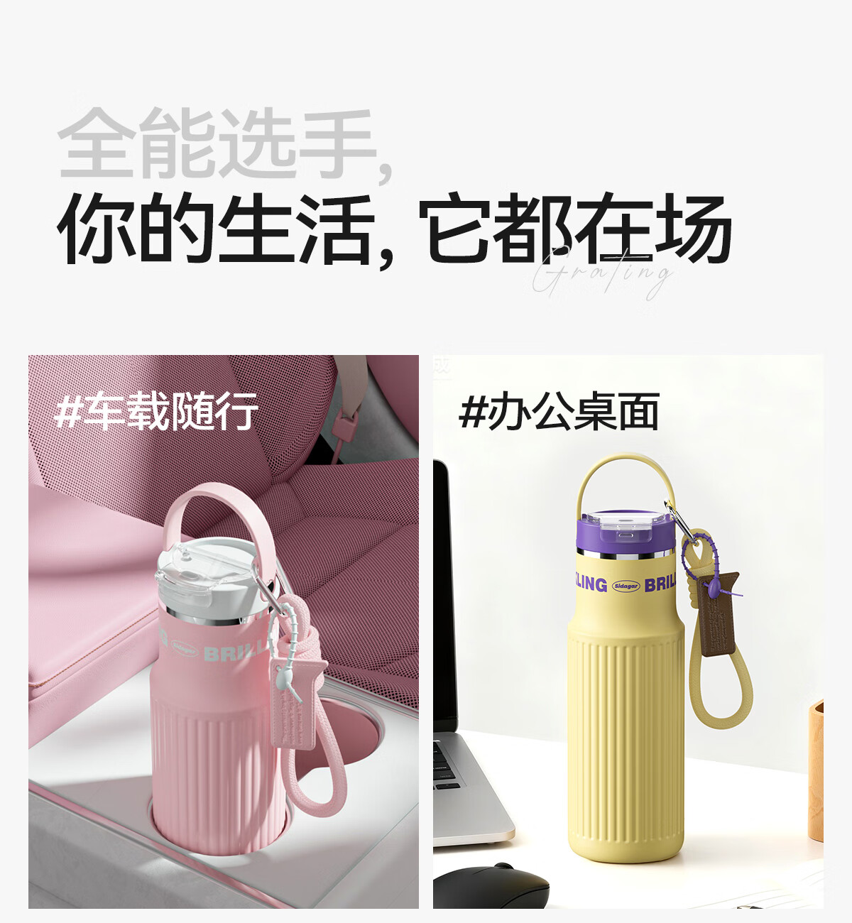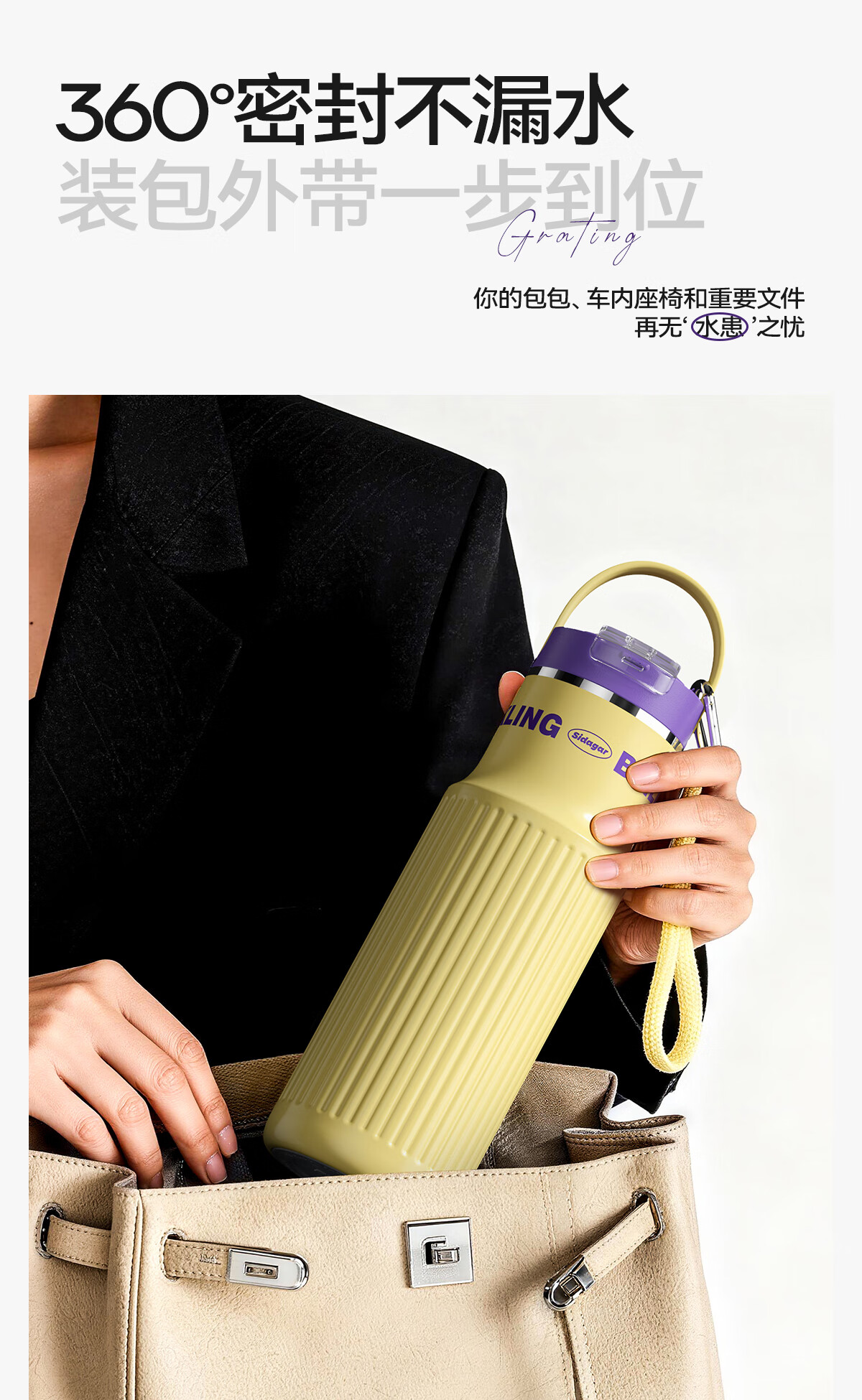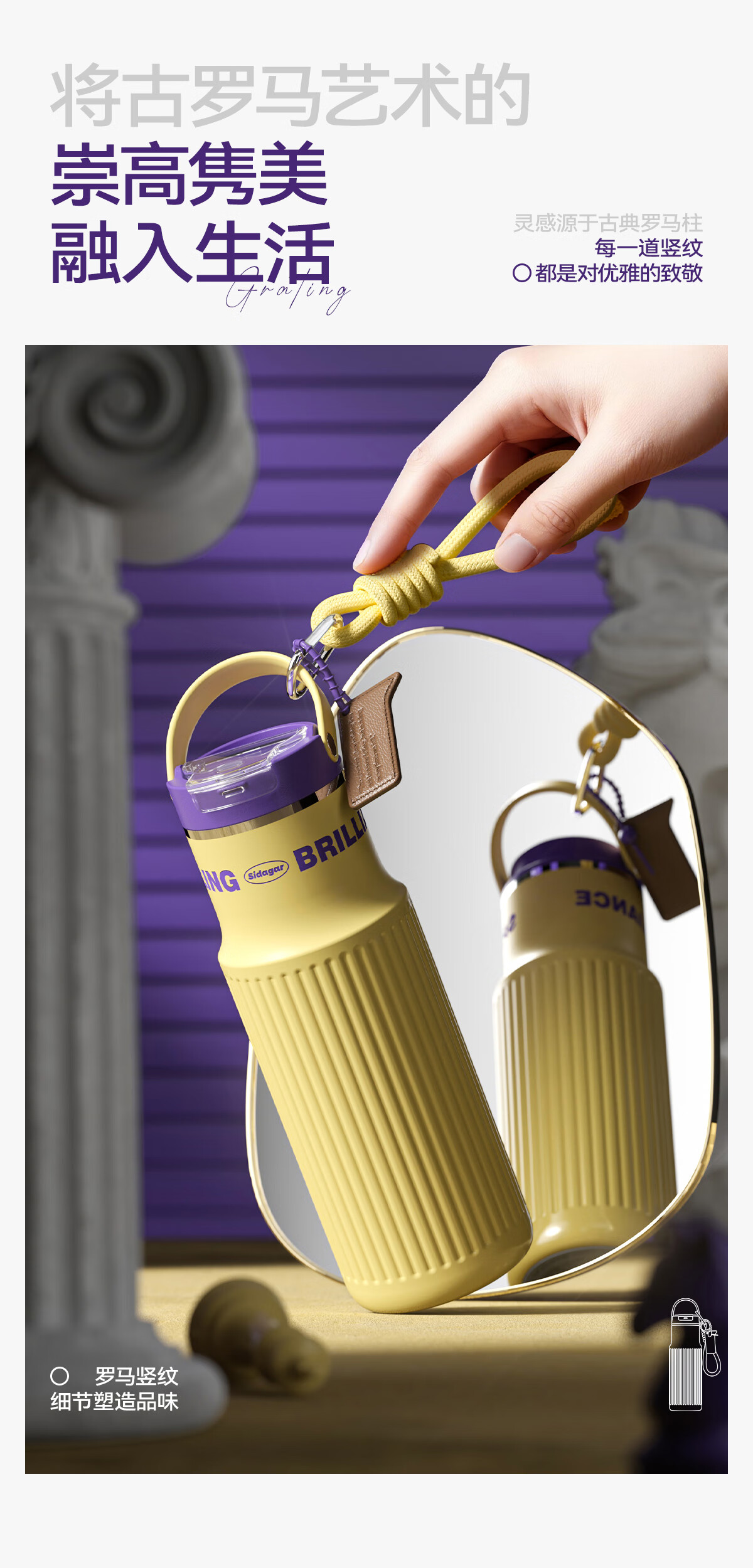世大家保温杯女士水杯高颜值提手吸管杯字大容量便携不锈钢办公室水杯 星云粉【S31603不锈钢内胆】赠拎绳 570ML