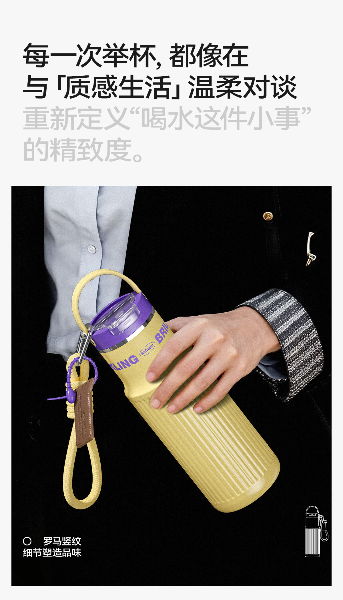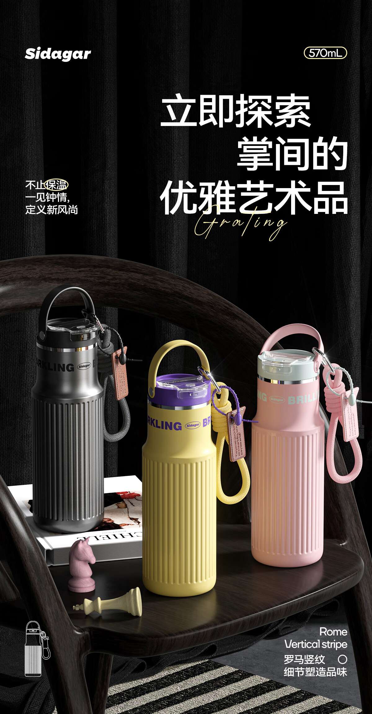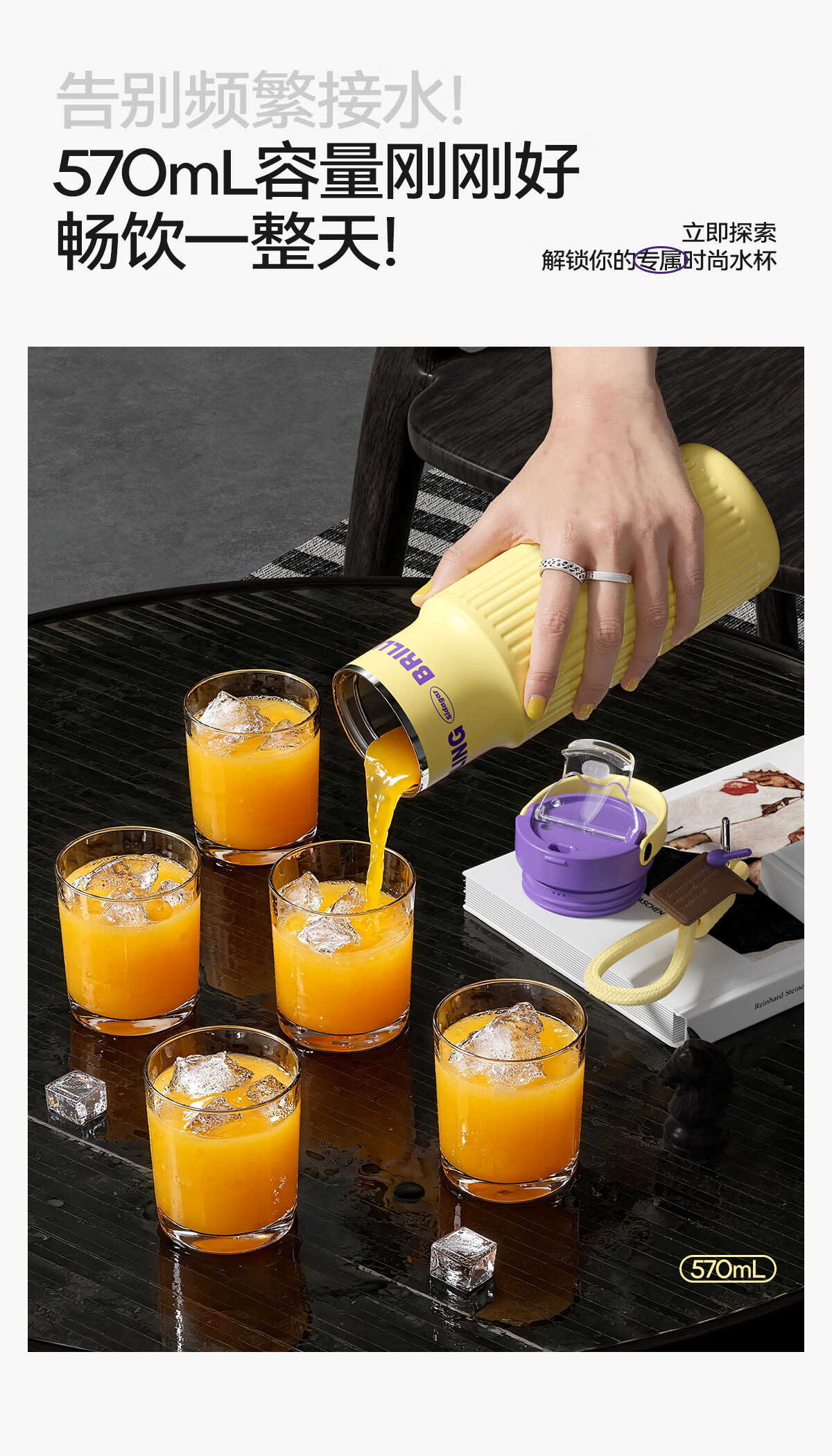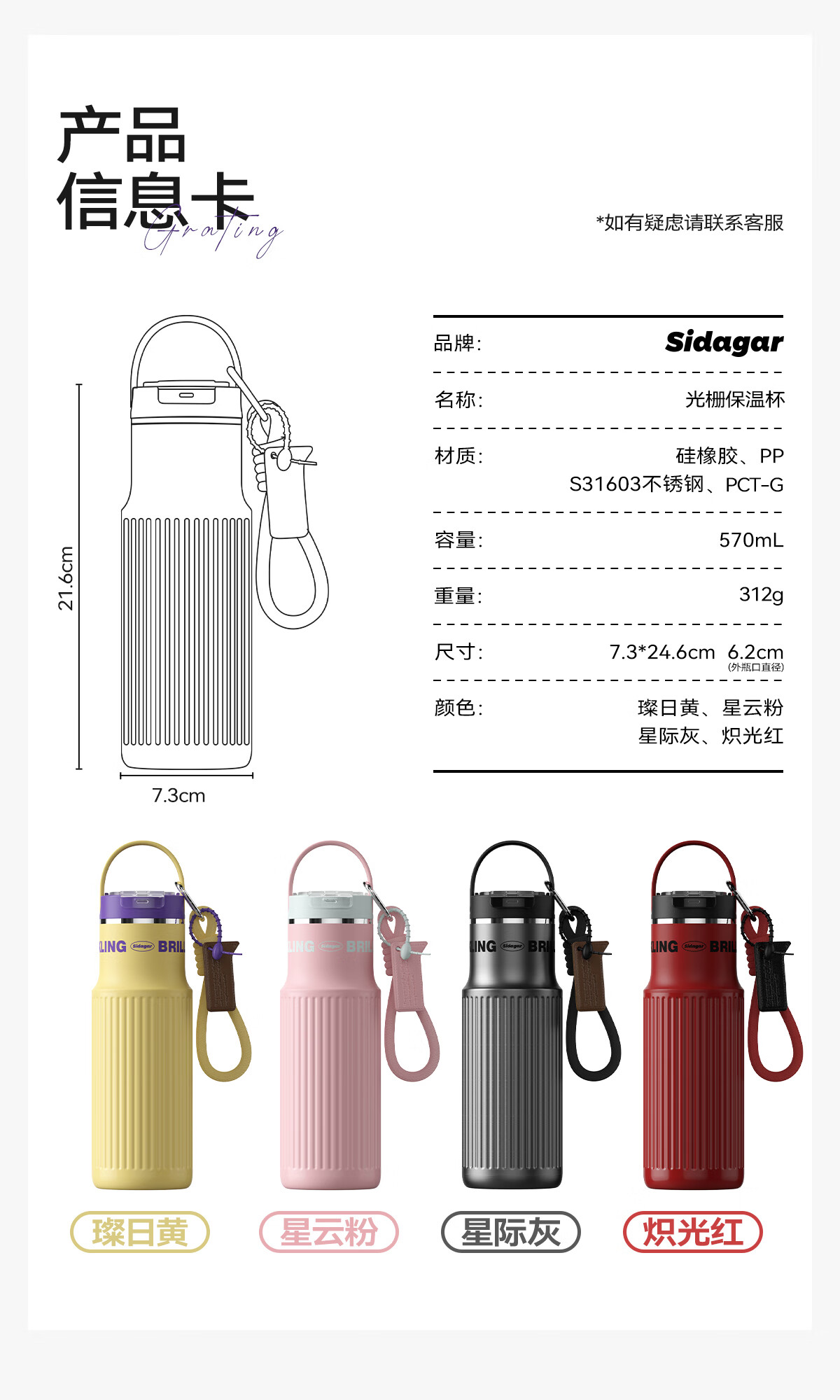 世大家保温杯女士水杯高颜值提手吸管杯字大容量便携不锈钢办公室水杯 星云粉【S31603不锈钢内胆】赠拎绳 570ML