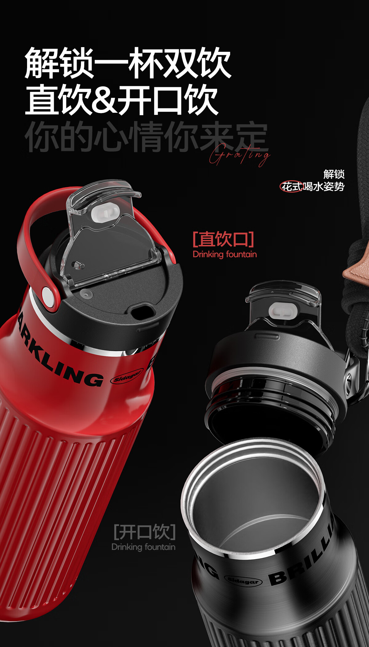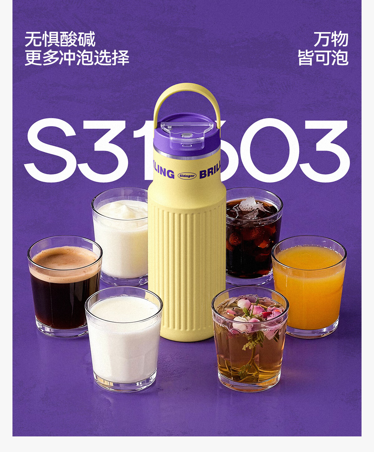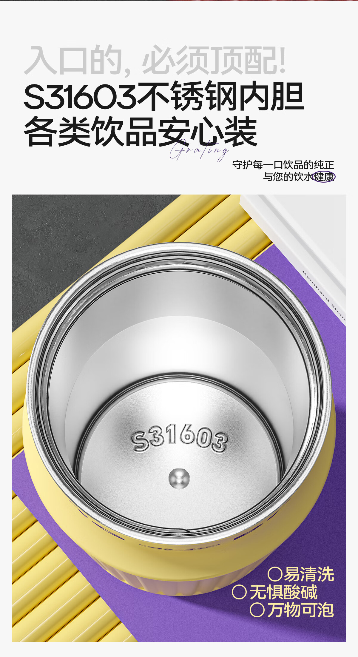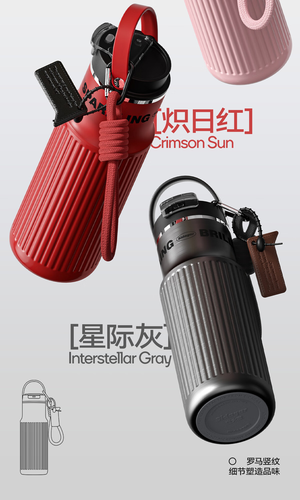 世大家保温杯女士水杯高颜值提手吸管杯字大容量便携不锈钢办公室水杯 星云粉【S31603不锈钢内胆】赠拎绳 570ML