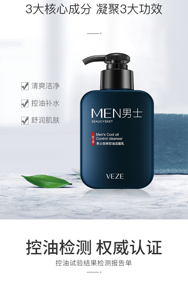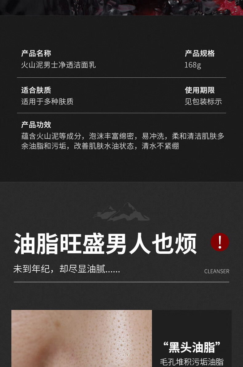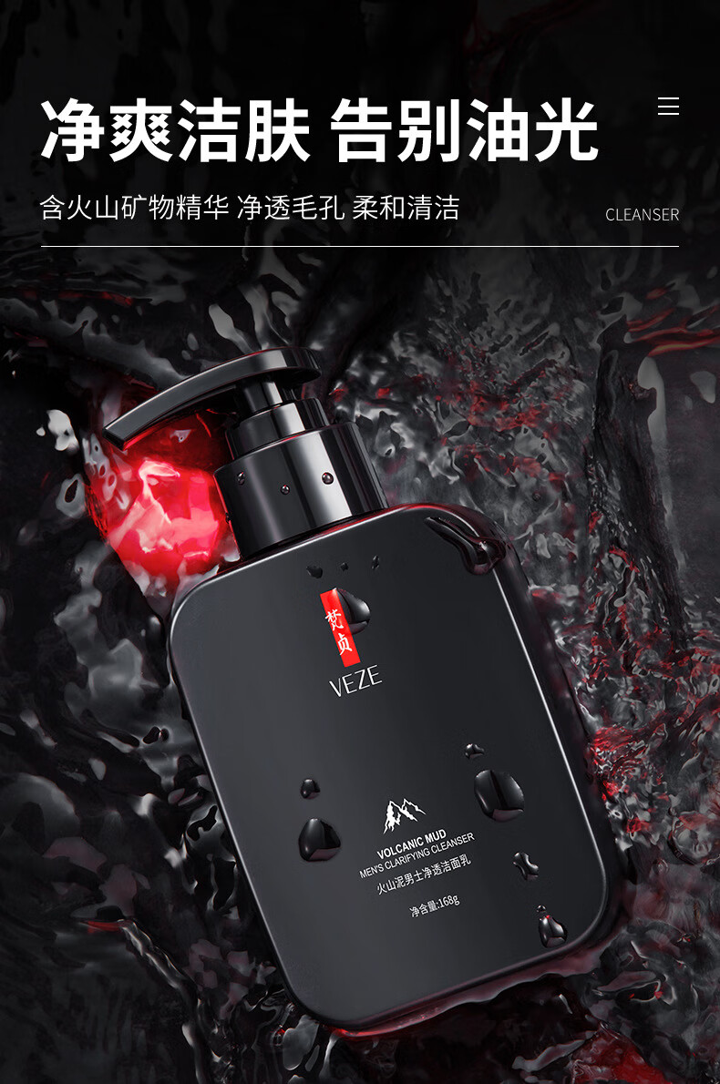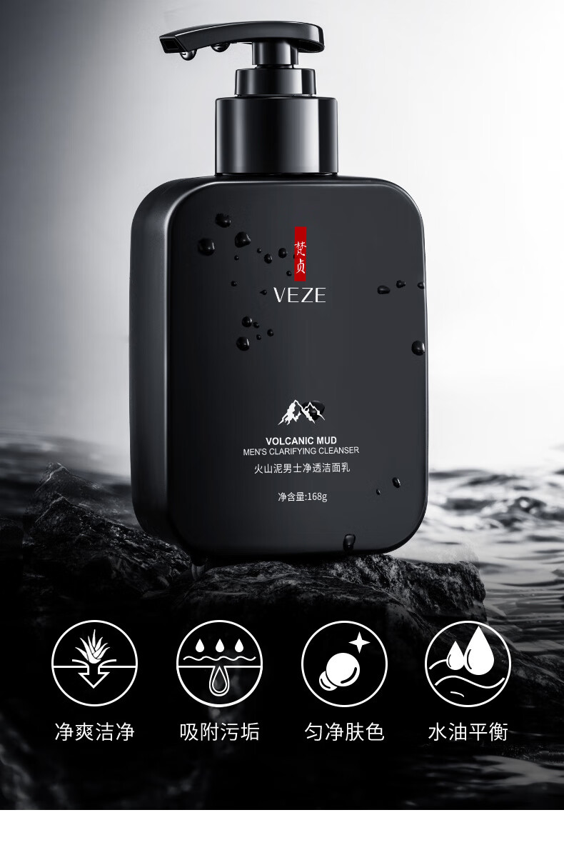 泊泉雅男士专用洗面奶补水保湿清爽控油深层洁面洁面乳批发 168g VEZE梵贞火山泥男士净透洁面乳(新)