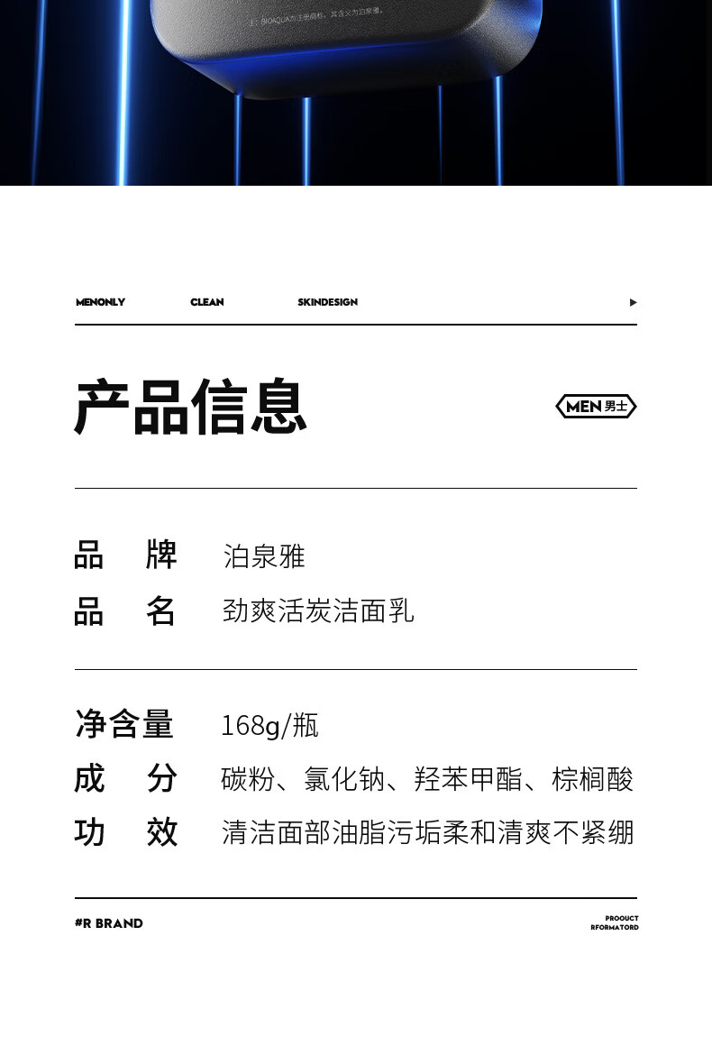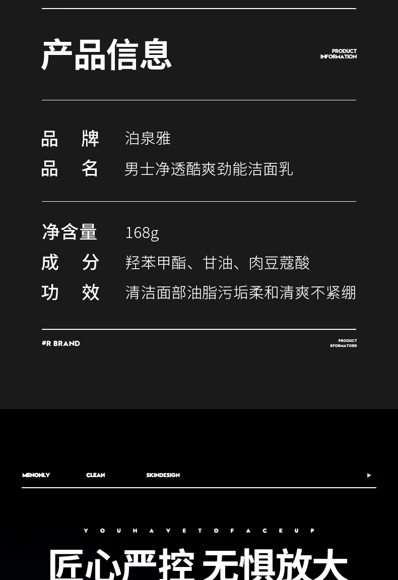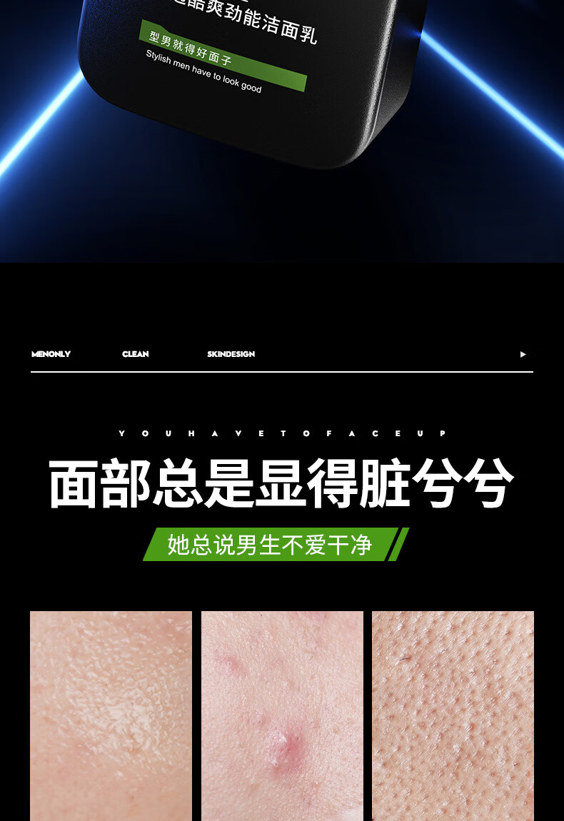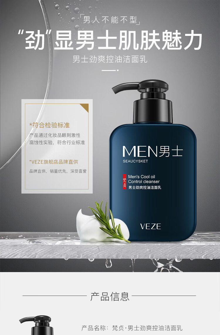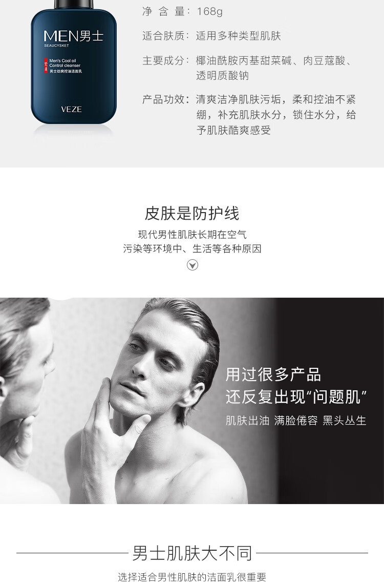 泊泉雅男士专用洗面奶补水保湿清爽控油深层洁面洁面乳批发 168g VEZE梵贞火山泥男士净透洁面乳(新)