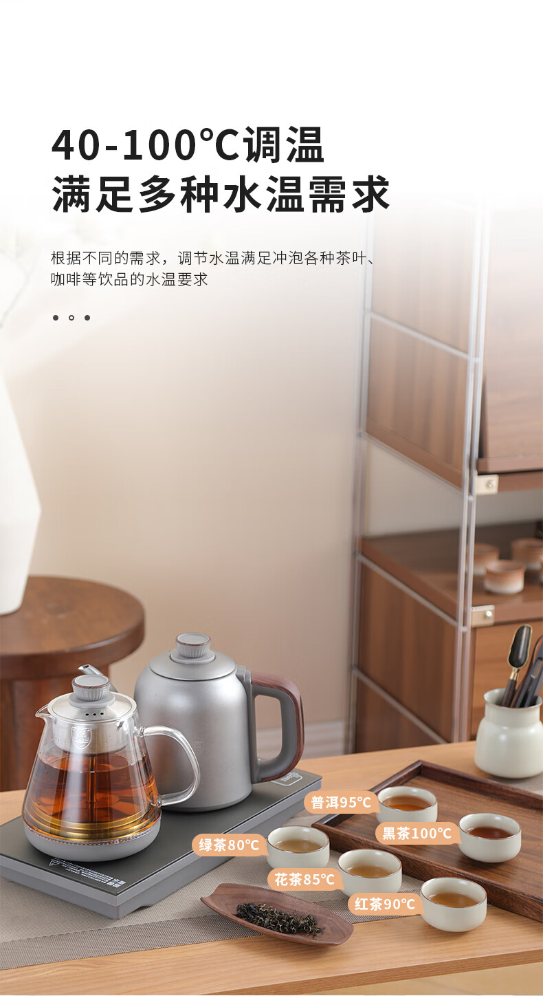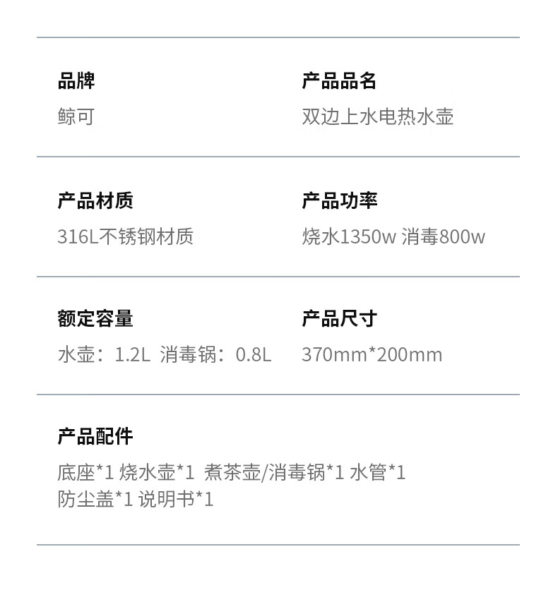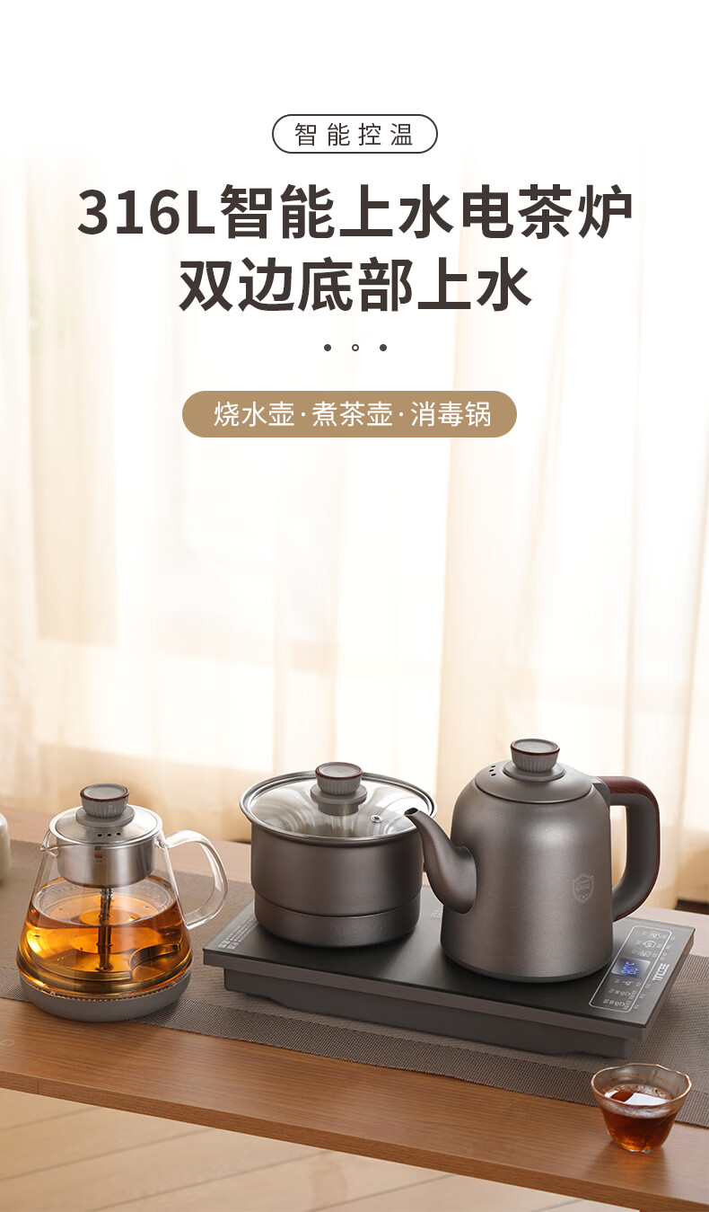 鲸可全自动烧水壶电热水壶煮茶器电茶壶泡茶壶台嵌式电饮水机一体上水壶多段保温办公室小电器 1.2L 手柄上水316不锈钢单壶【RXDC112】