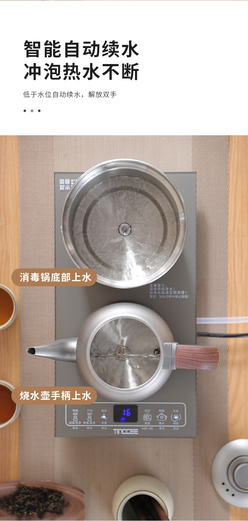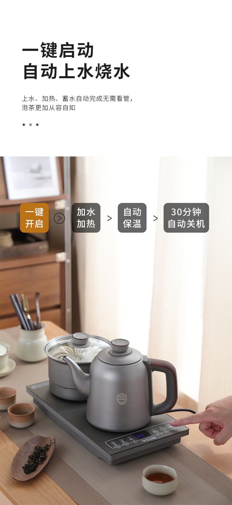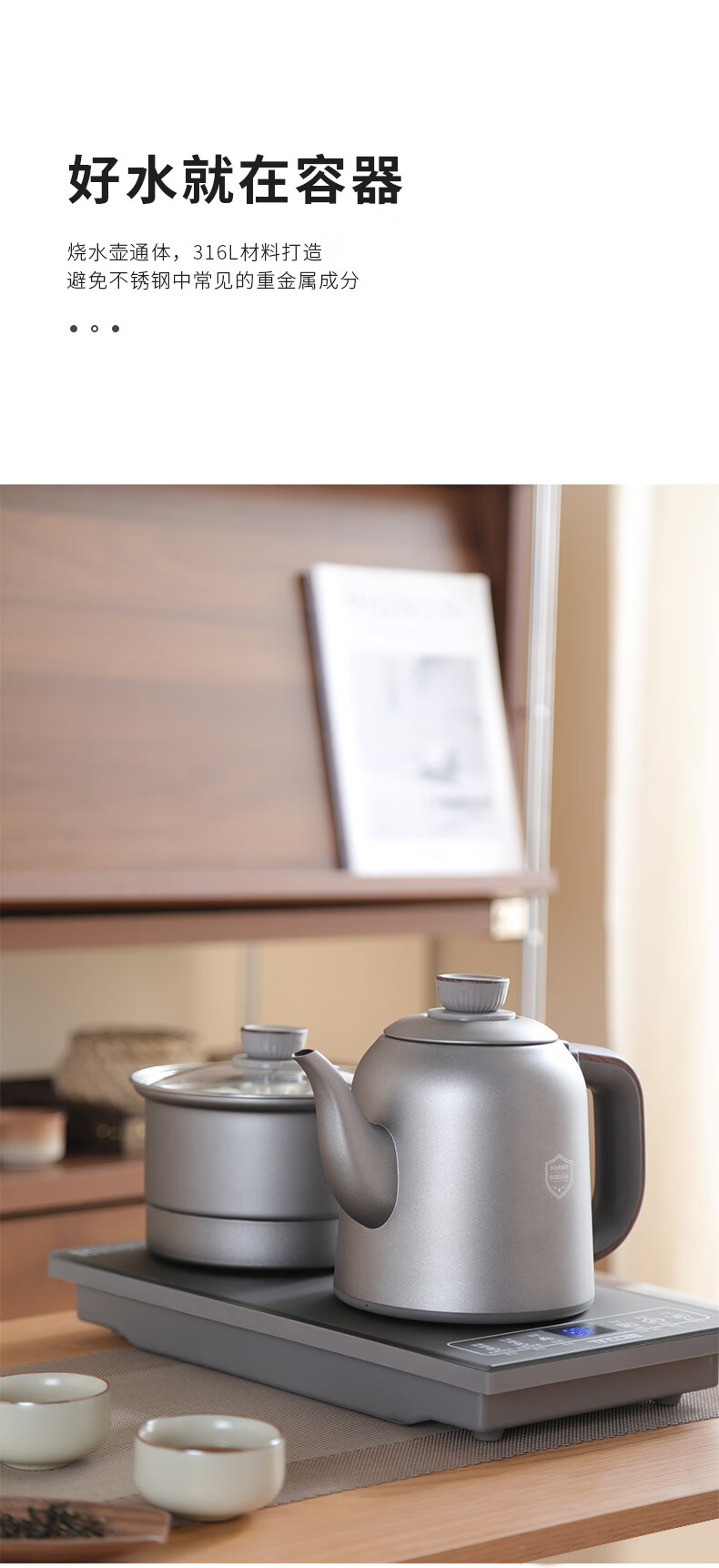 鲸可全自动烧水壶电热水壶煮茶器电茶壶泡茶壶台嵌式电饮水机一体上水壶多段保温办公室小电器 1.2L 手柄上水316不锈钢单壶【RXDC112】