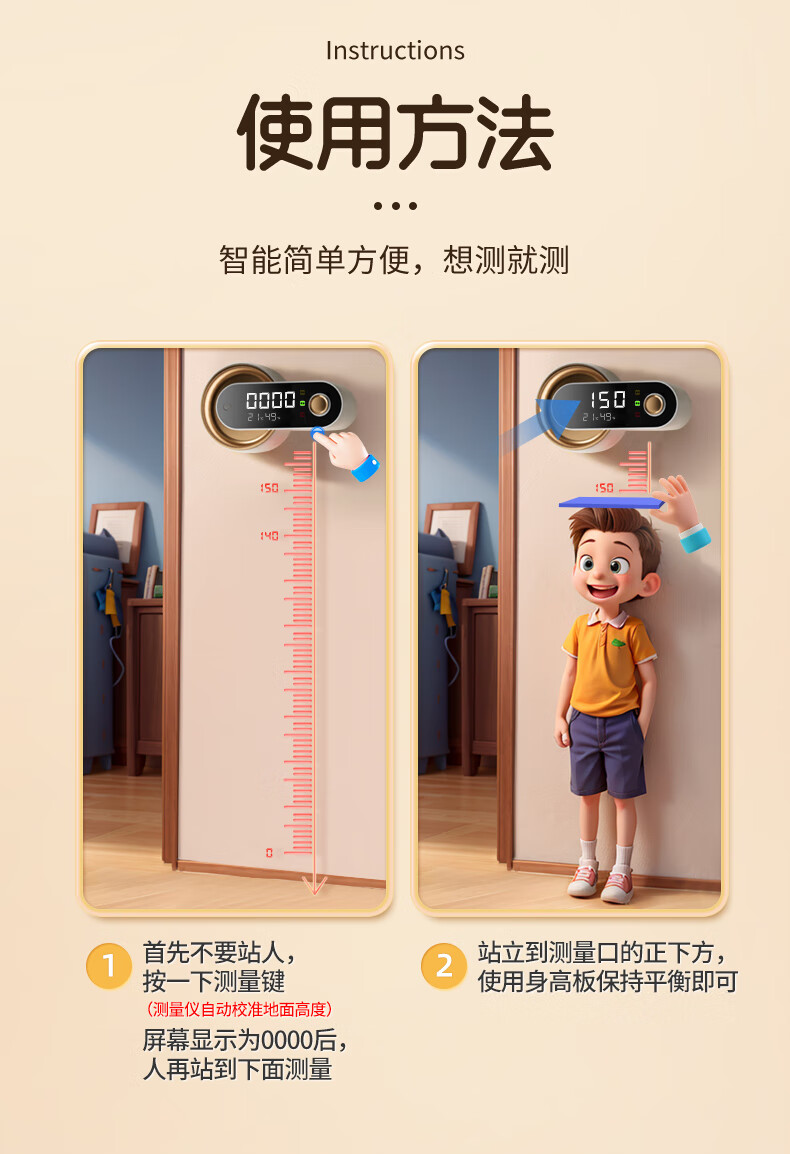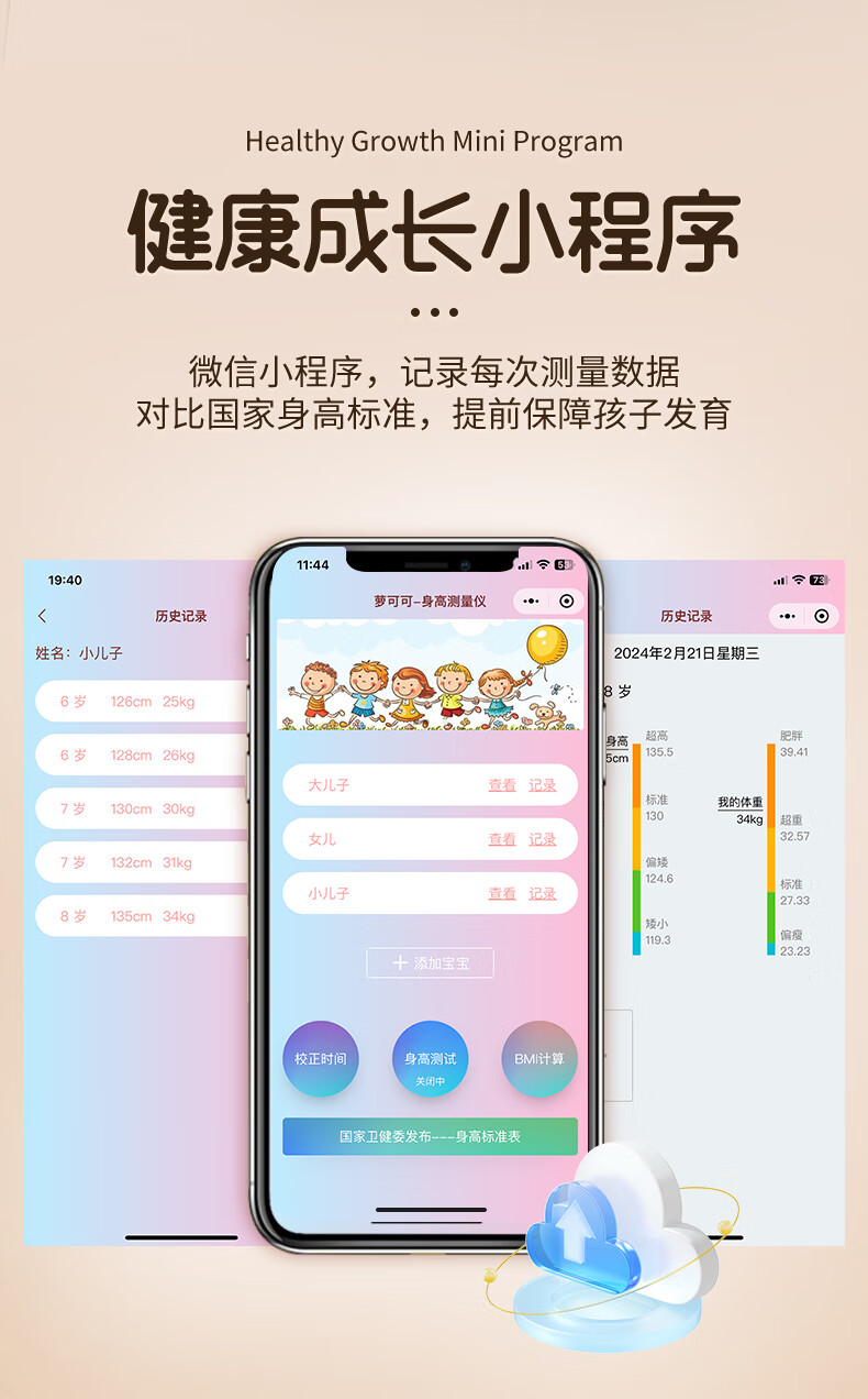 萝可可高精准毫米值身高测量仪 儿童成人电子红外线身高测量器 家用智能量身高神器小程序记录