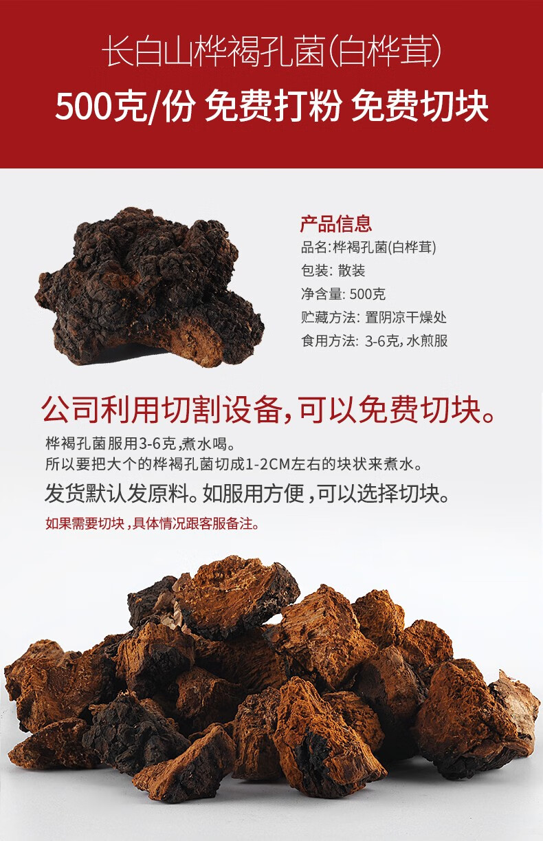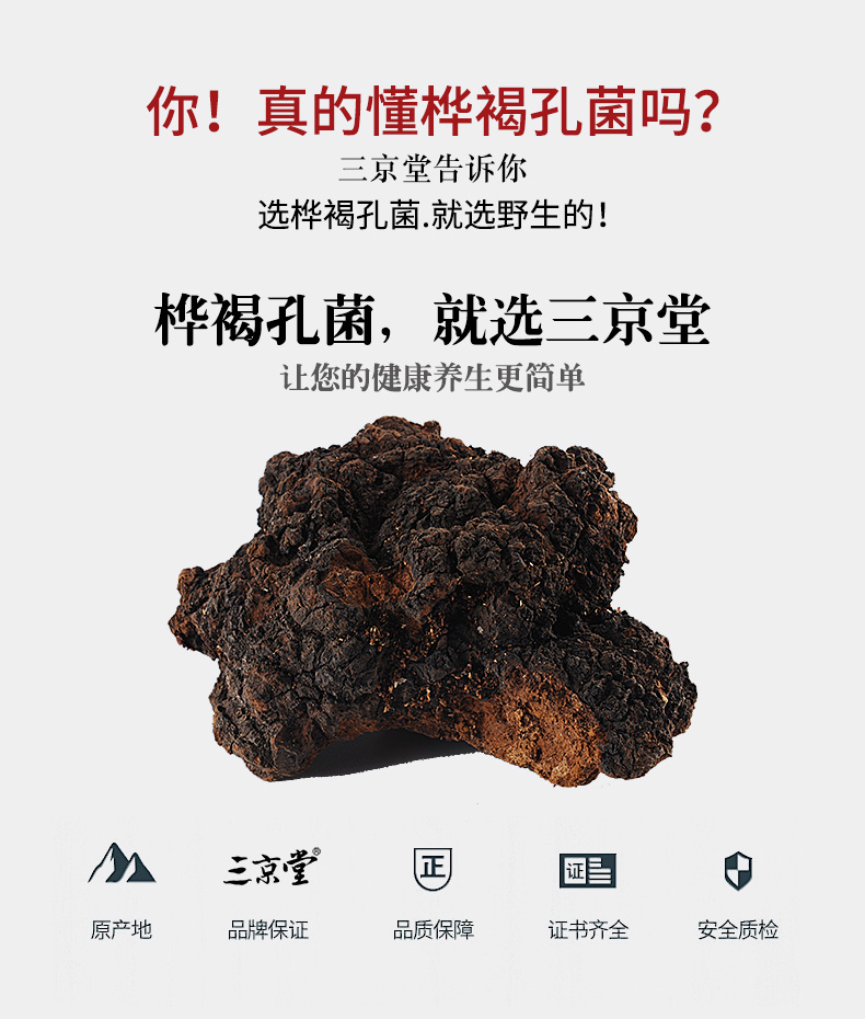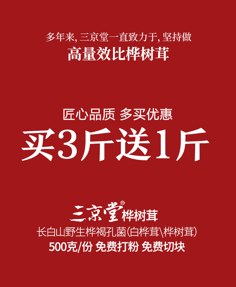 三京堂白桦茸500g桦树茸长白山野生桦褐孔菌茶黑金颗粒可搭桑黄灵芝送礼