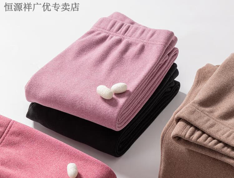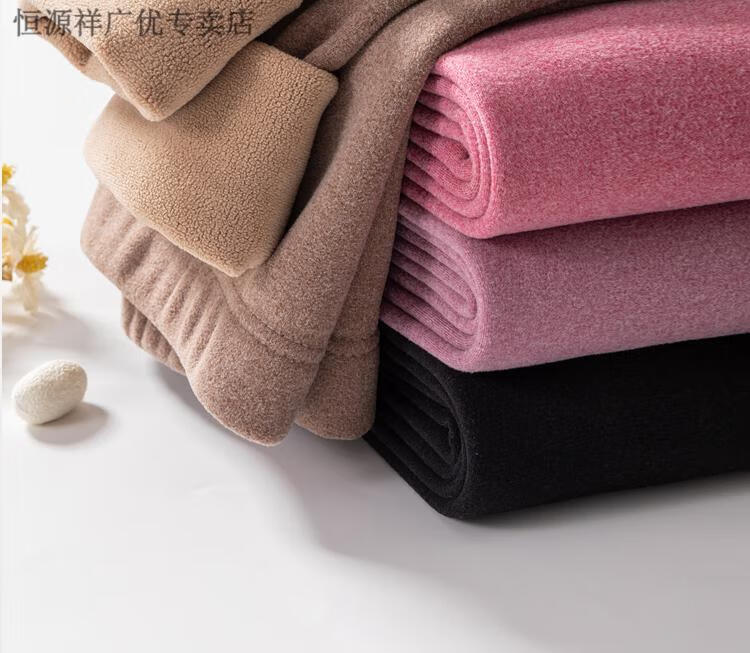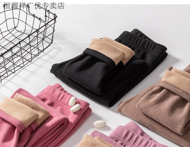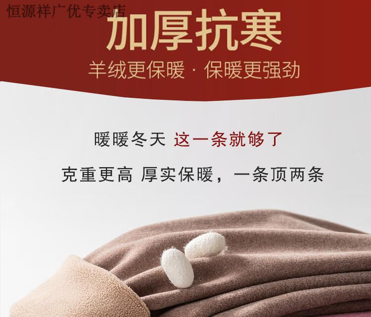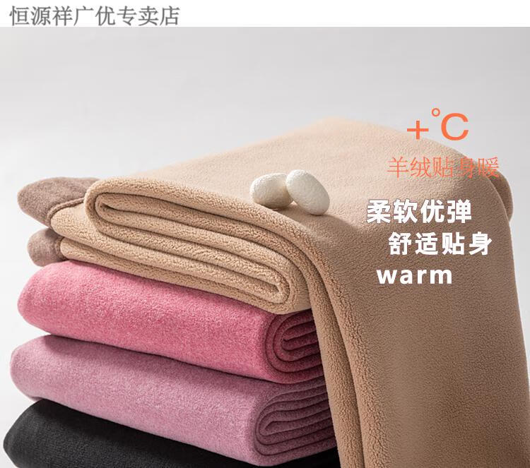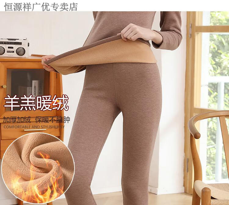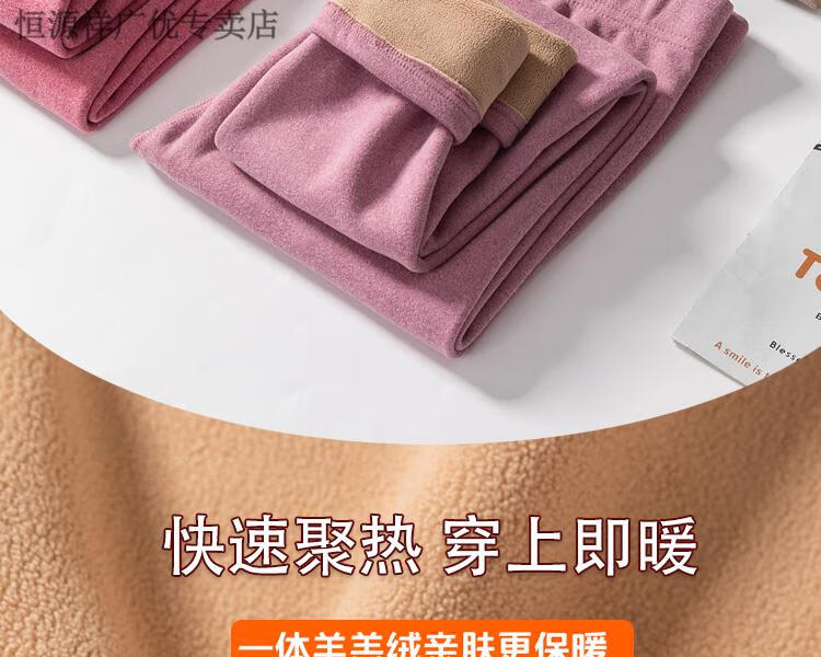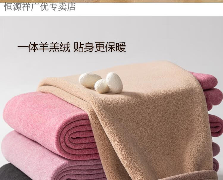 恒源祥女士加厚加绒保暖裤一体羊羔绒中高腰羊毛打底棉毛线裤中老年大码 一体羊羔绒 -紫色 2XL 【120-140斤】
