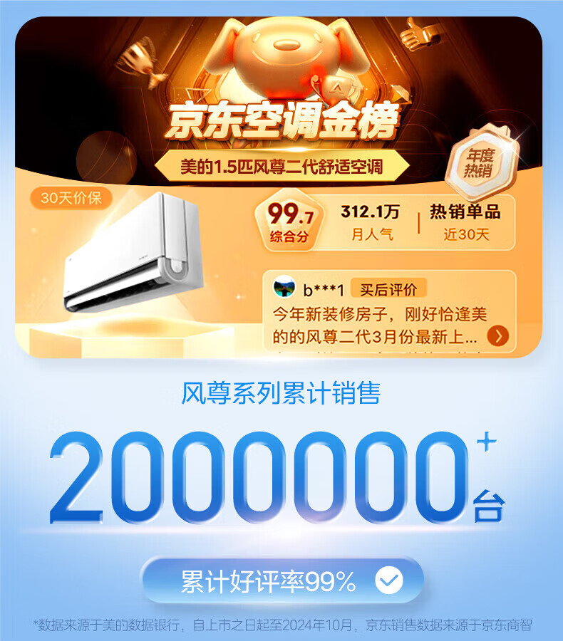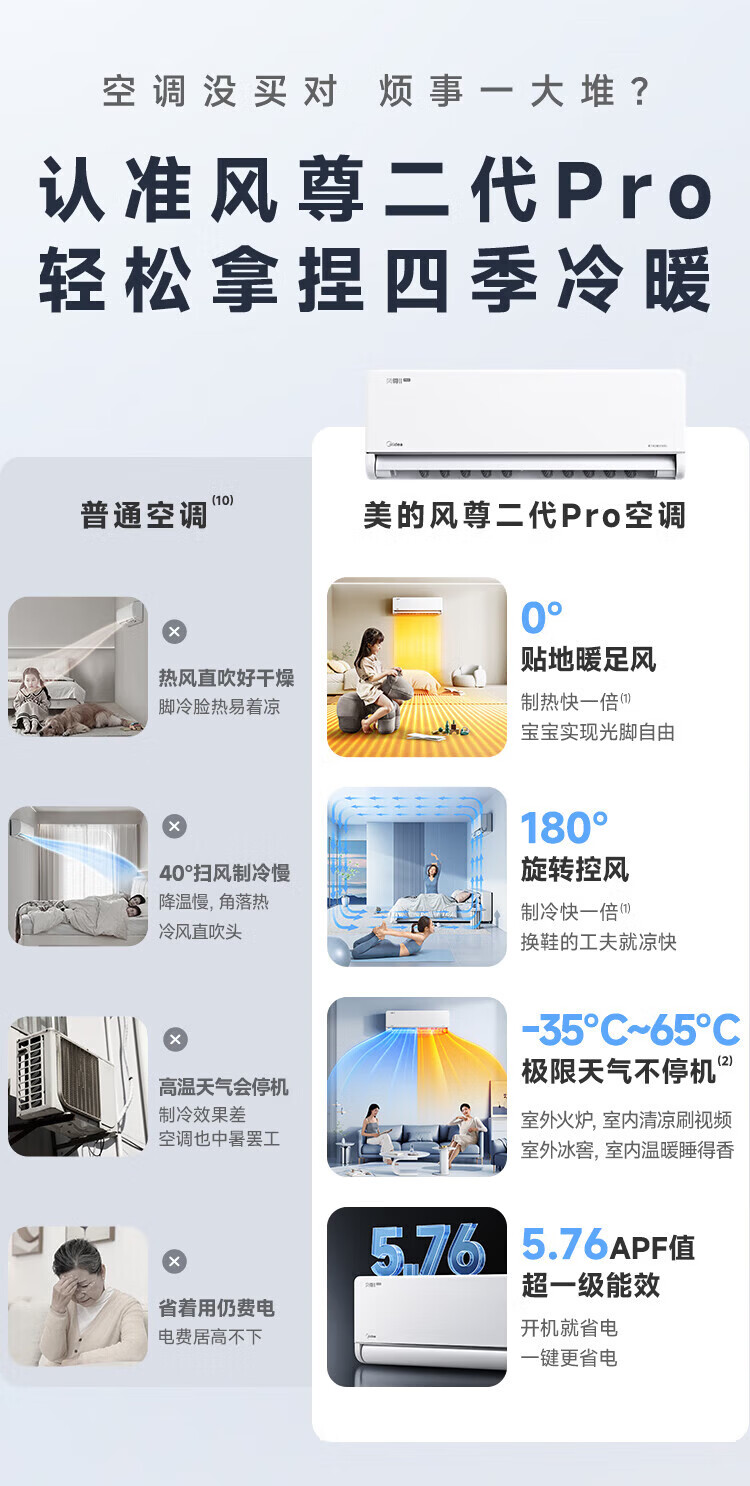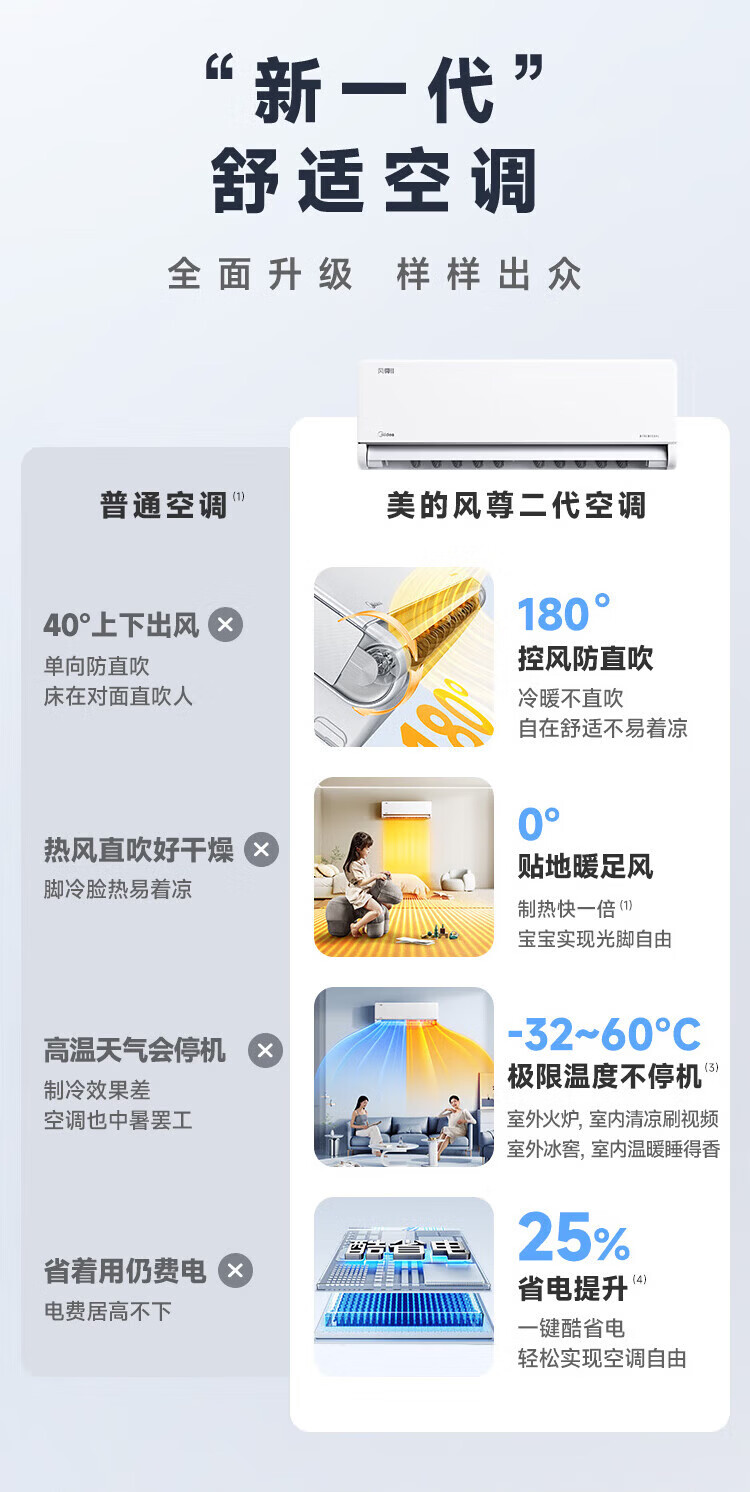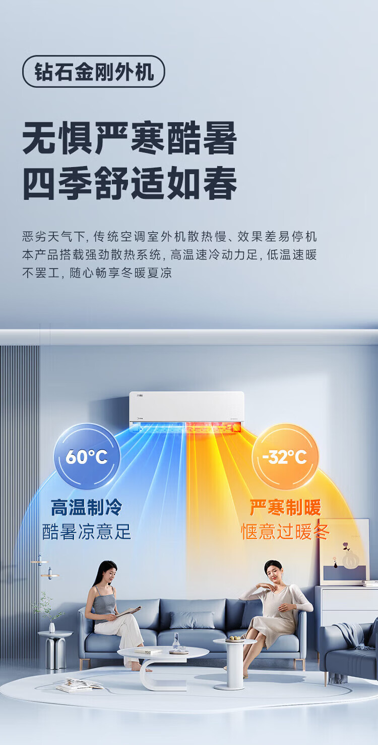 美的空调挂机大1.5匹 酷省电Ultra新品风尊二代Pro 新一级能效变频冷暖卧室空调家用省电双排纯铜管 大1.5匹 一级能效双排铜管Ultra省电46%
