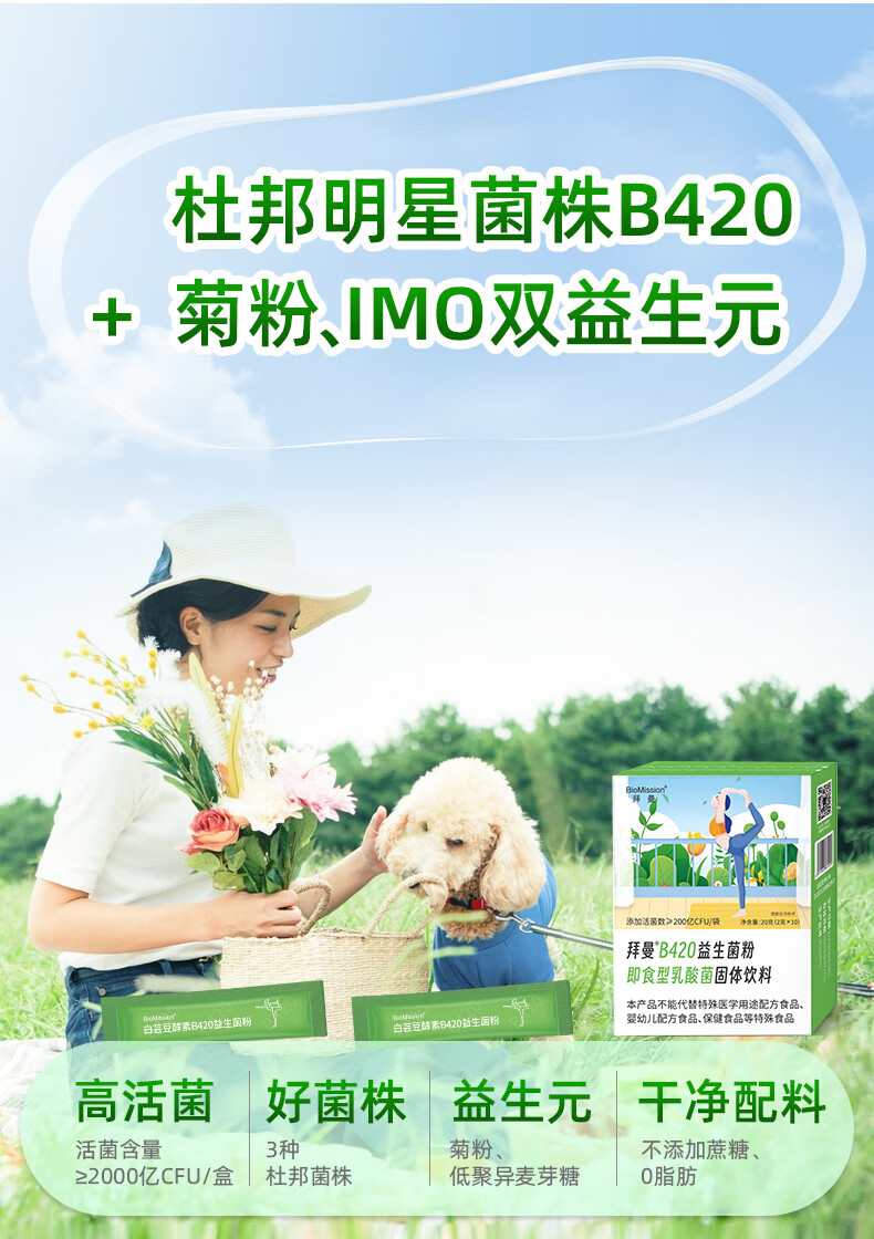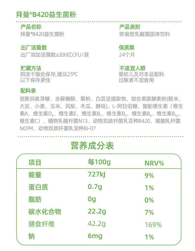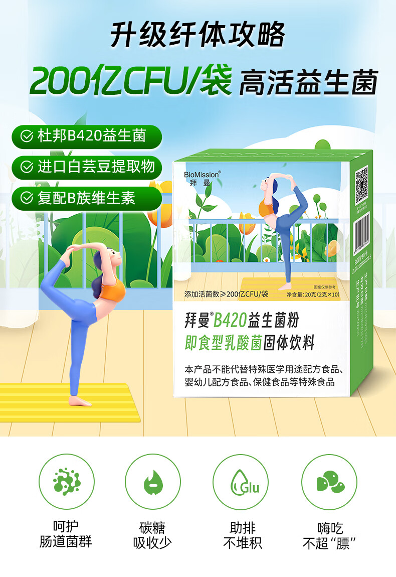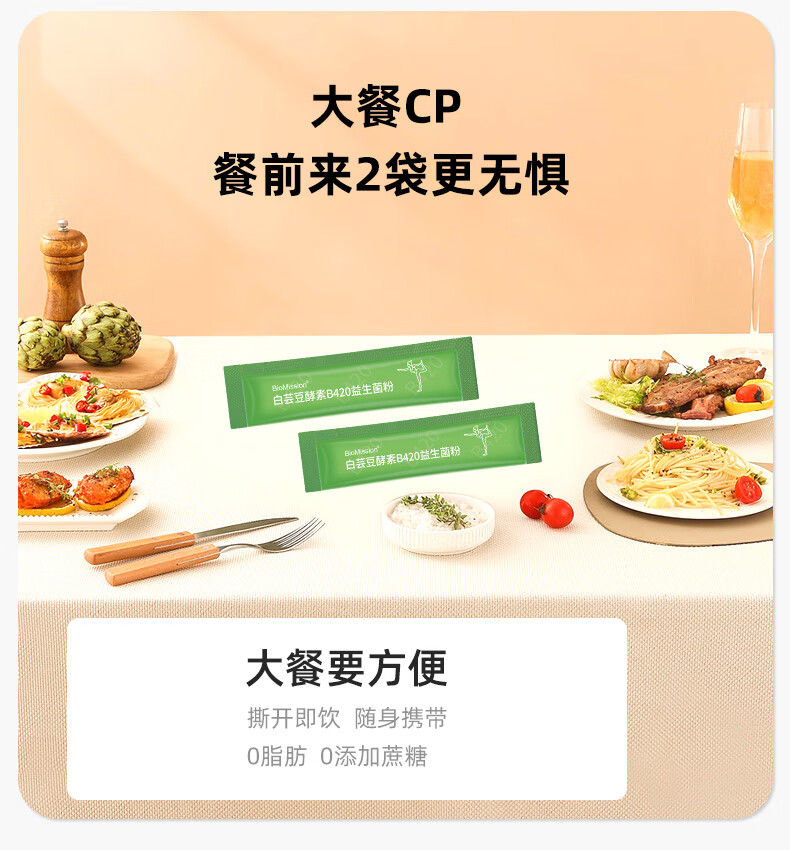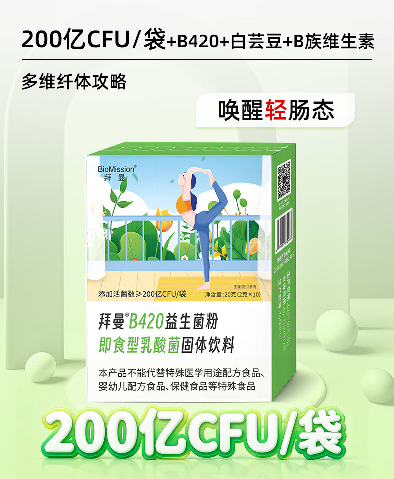 拜曼白芸豆酵素B420益生菌粉膳食纤维白芸豆阻断剂餐前即食型乳酸菌 5盒(实发10盒)