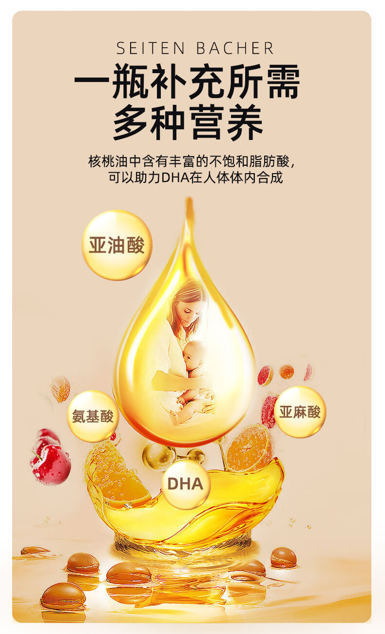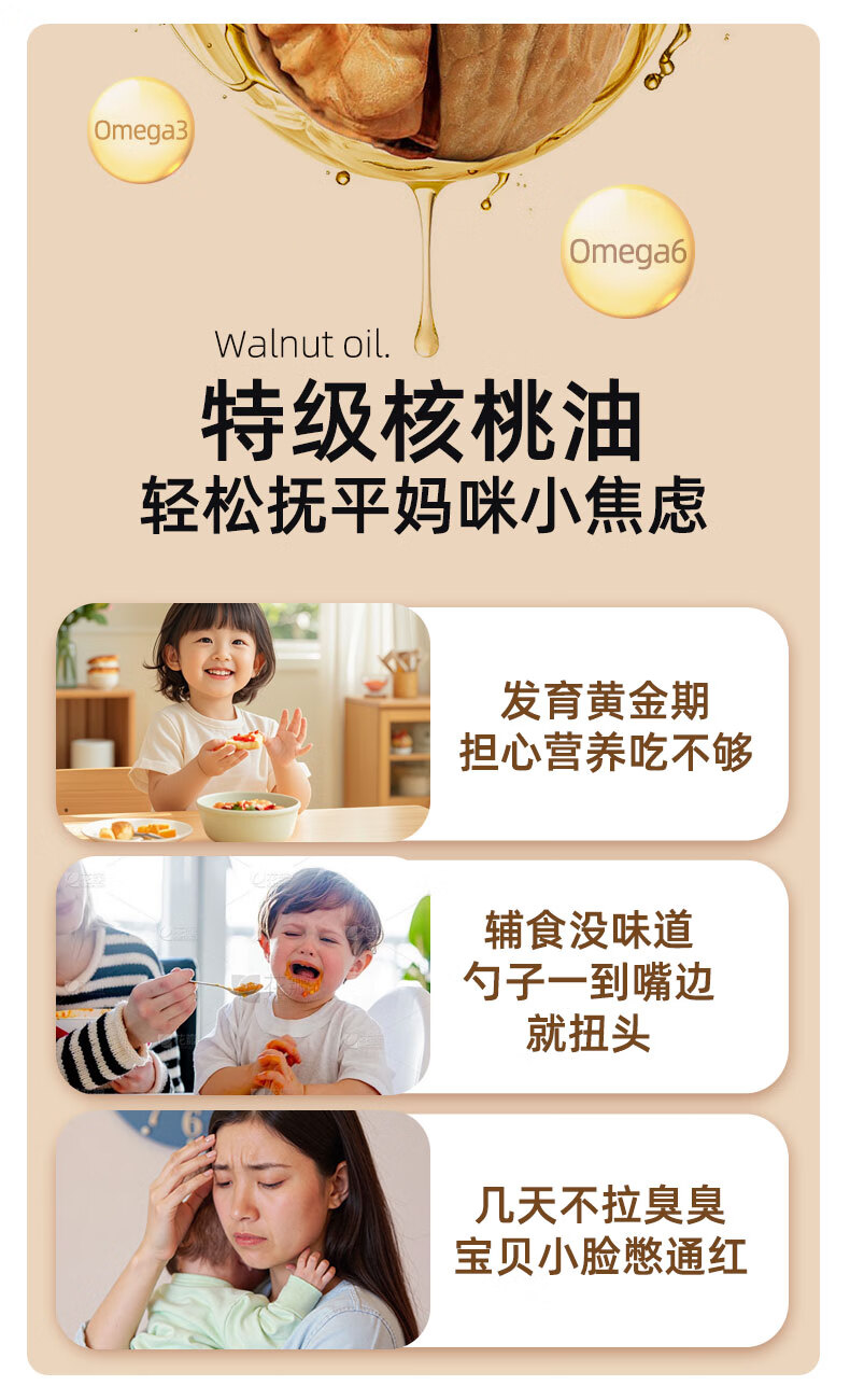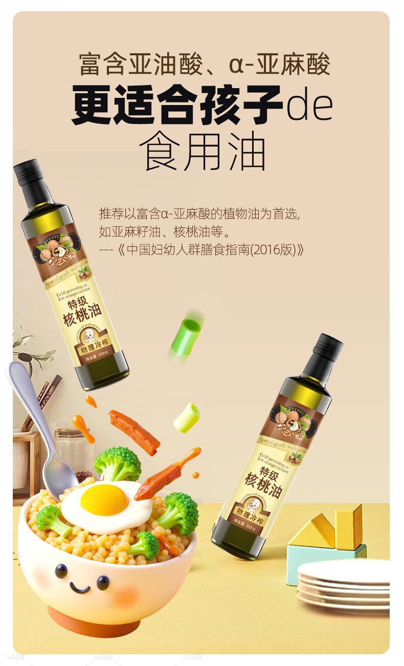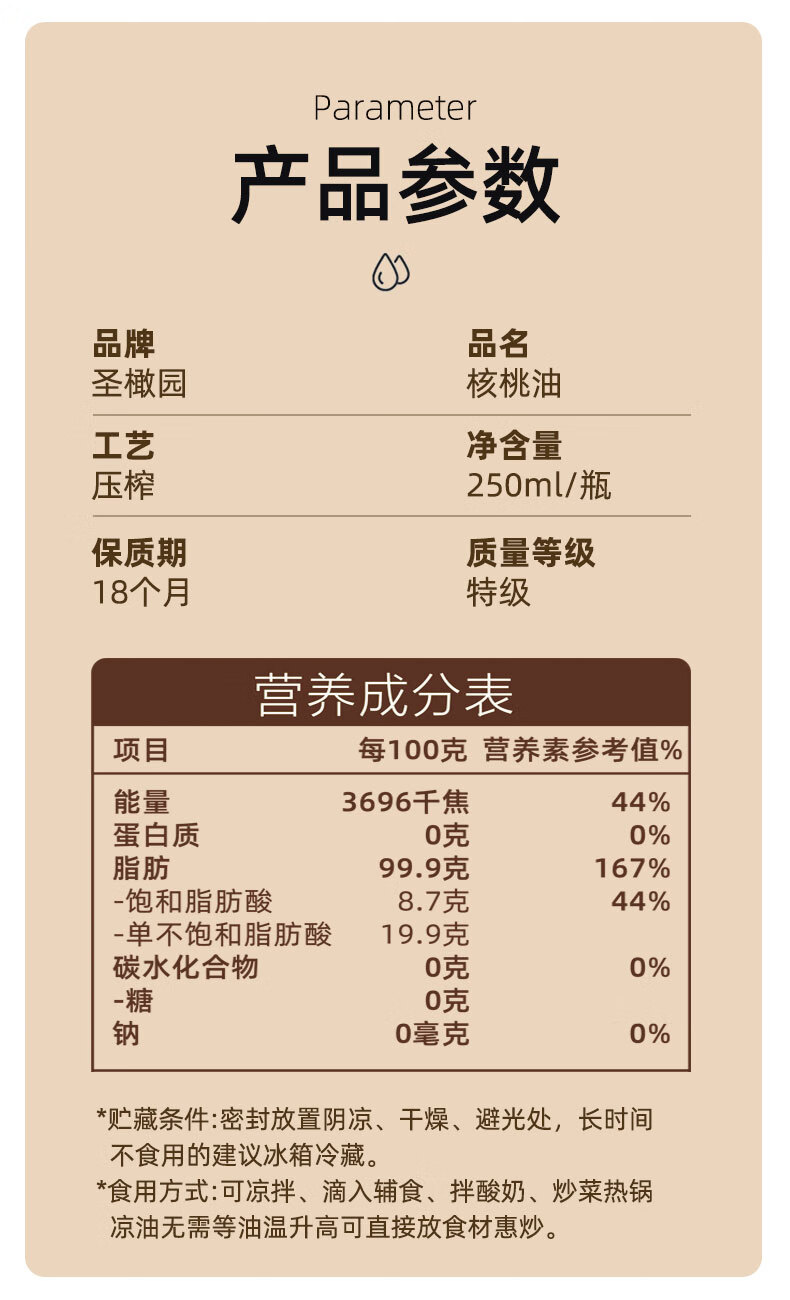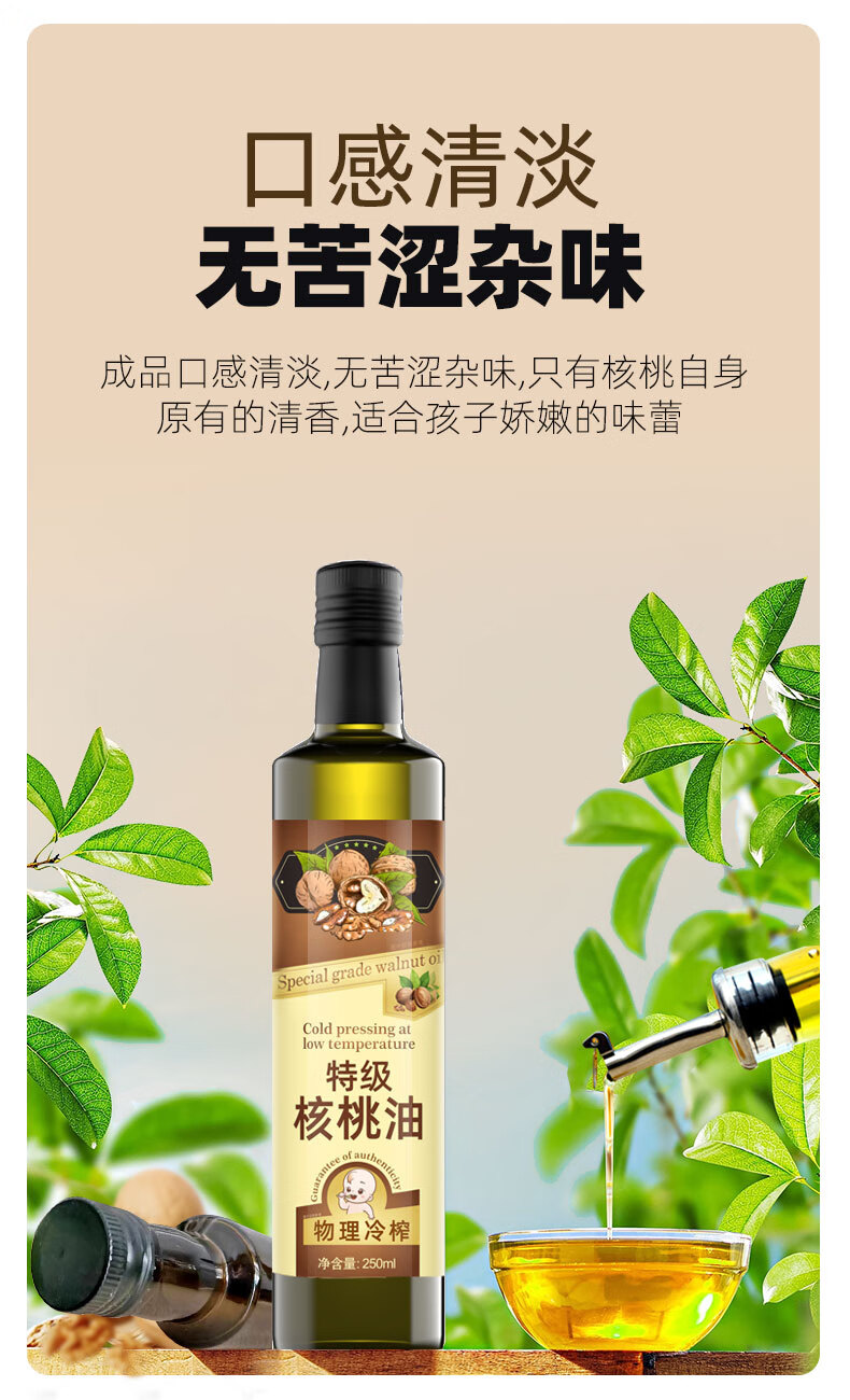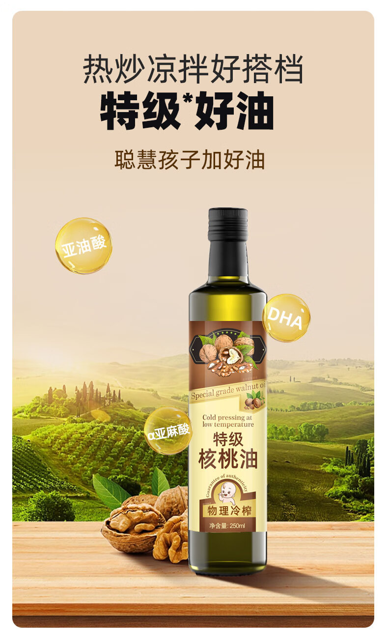 圣橄园特级核桃油250ml低温冷榨儿童油可搭配婴儿辅食凉拌可热炒油 特级核桃油250ml(锁鲜瓶)