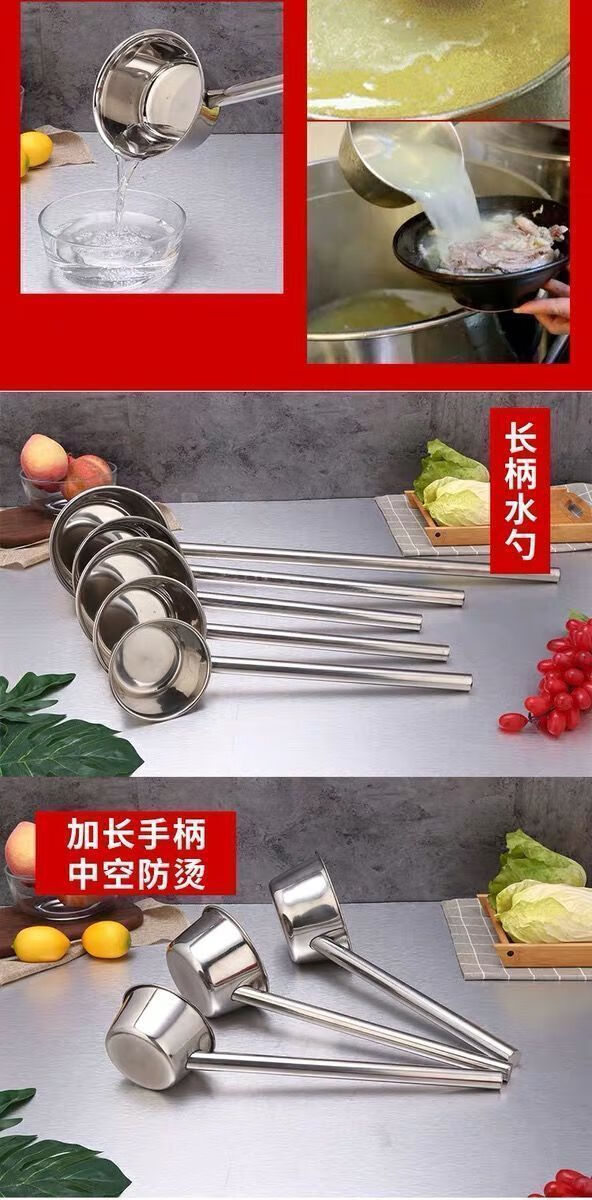 GIOIO特厚精焊不锈钢水勺水舀不锈钢长把水瓢长柄汤勺工业加长柄水漂 精焊12cm*35长