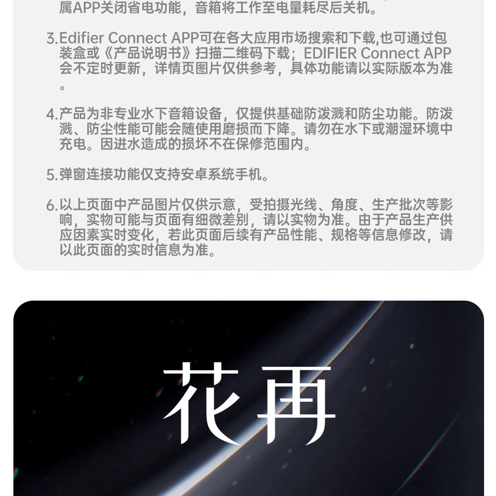 漫步者花再Evo Nano户外便携音响音箱蓝牙5.4家庭影院大功率高保真流光黑