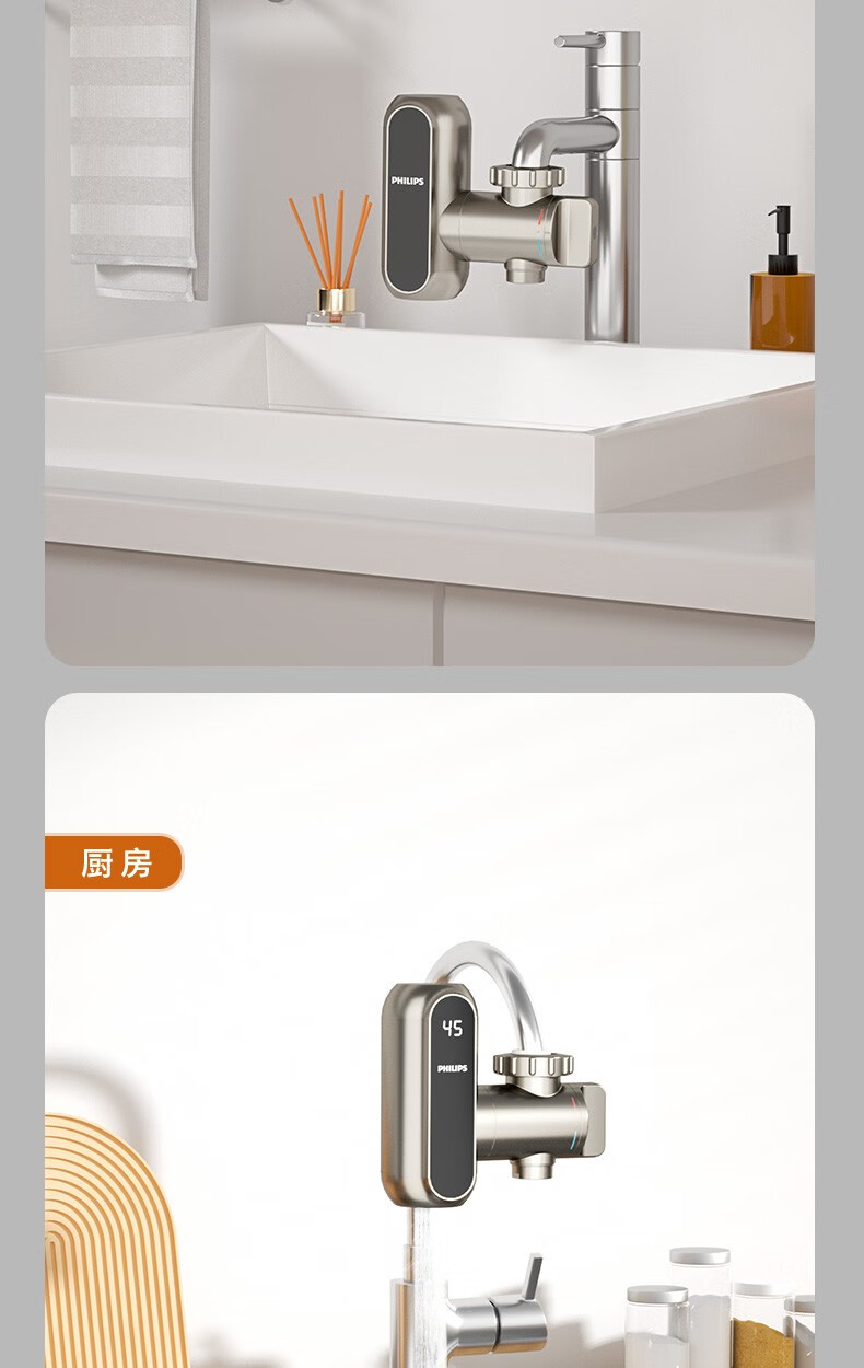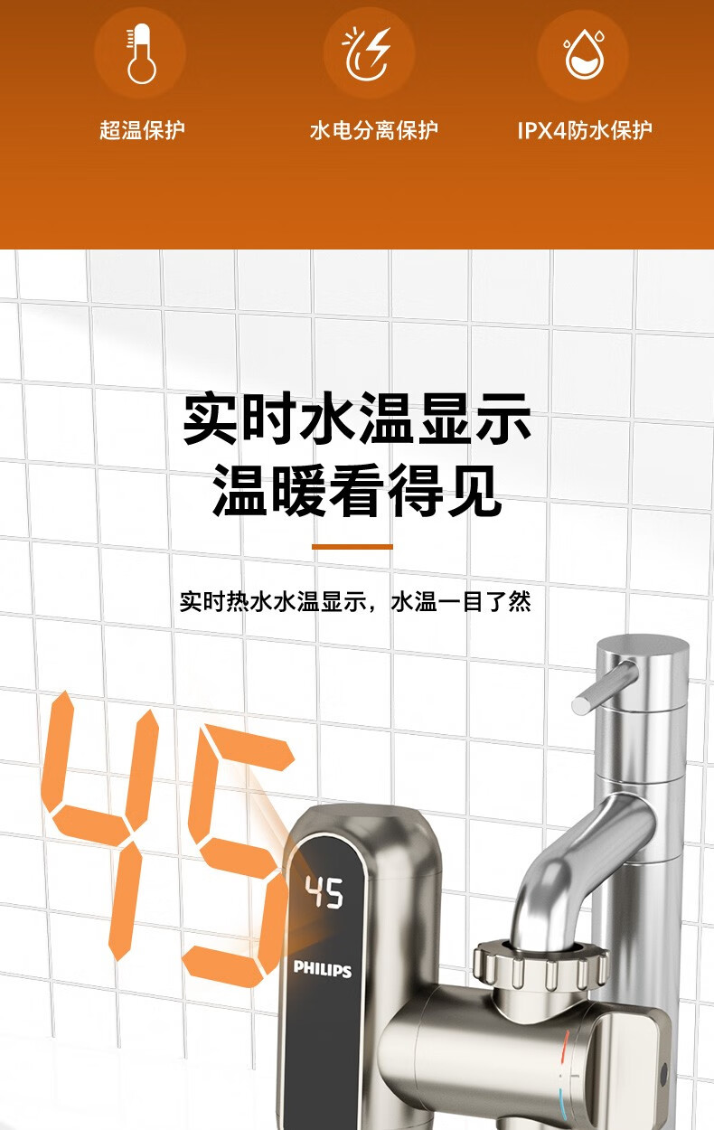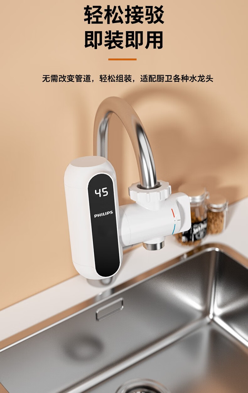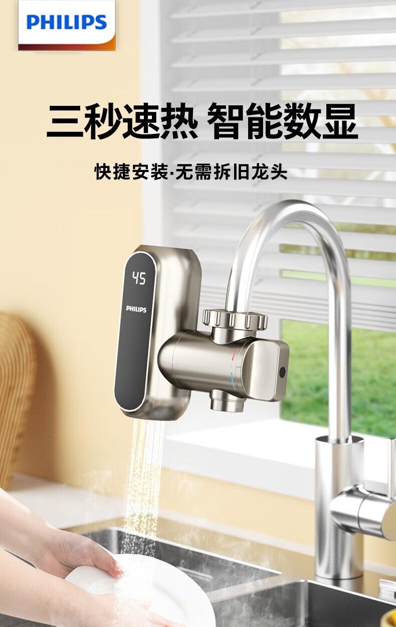 飞利浦Philips-AWH1018电热水龙头即热接驳式速热家用免安装套上即用厨房卫生间数显款小型加热热水器 【推荐款-颜值出众】电镀银+漏保