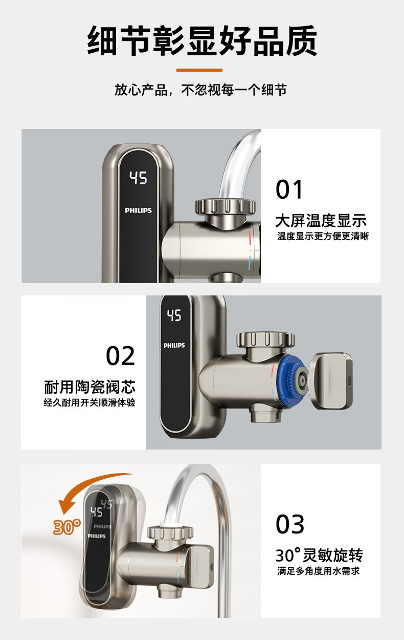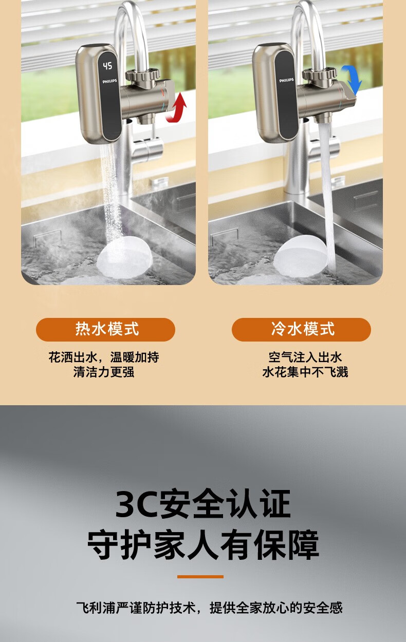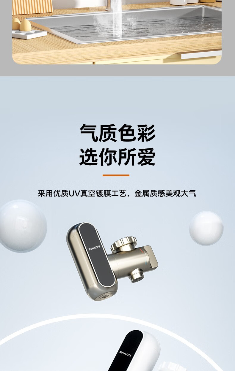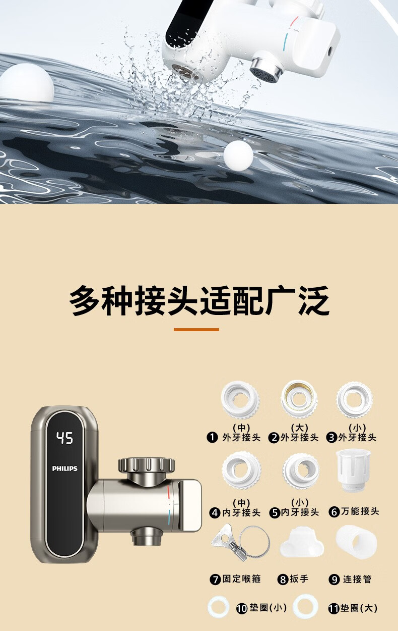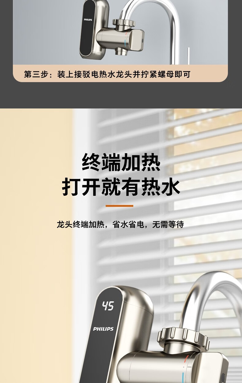 飞利浦Philips-AWH1018电热水龙头即热接驳式速热家用免安装套上即用厨房卫生间数显款小型加热热水器 【推荐款-颜值出众】电镀银+漏保