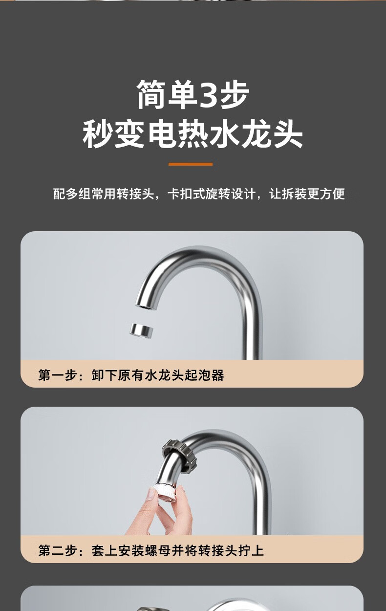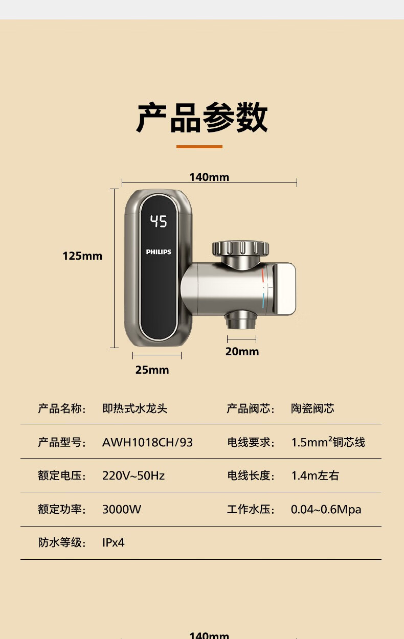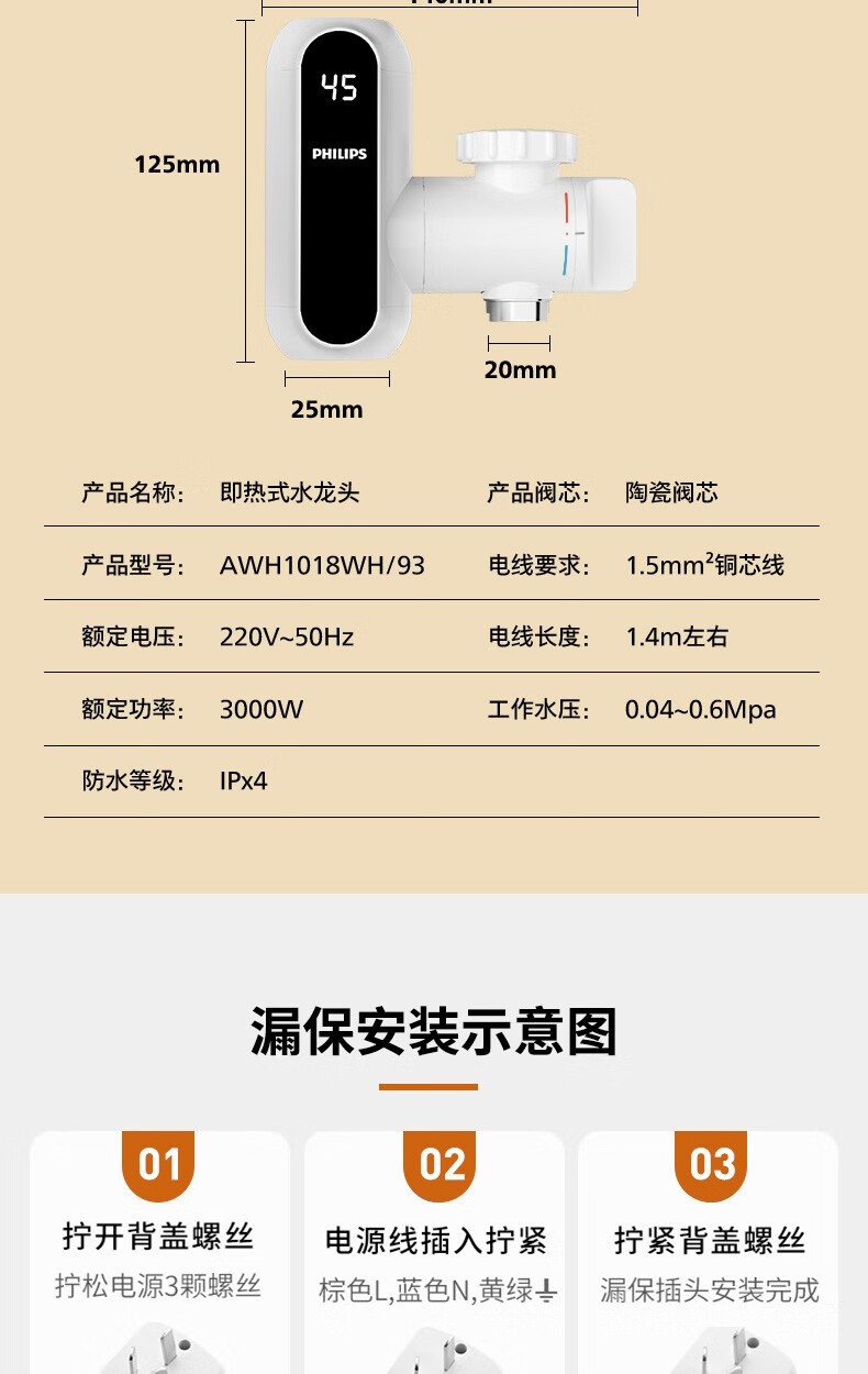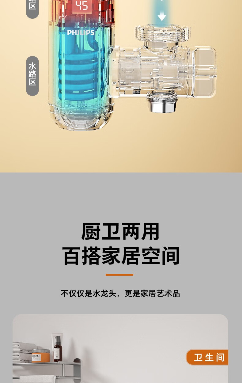 飞利浦Philips-AWH1018电热水龙头即热接驳式速热家用免安装套上即用厨房卫生间数显款小型加热热水器 【推荐款-颜值出众】电镀银+漏保