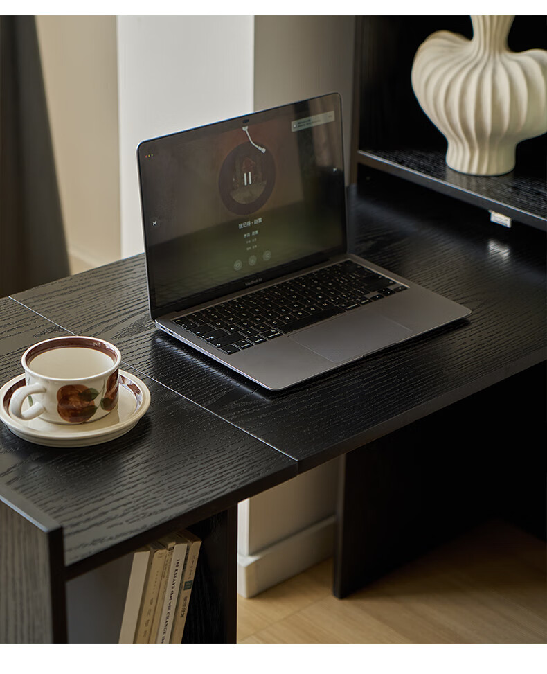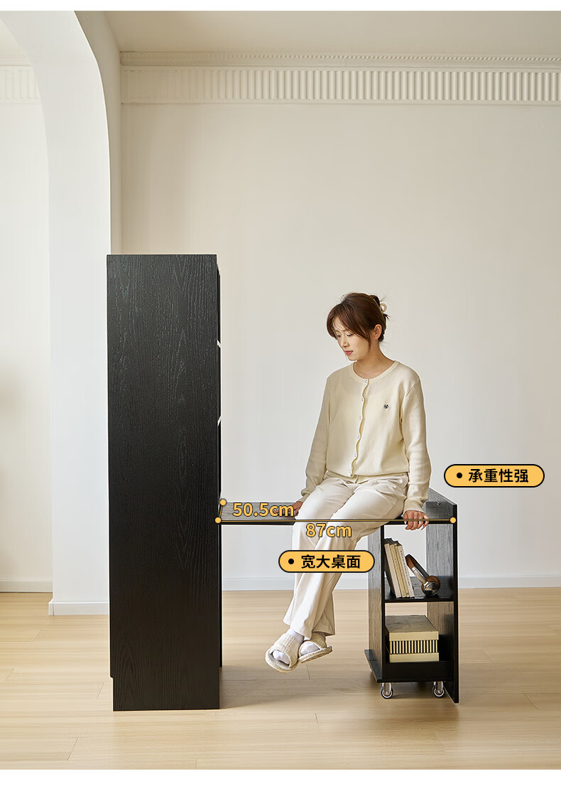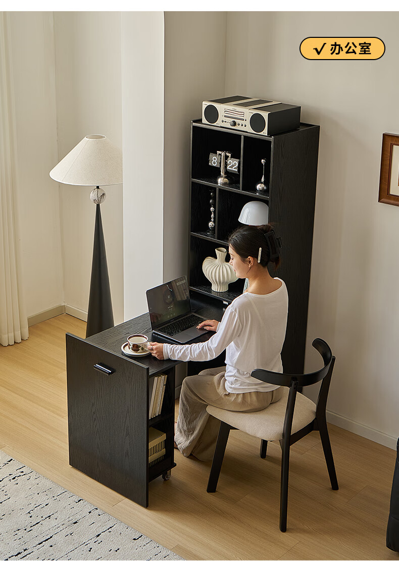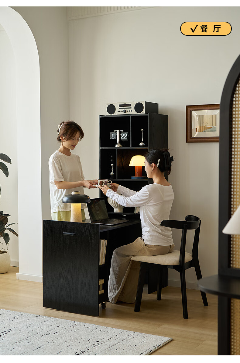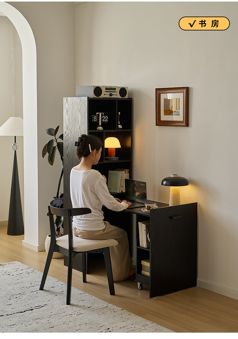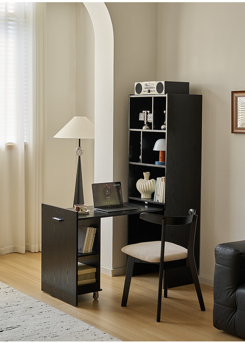迈途森实木折叠桌书桌书柜一体靠墙学生家用书房卧室女生桌子书柜置物架 【进口橡胶木】桌柜一体可折叠-黑色
