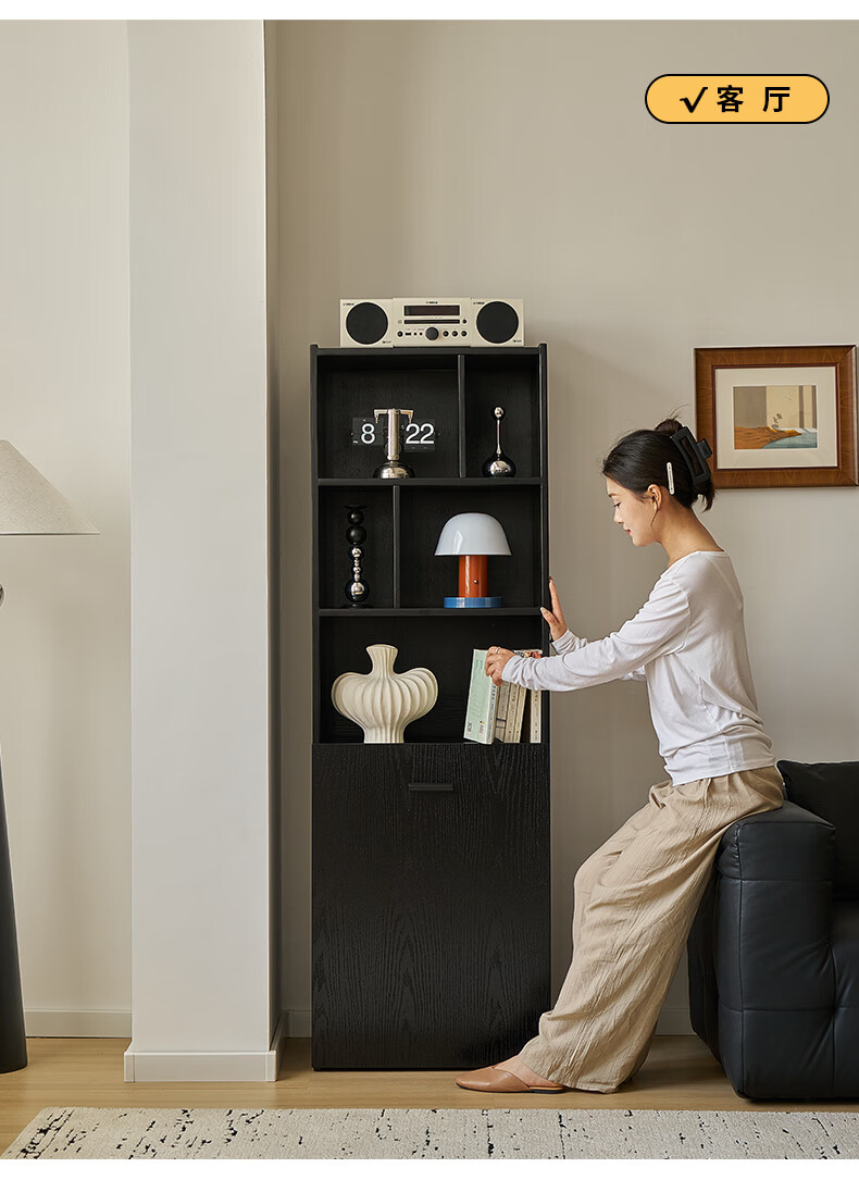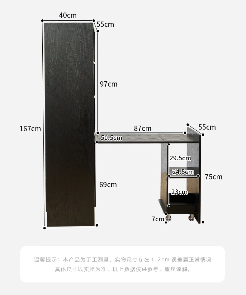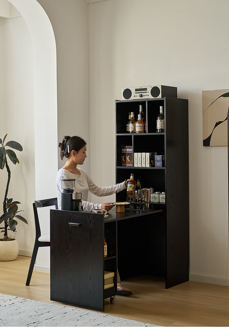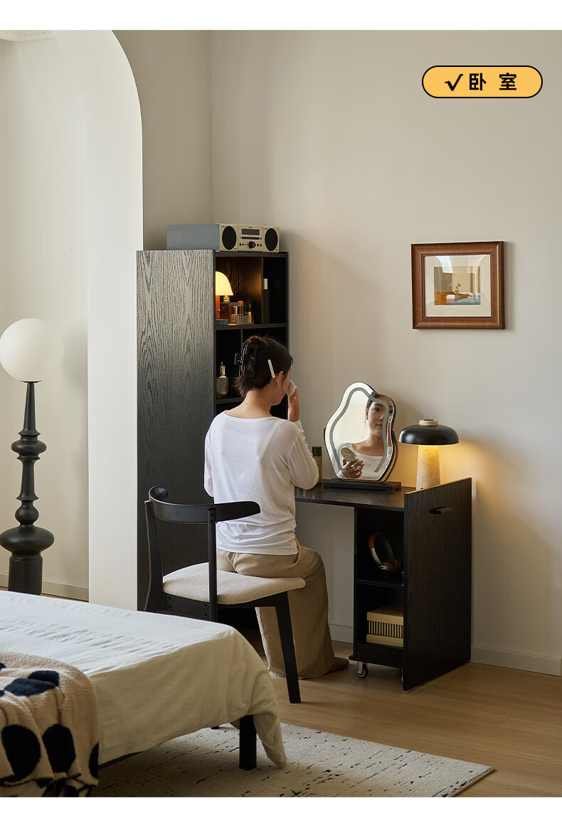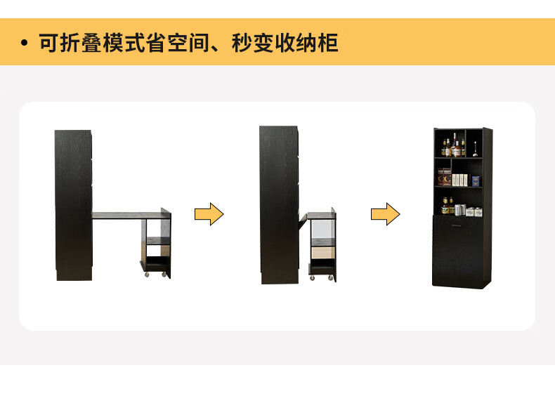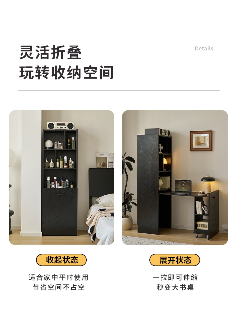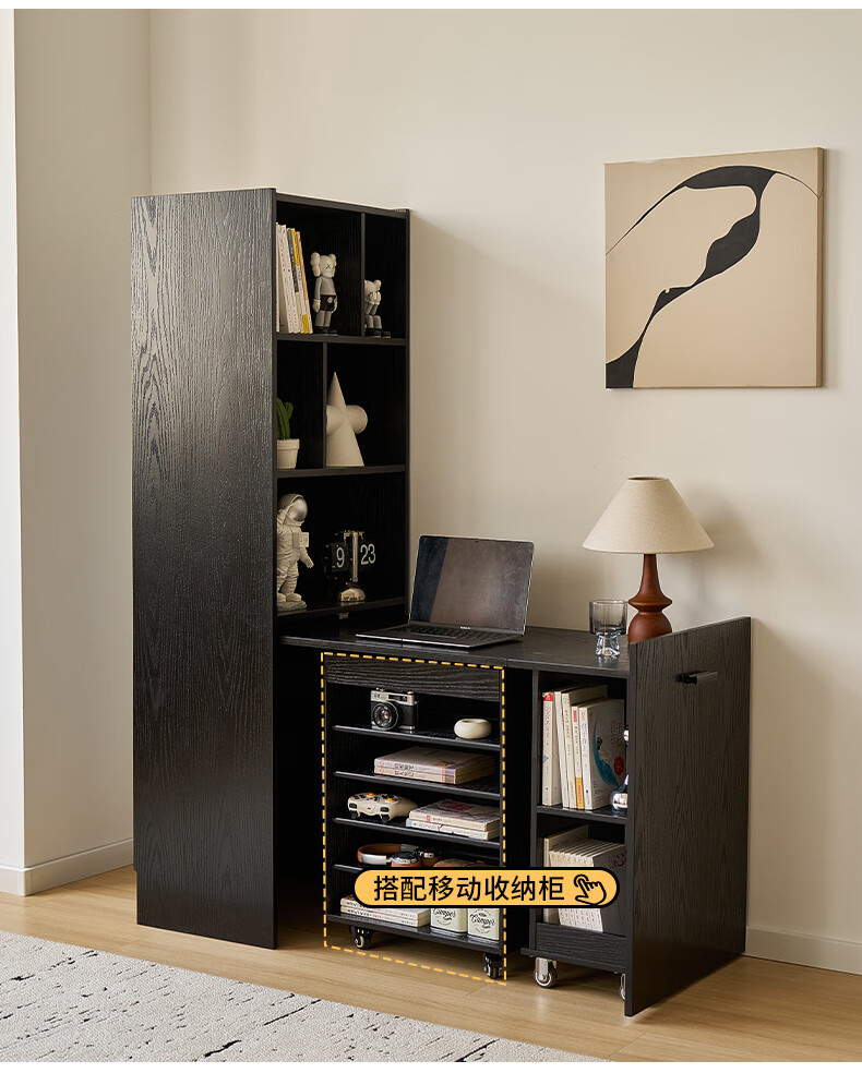 迈途森实木折叠桌书桌书柜一体靠墙学生家用书房卧室女生桌子书柜置物架 【进口橡胶木】桌柜一体可折叠-黑色