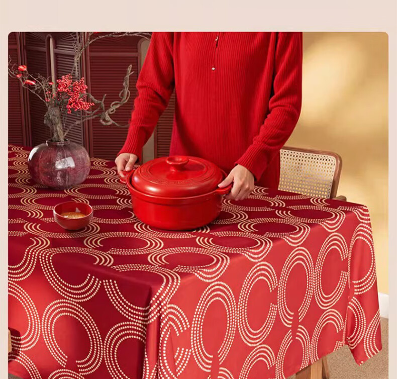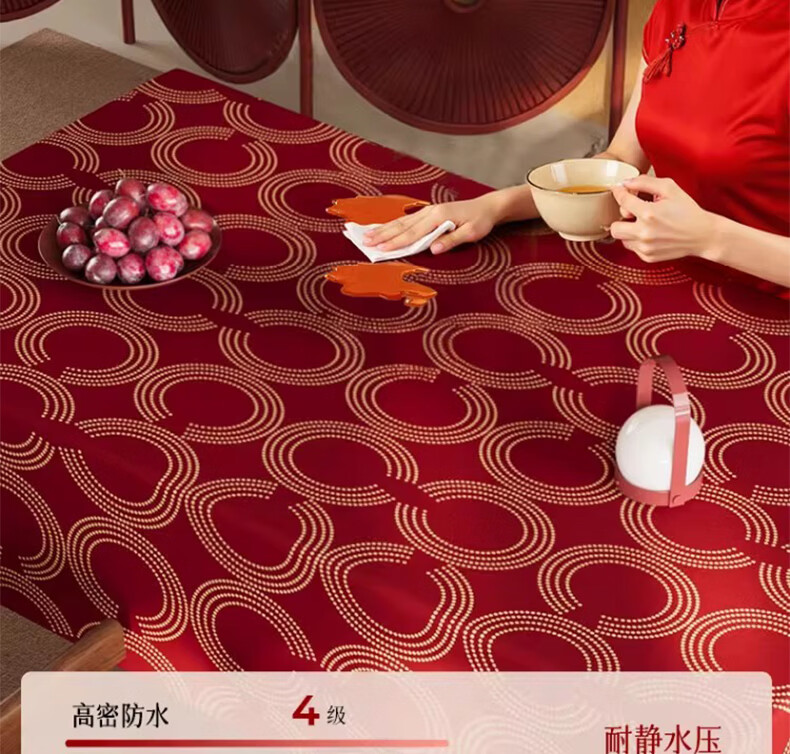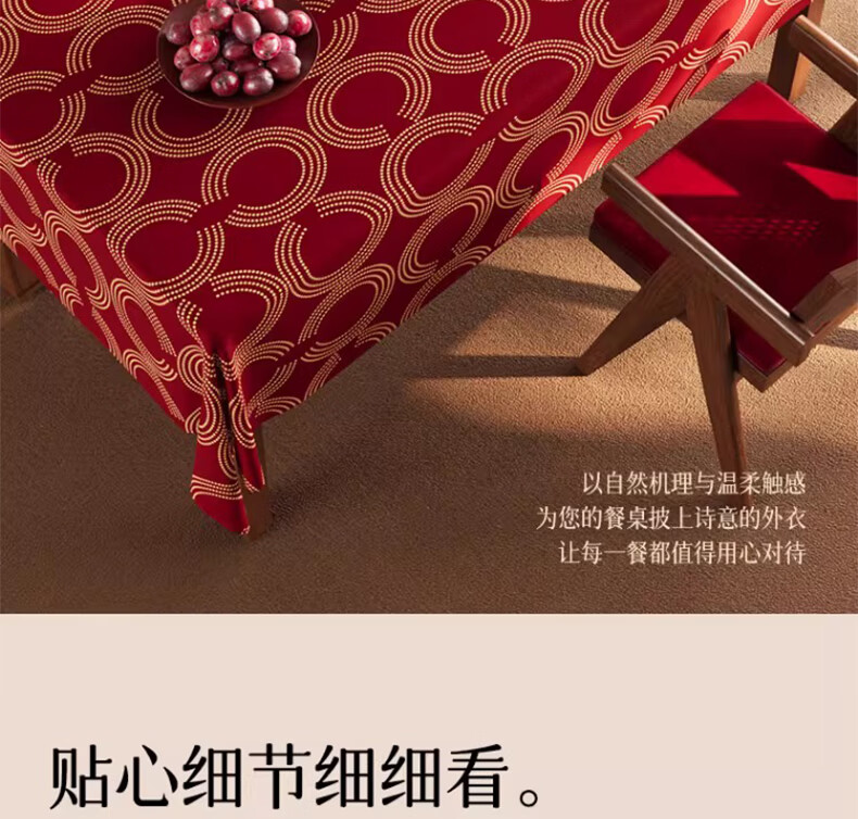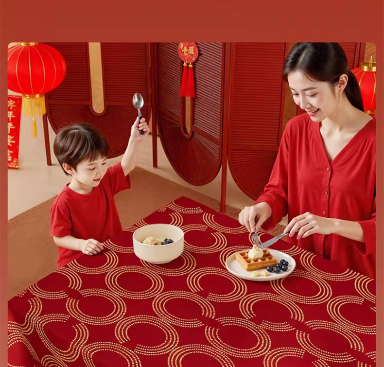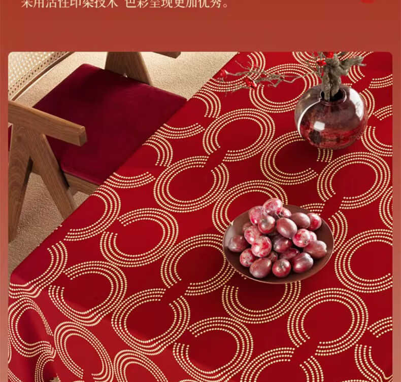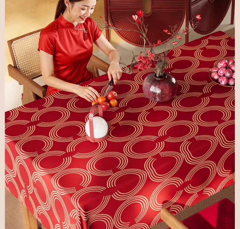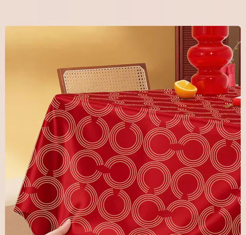 无印良品升级防水防油免洗2026新款新年红色桌布长方形餐桌桌布茶几桌布 金鳞曳红【升级款 防水防油】 圆170cm【安全无异味】