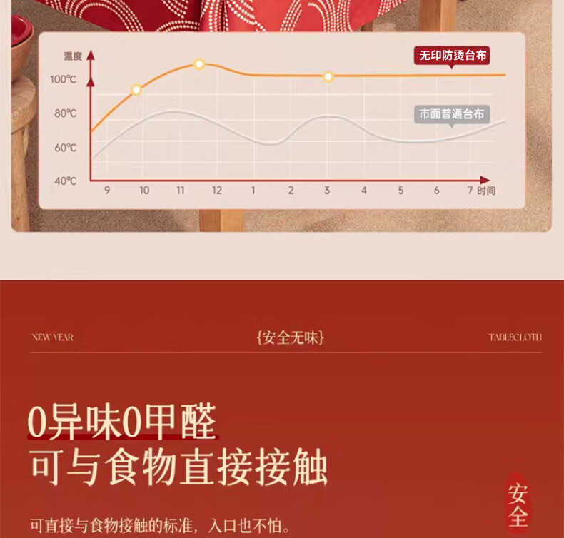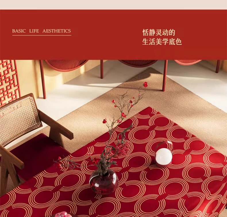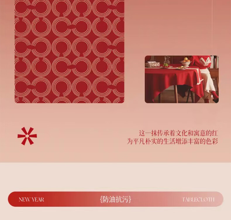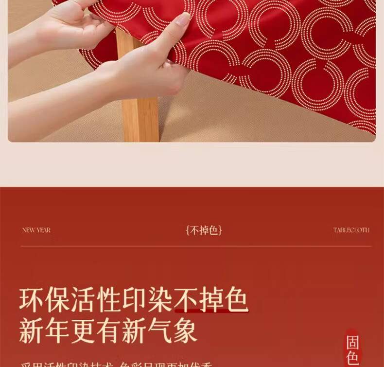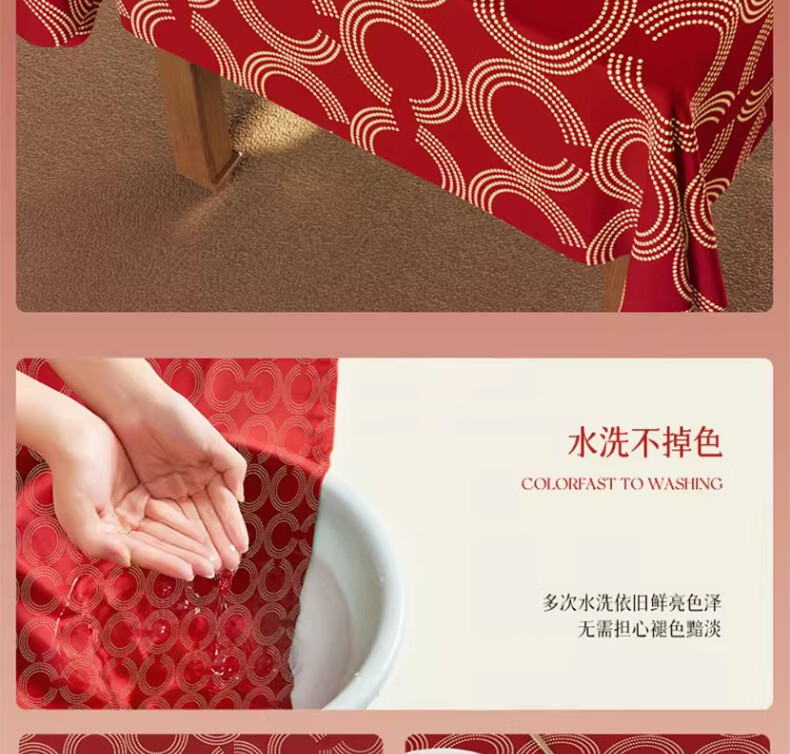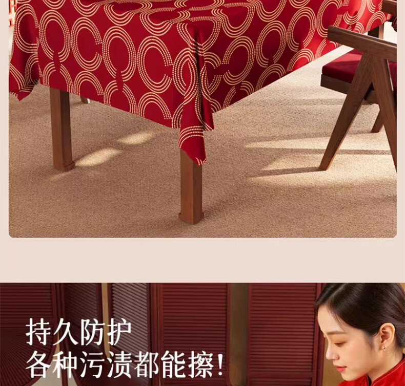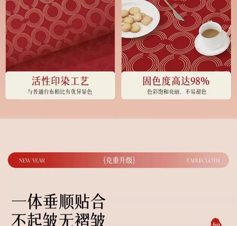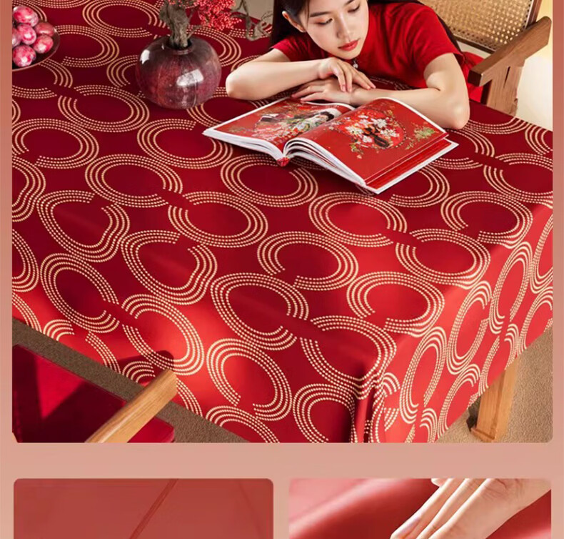 无印良品升级防水防油免洗2026新款新年红色桌布长方形餐桌桌布茶几桌布 金鳞曳红【升级款 防水防油】 圆170cm【安全无异味】