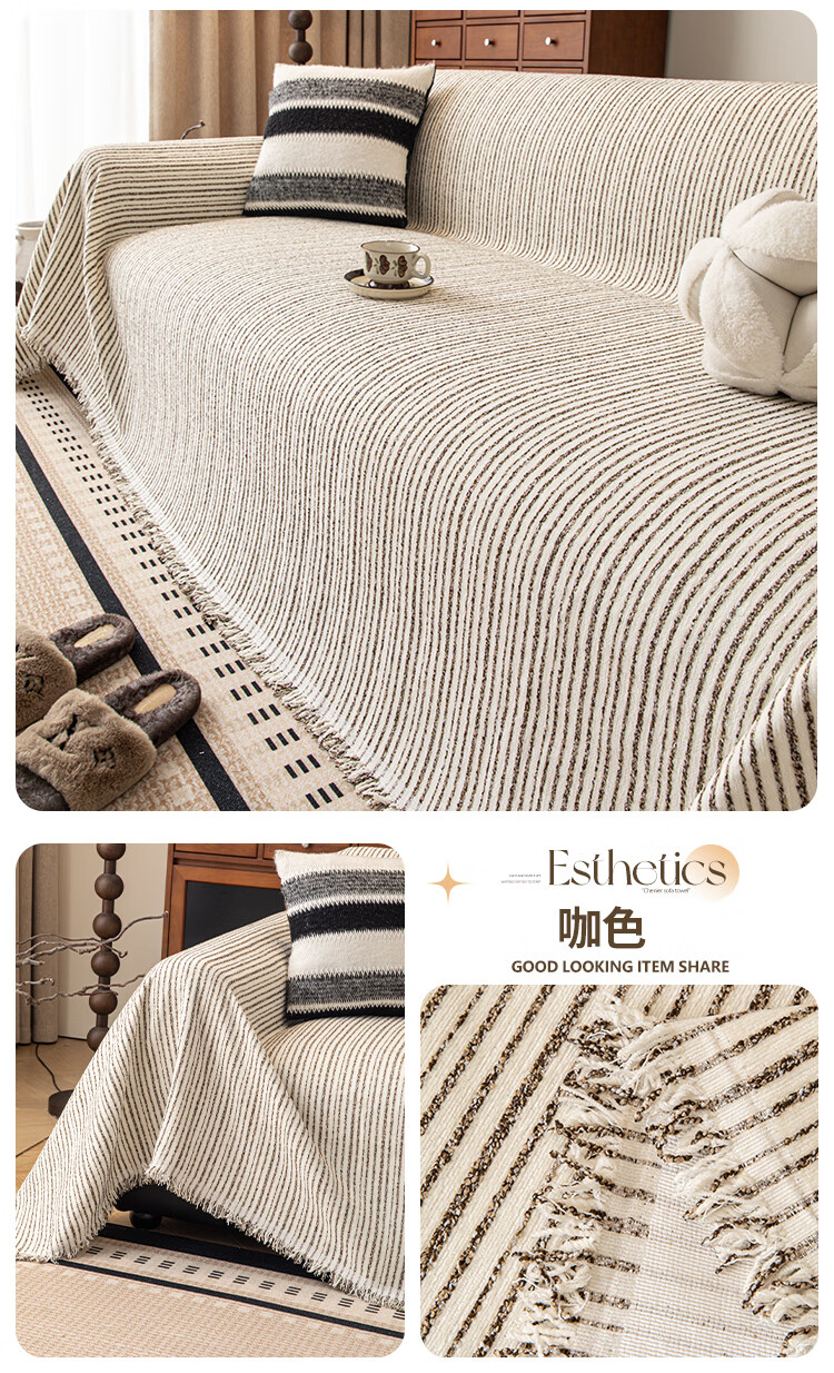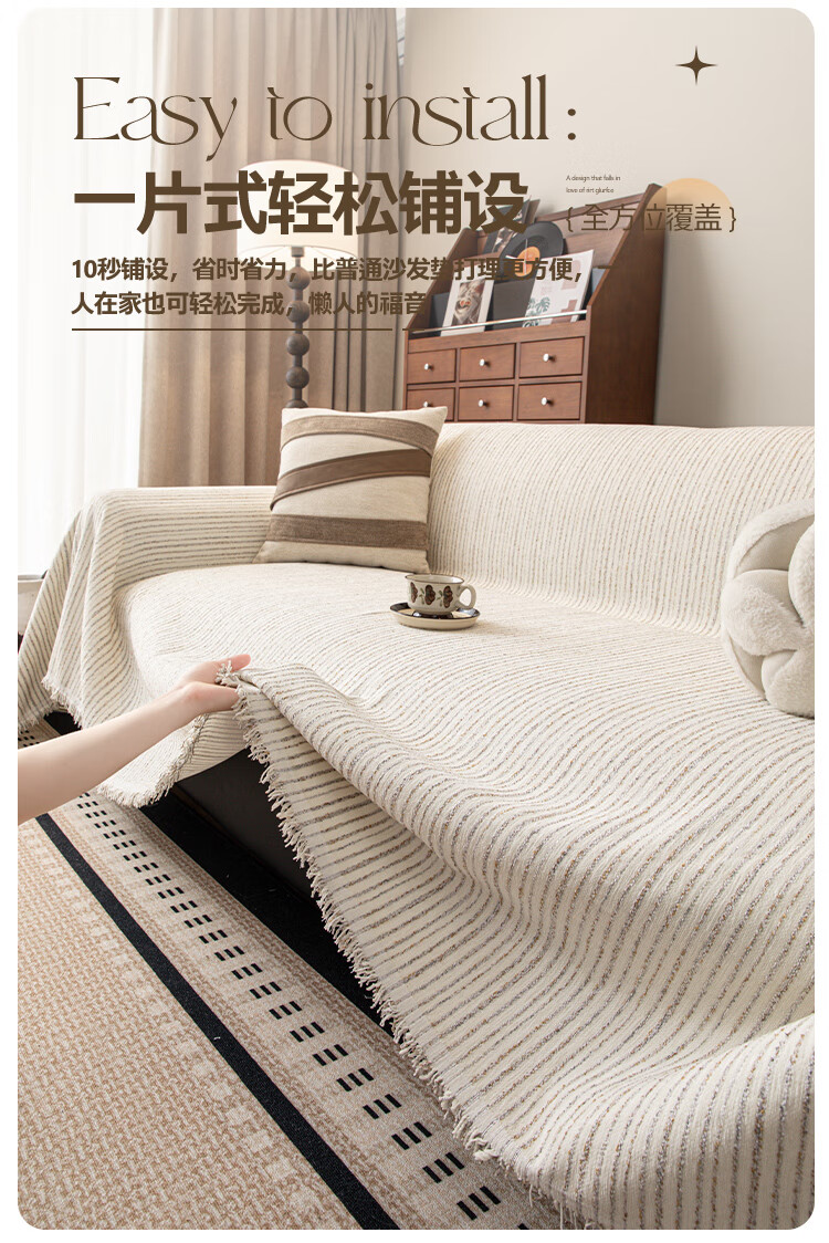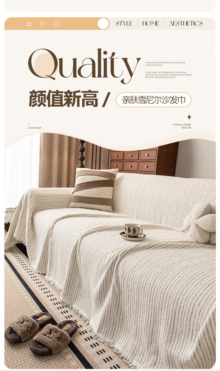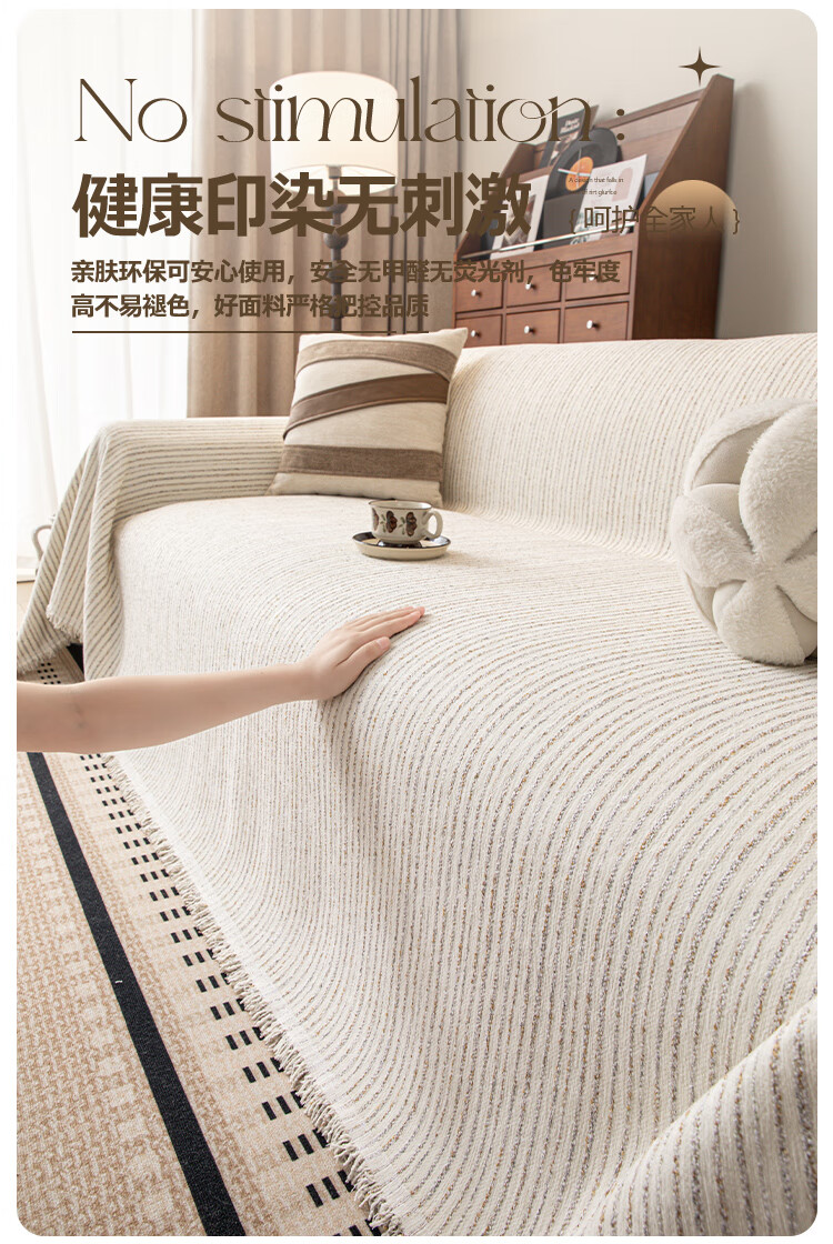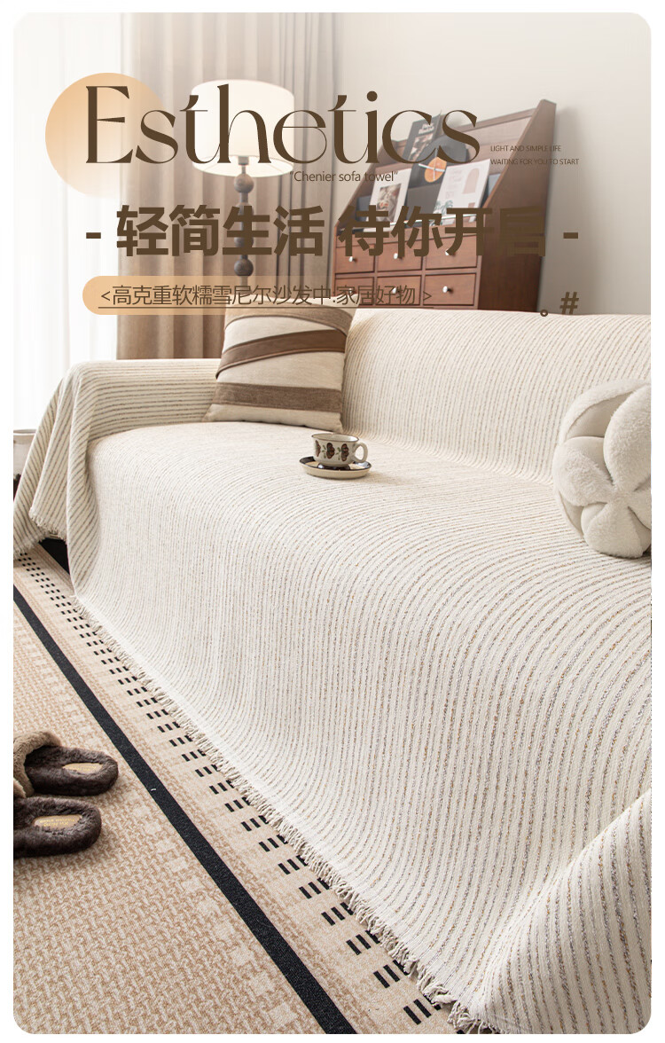 缔卓怡雪尼尔沙发盖布巾四季通用防滑沙发垫套罩2025新款一整张全盖毯 素缕时光-米白 180cm*380cm (适合大三人位)