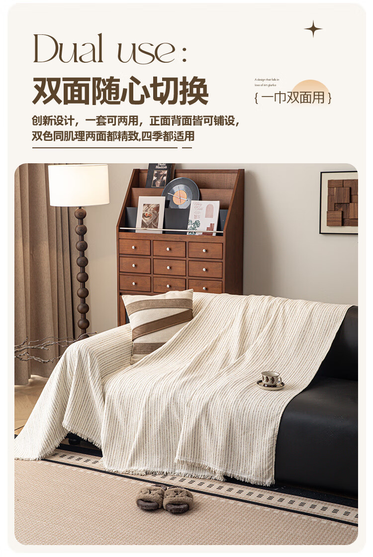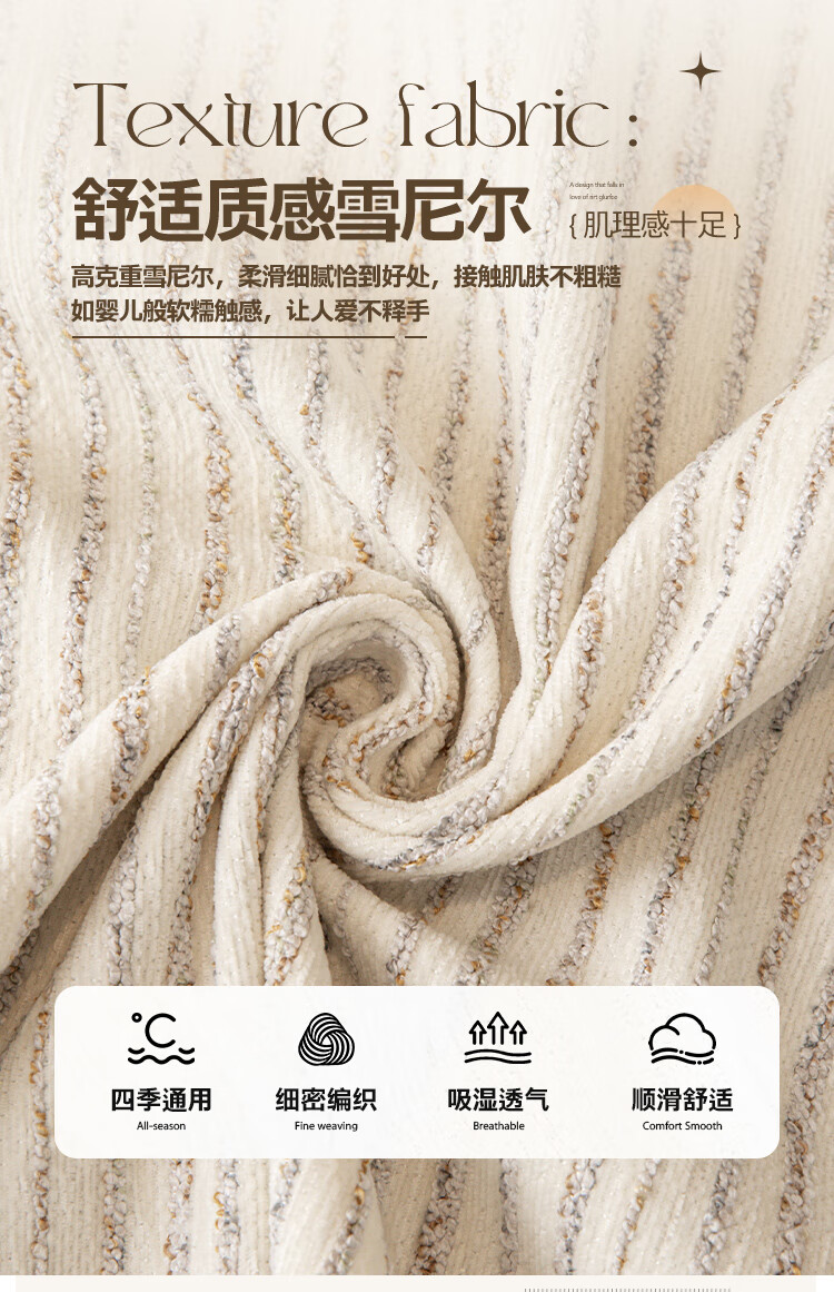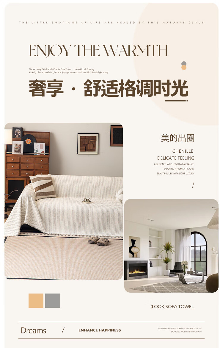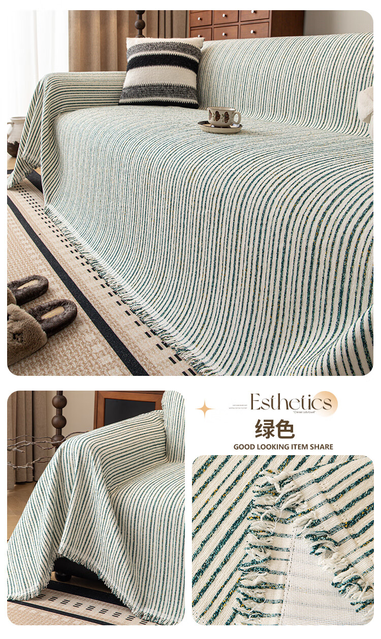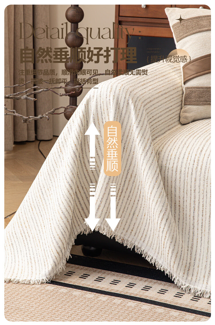 缔卓怡雪尼尔沙发盖布巾四季通用防滑沙发垫套罩2025新款一整张全盖毯 素缕时光-米白 180cm*380cm (适合大三人位)