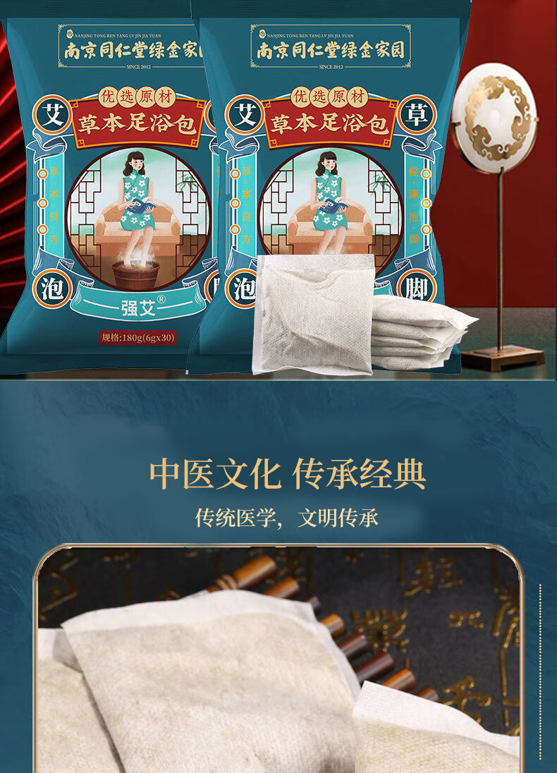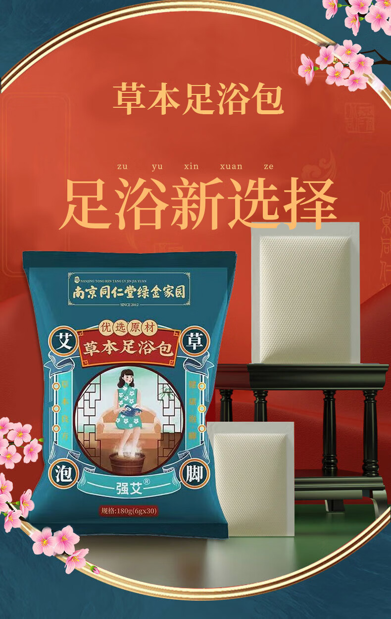 强艾南京同仁堂泡脚药包泡脚粉艾叶草本藏红花瑶浴包艾草足浴包粉 艾草泡脚药包30包x3袋