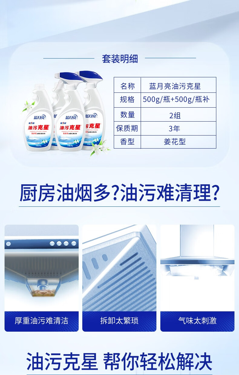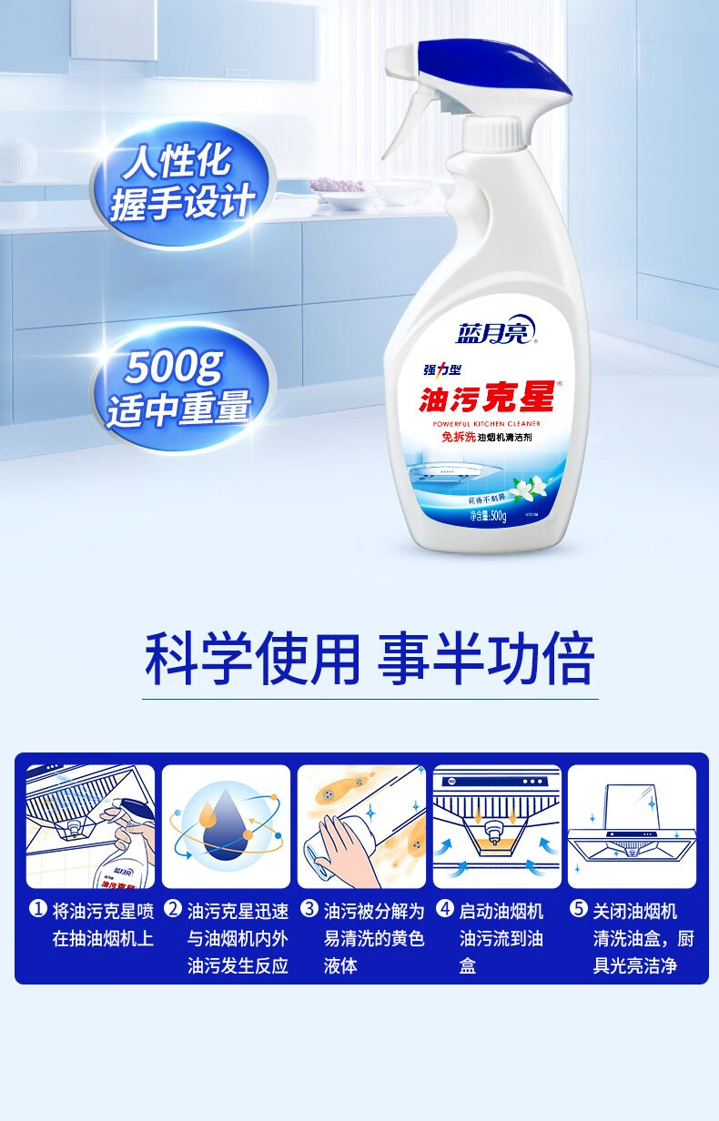 蓝月亮 油污克星强力型油污清洁剂 油烟机清洗剂强力去污 500g(瓶+瓶补)*1【共2瓶】