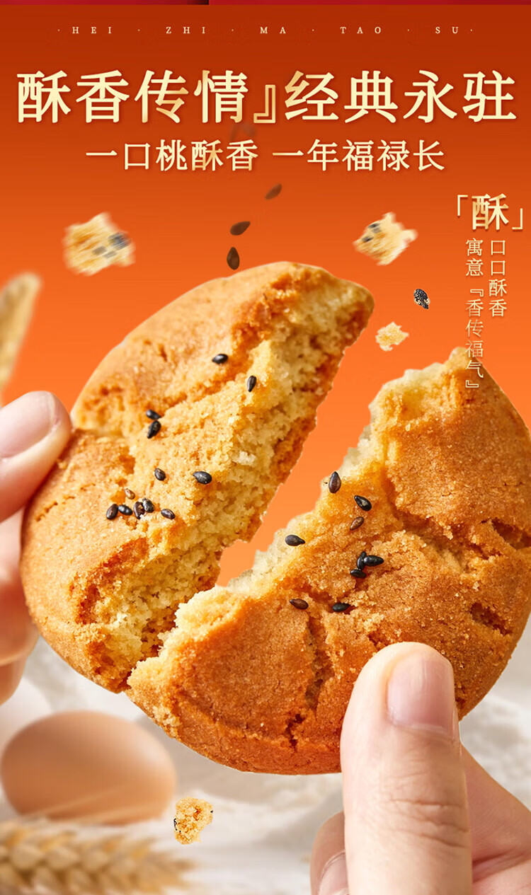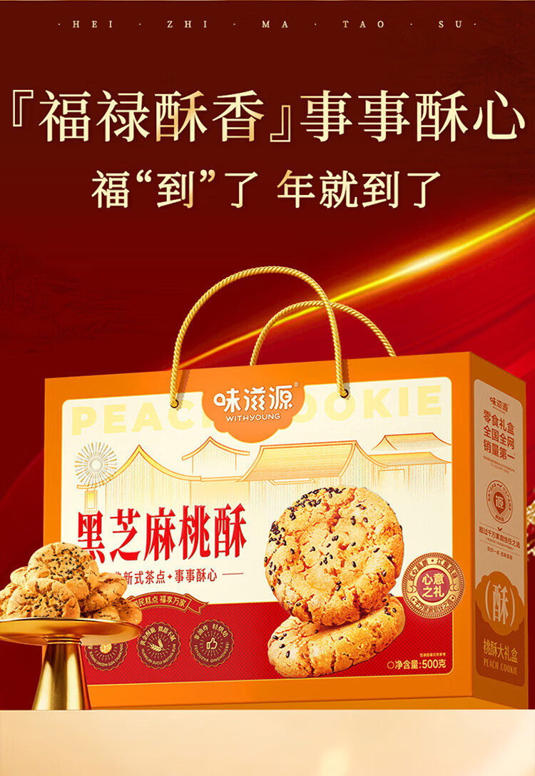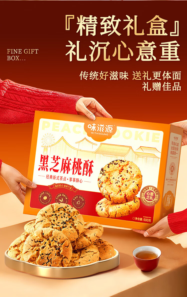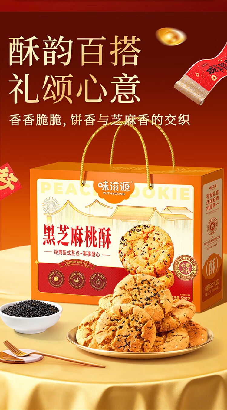 味滋源黑芝麻桃酥 传统手信糕点心 经典老式传统糕点礼盒伴手礼 黑芝麻桃酥500g 礼盒款 1盒装