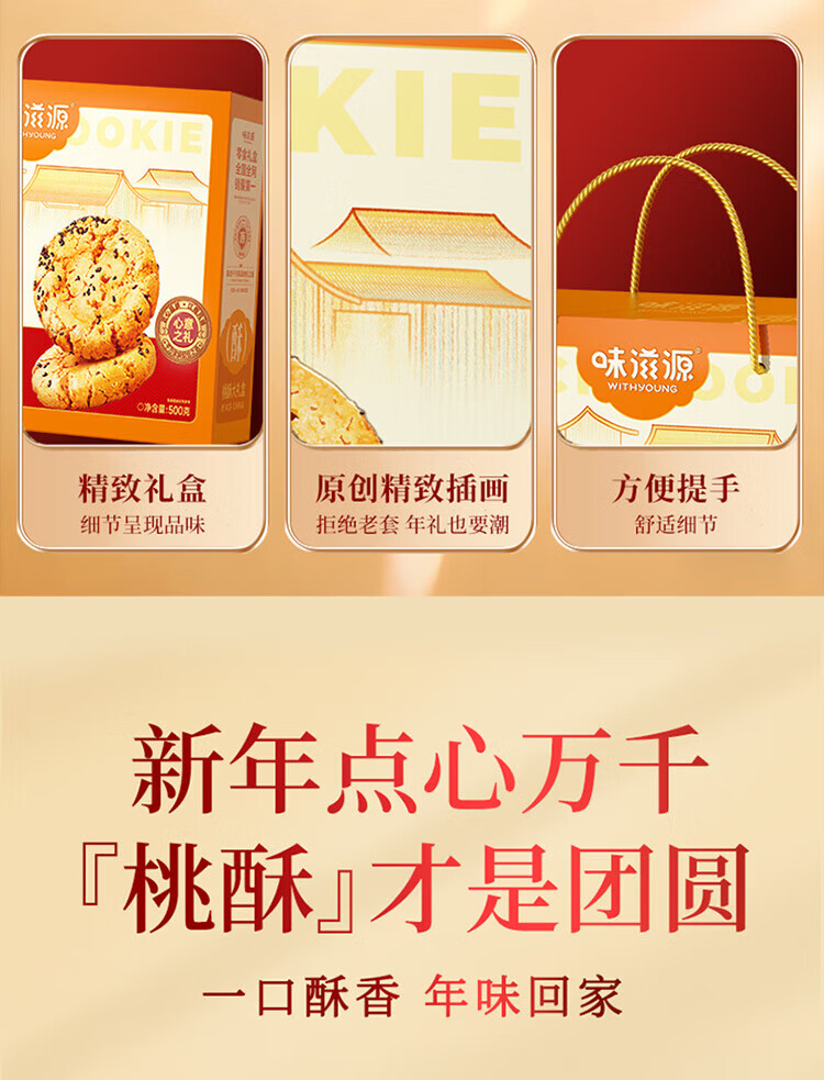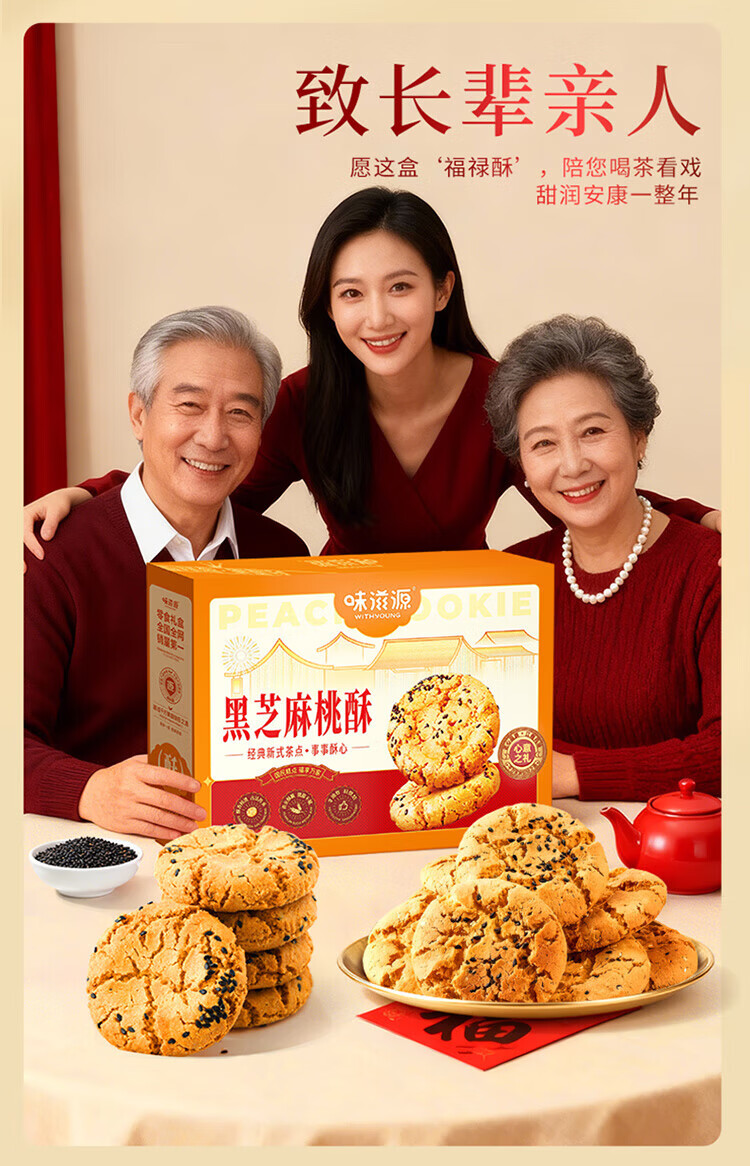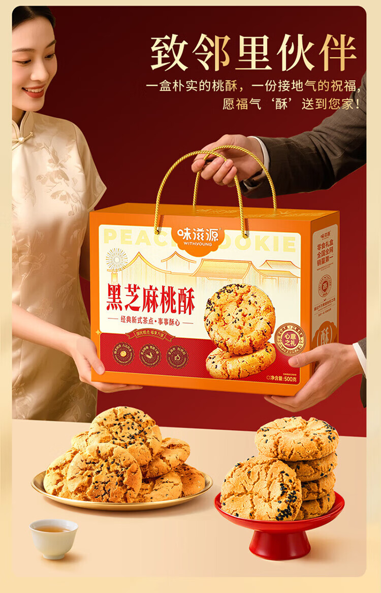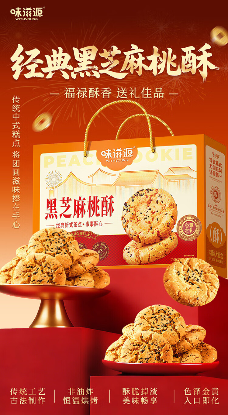 味滋源黑芝麻桃酥 传统手信糕点心 经典老式传统糕点礼盒伴手礼 黑芝麻桃酥500g 礼盒款 1盒装