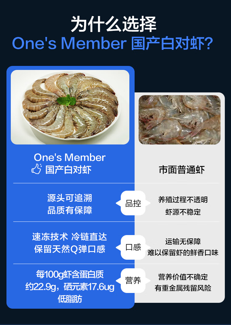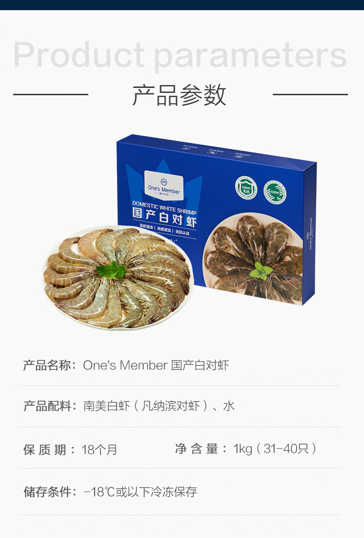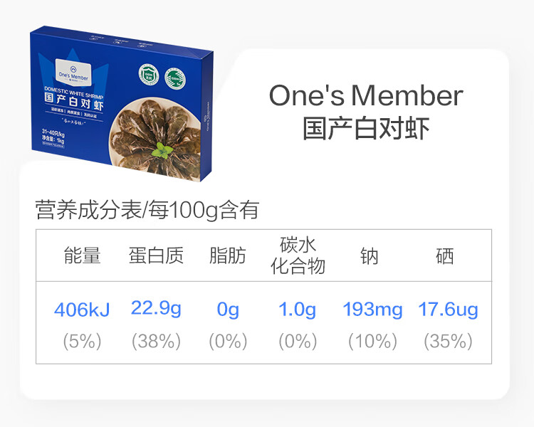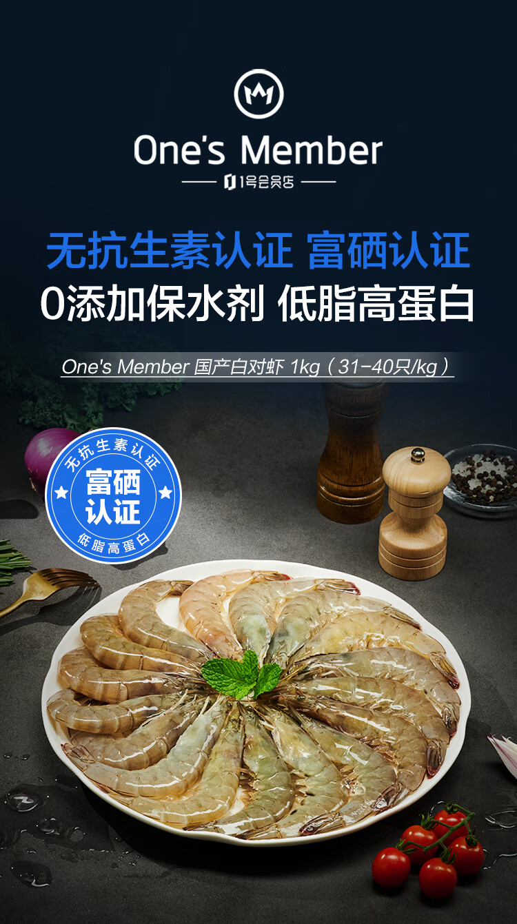 1号会员店One's Member 国产白对虾(31-40)1kg/盒