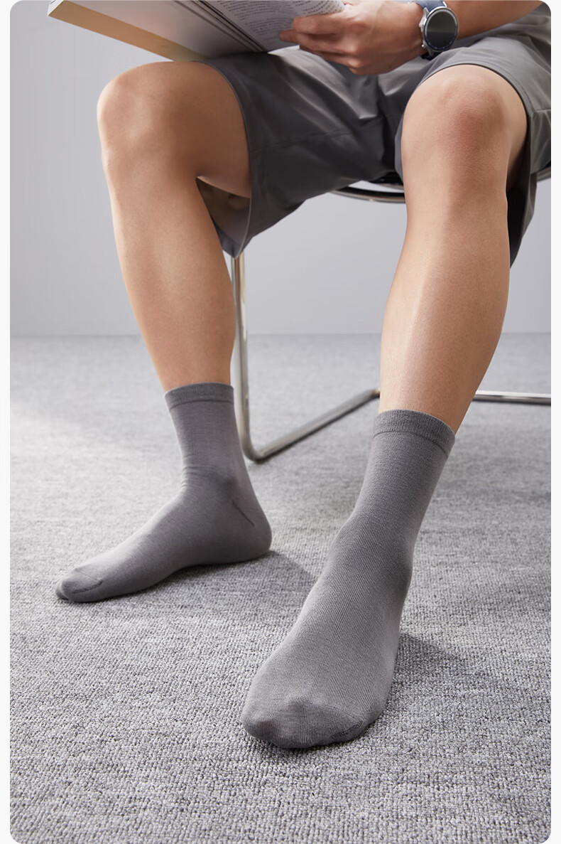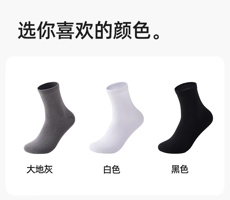 十月结晶中筒袜透气吸汗抗菌男女可穿四季秋冬 【大地灰/白色/黑色】共6双