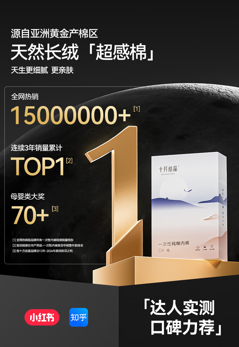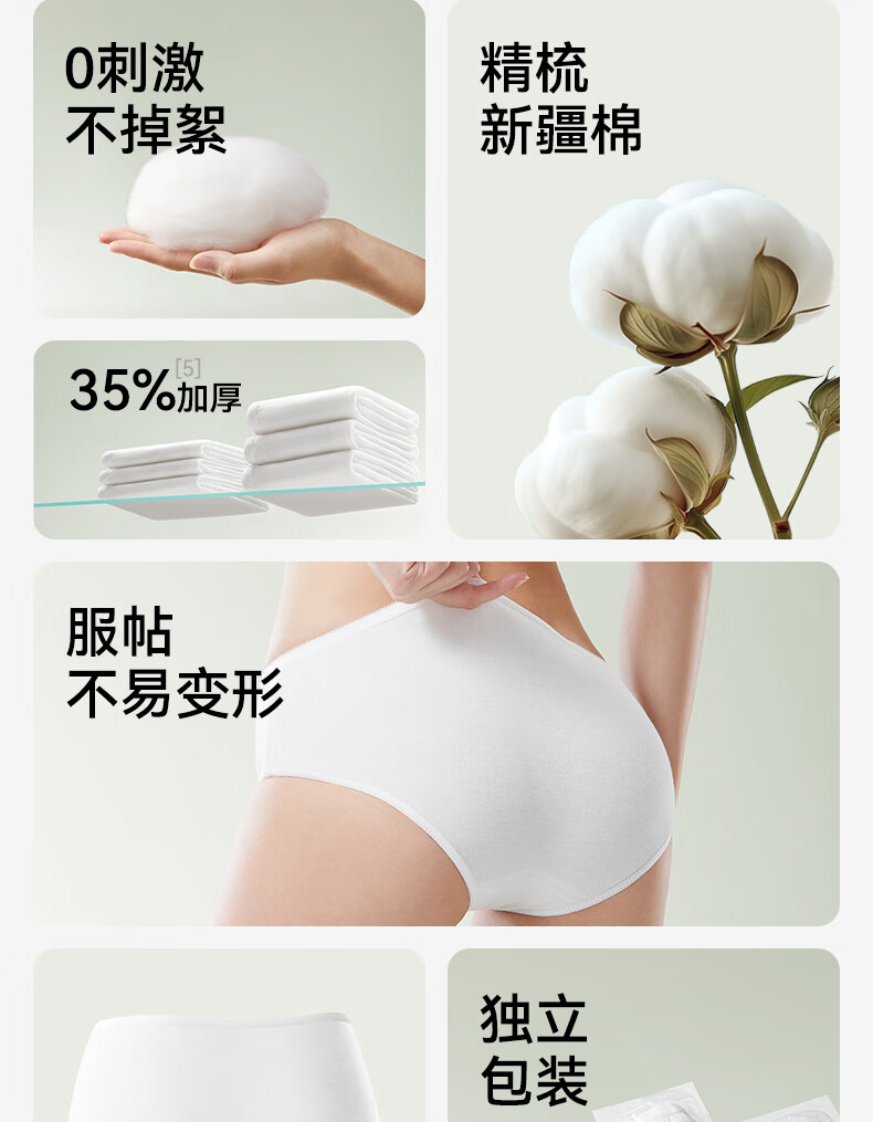 十月结晶女士纯棉一次性内裤出差旅行月子内裤5条XL