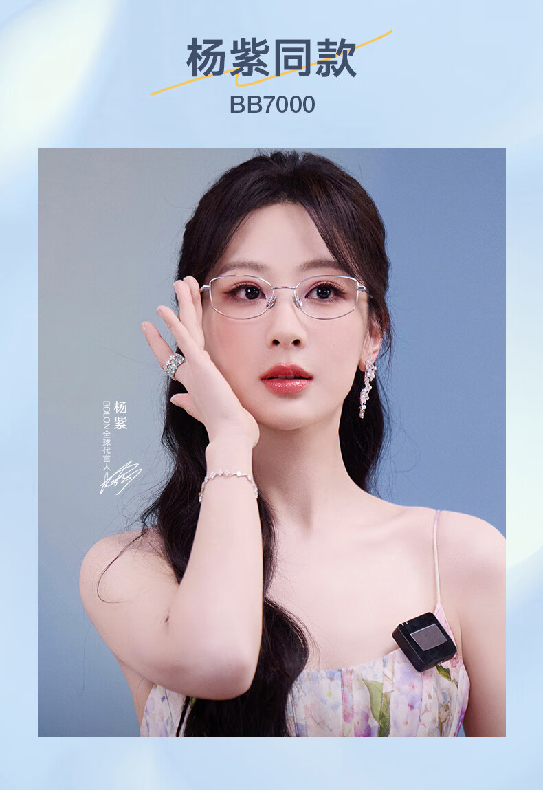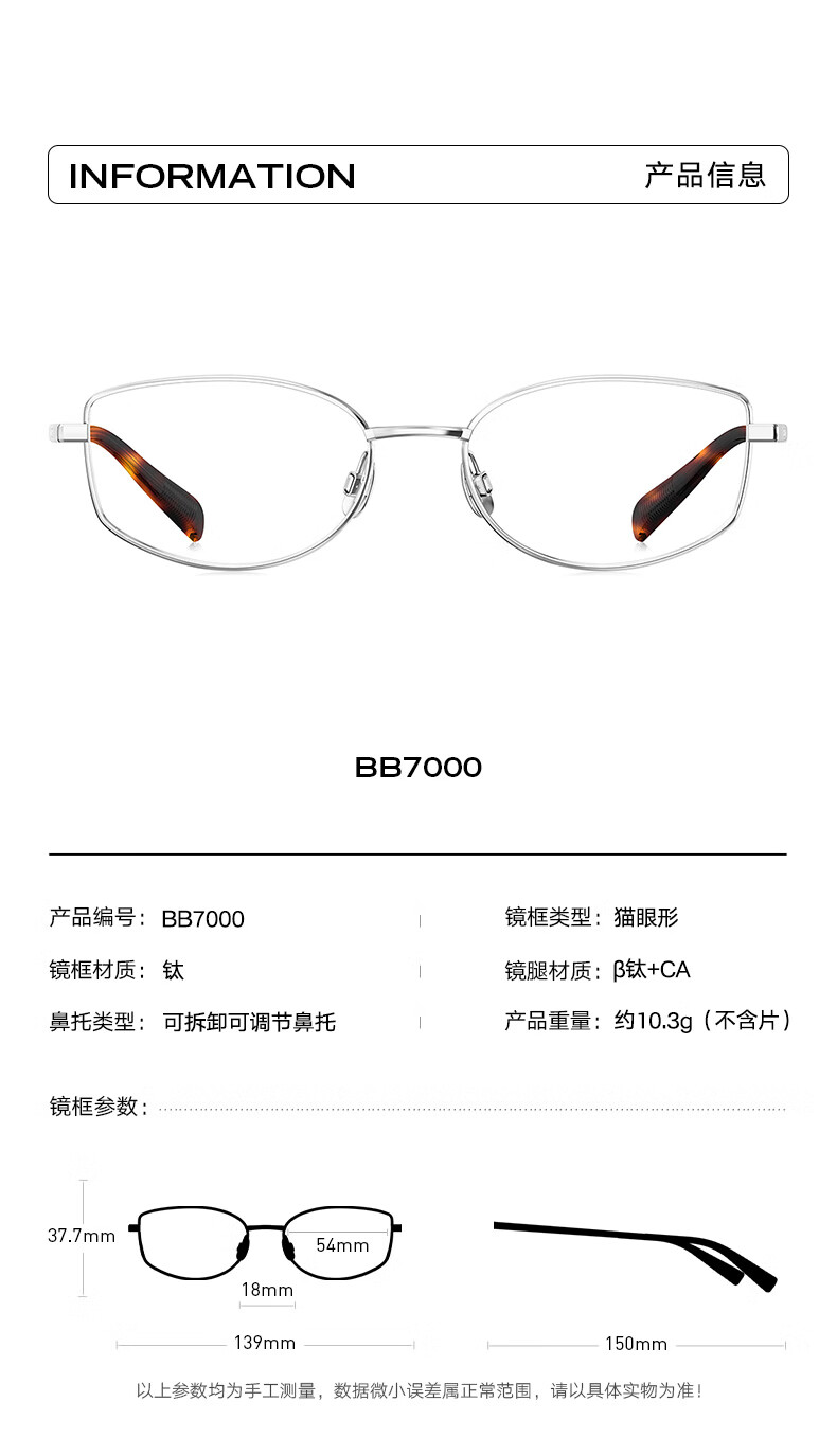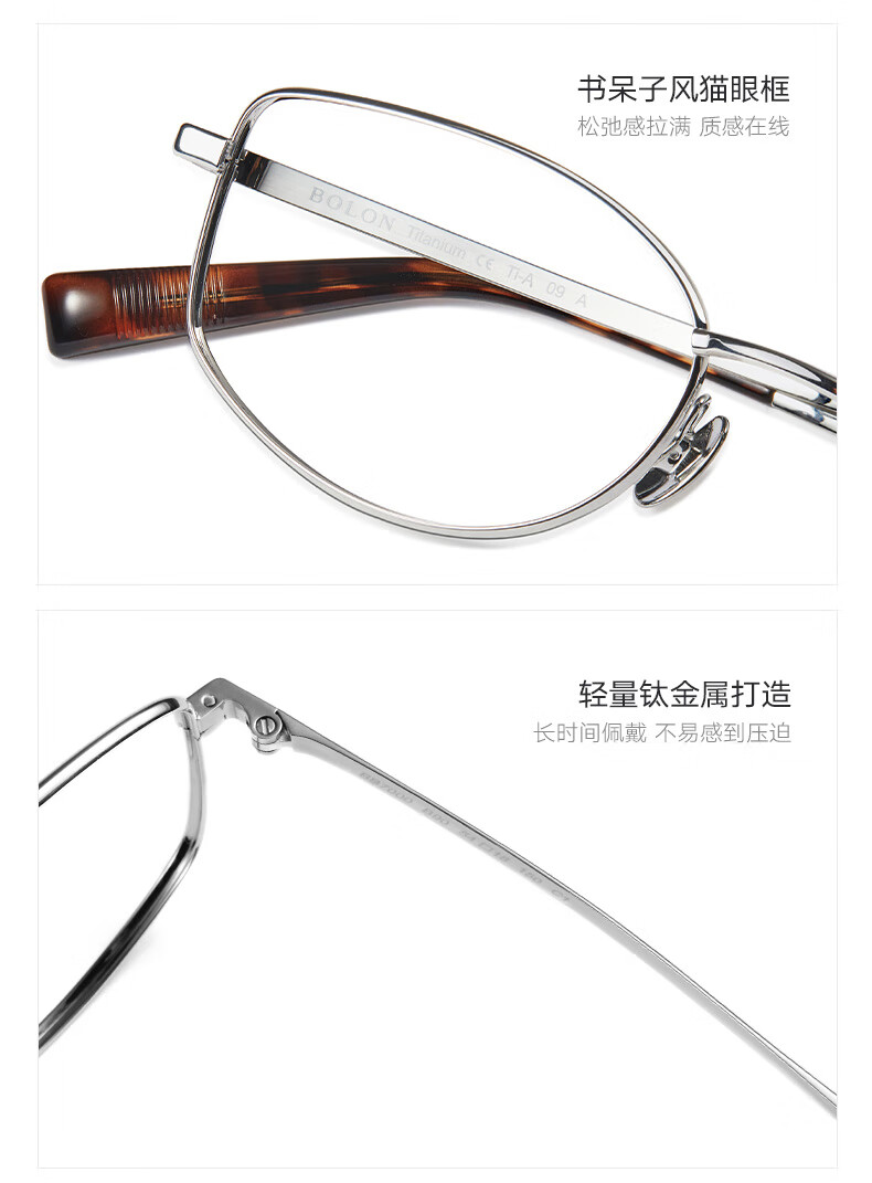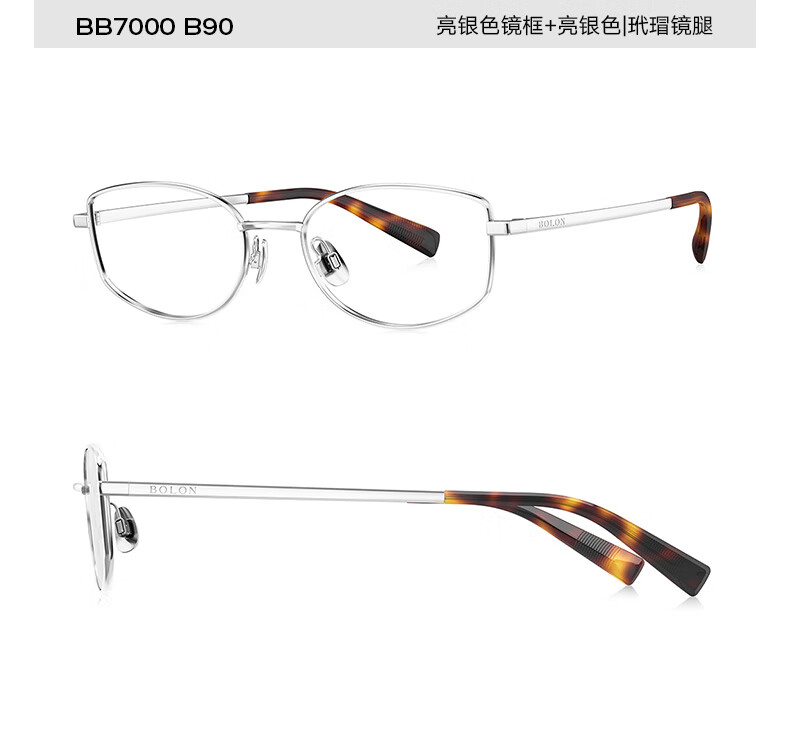 BOLON暴龙眼镜25年新品杨紫林一同款光学镜复古猫眼钛架近视眼镜BB7000 【明星同款】B90 亮银色 单镜框