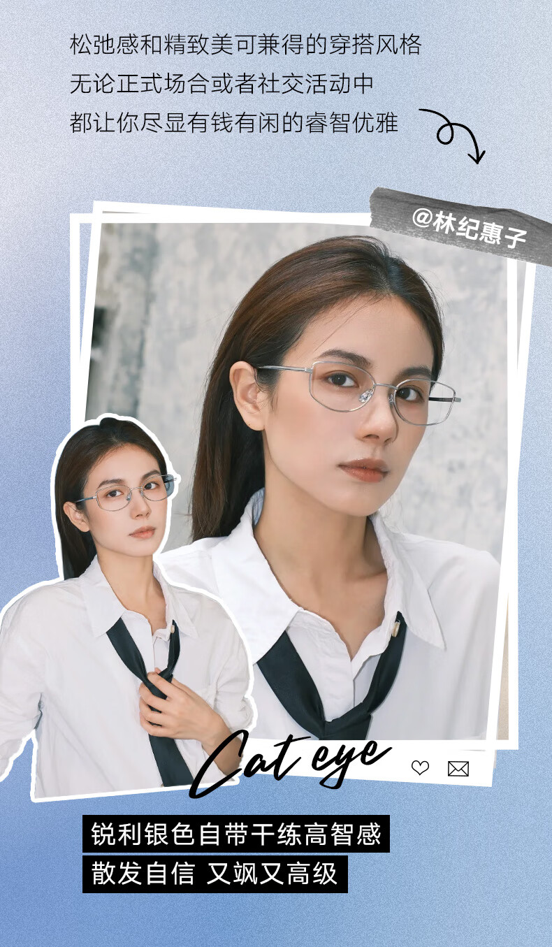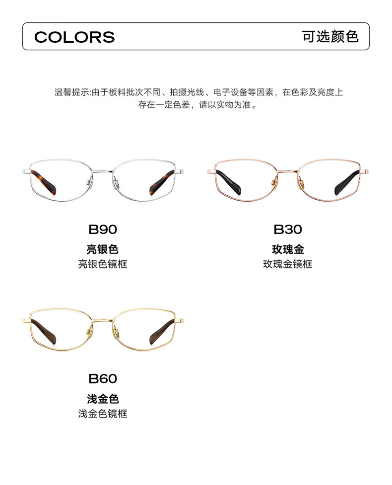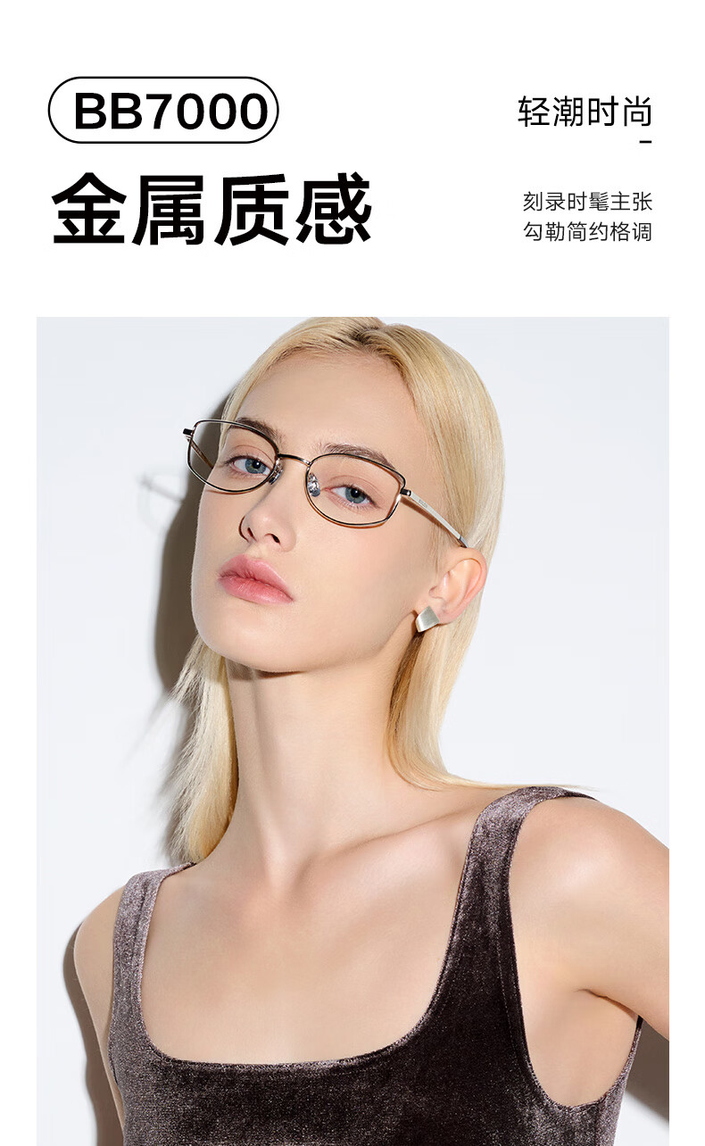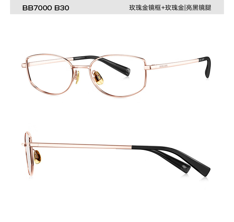 BOLON暴龙眼镜25年新品杨紫林一同款光学镜复古猫眼钛架近视眼镜BB7000 【明星同款】B90 亮银色 单镜框
