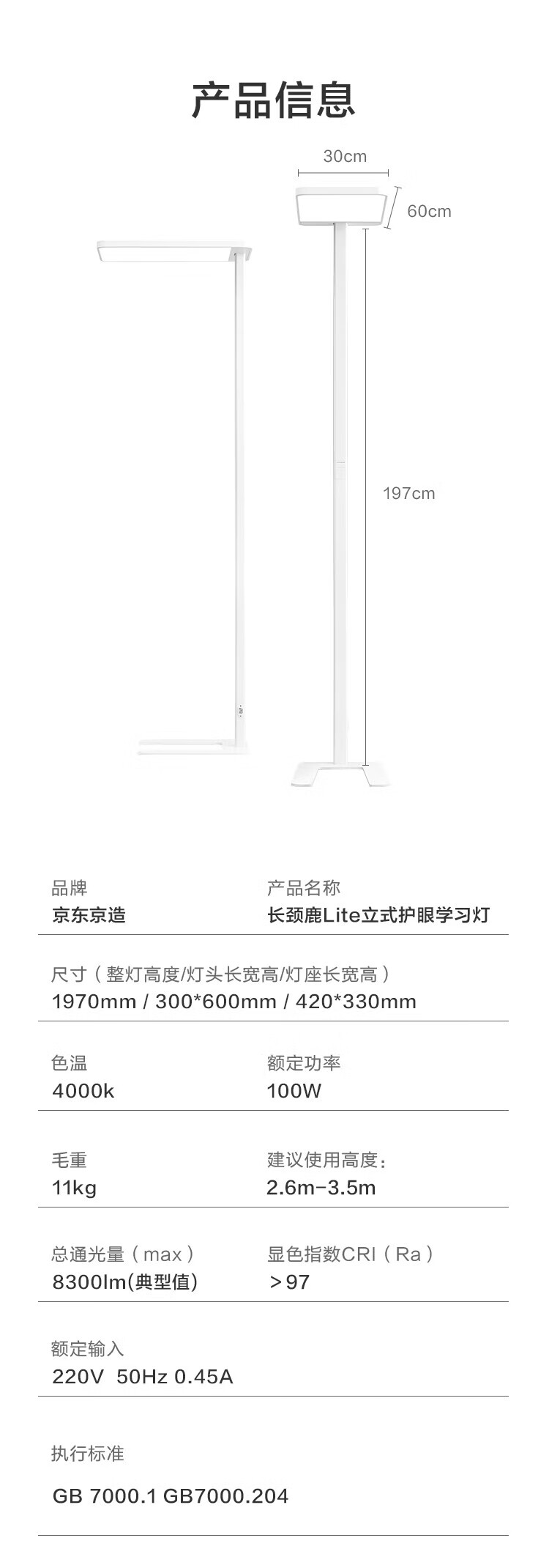 京东京造【国家补贴】长颈鹿Lite立式护眼台灯学习灯LED普瑞全光谱大路灯