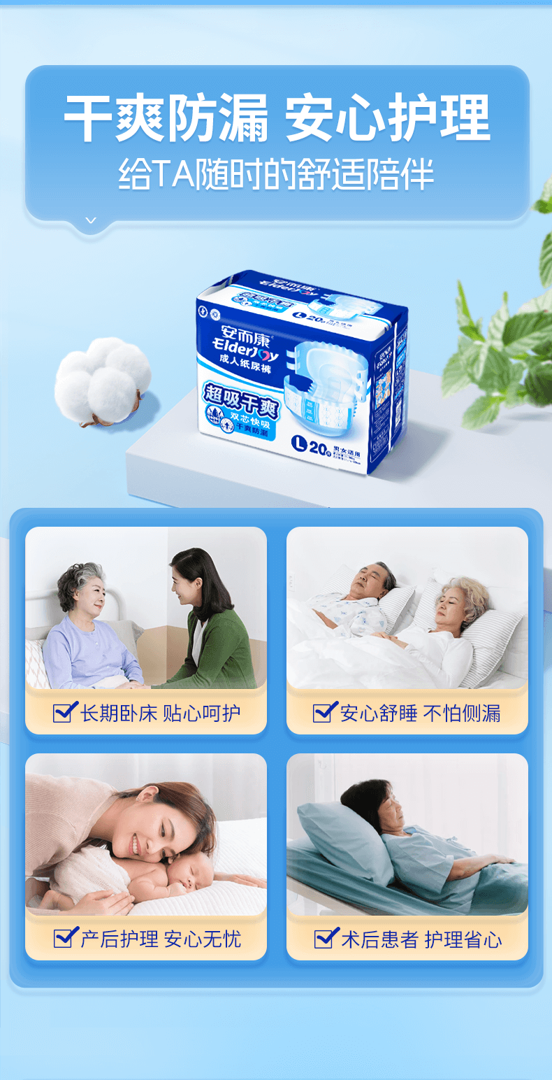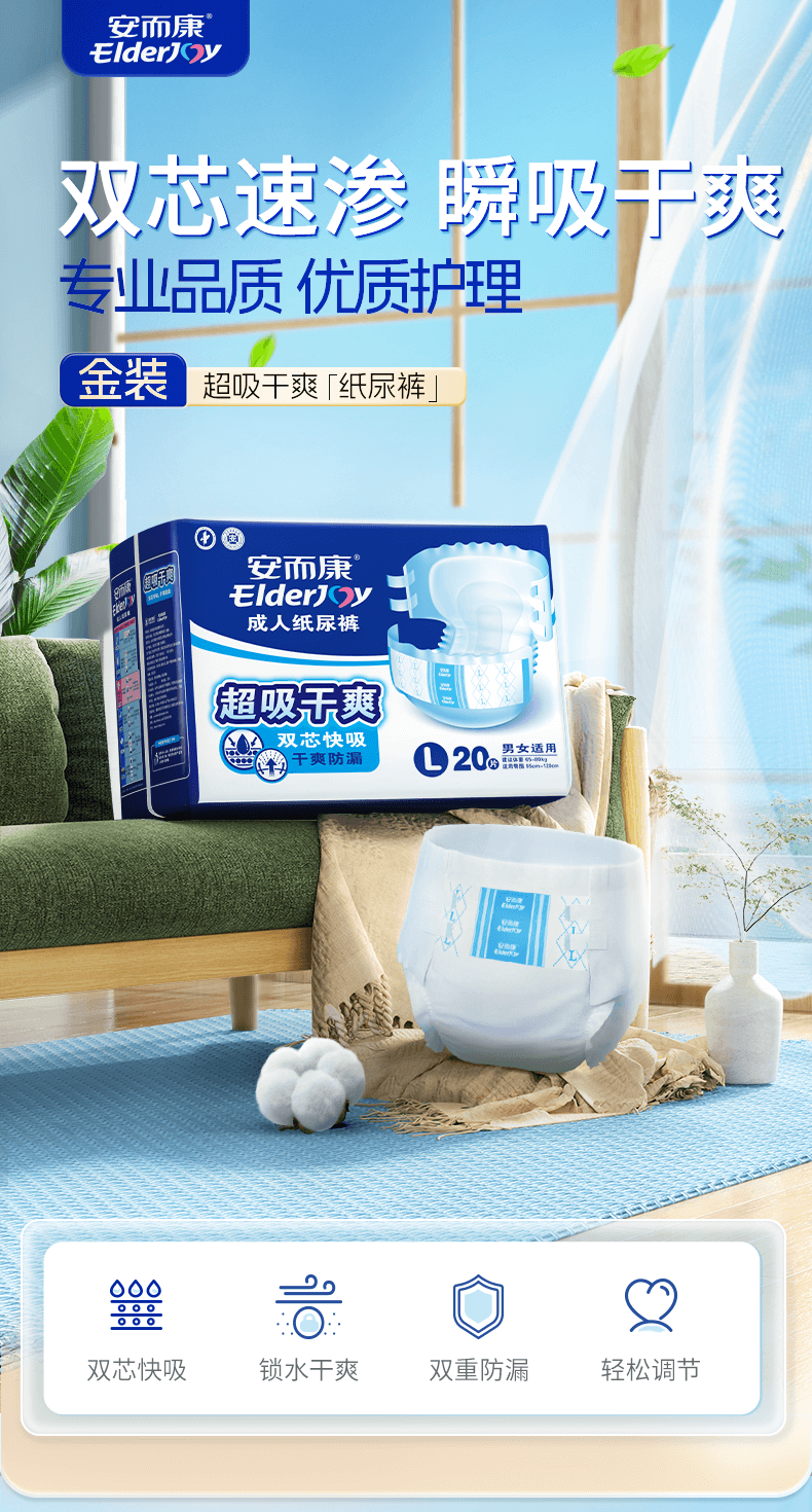 安而康(Elderjoy) 超吸干爽成人纸尿裤 超值干爽 尿不湿 双芯加厚 产妇老年尿裤 【本店T0P1】超吸干爽 M码 80片 /箱