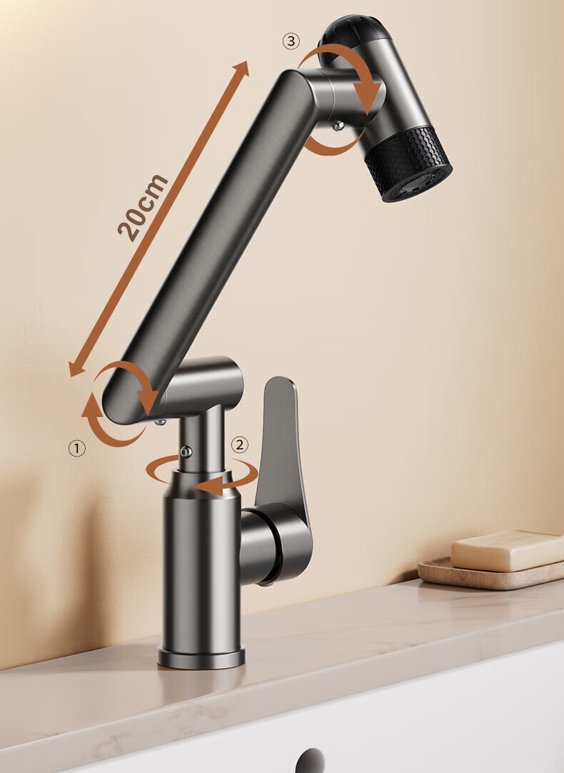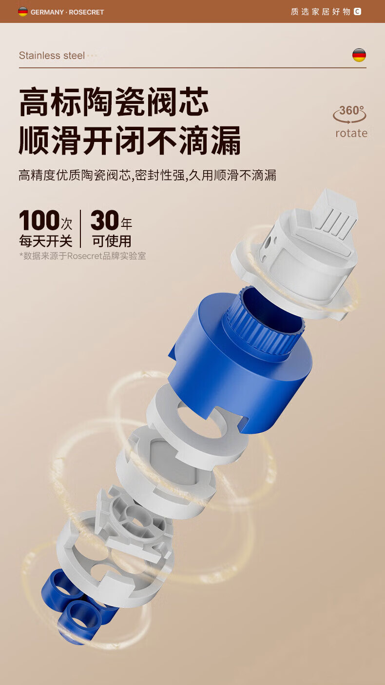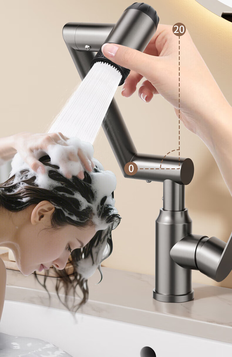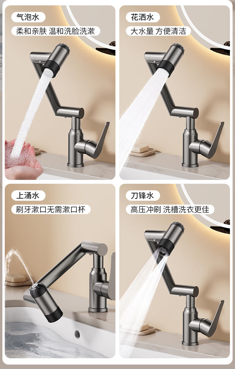 Rosecret【德国】304不锈钢水龙头洗脸盆卫生间面盆洗手盆机械臂冷热龙头 304不锈钢台盆龙头【四档枪灰色】面盆洗脸漱口神器 增压防溅大流量出水丨配80cm冷热进水管*2