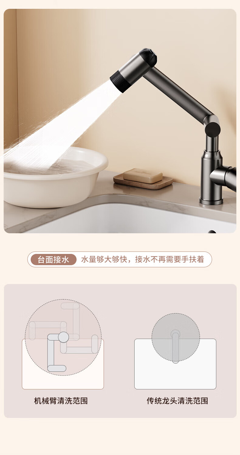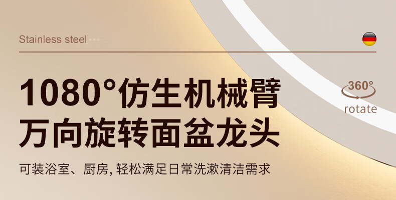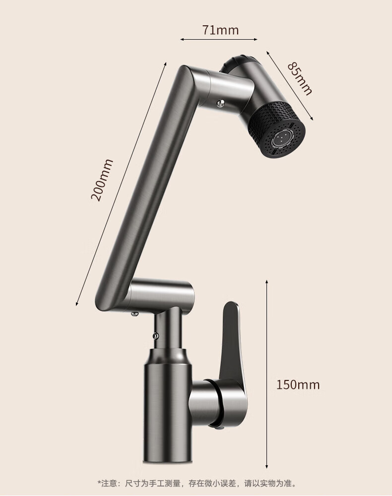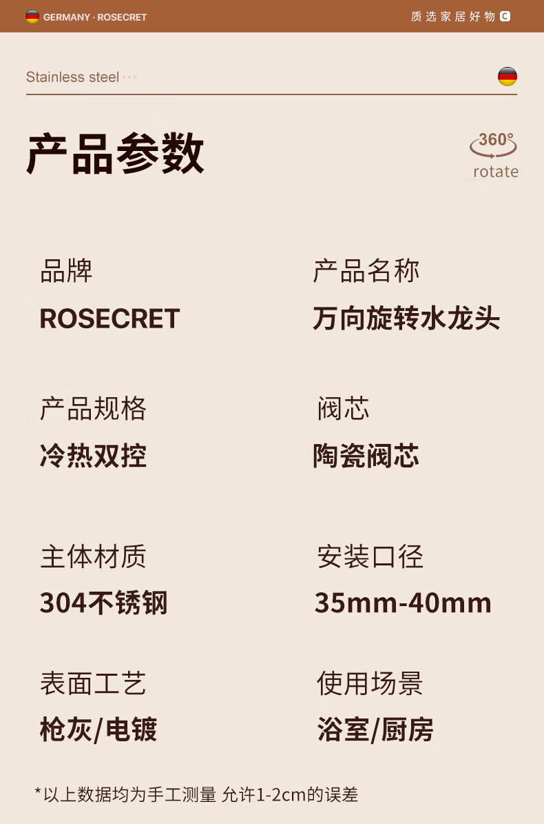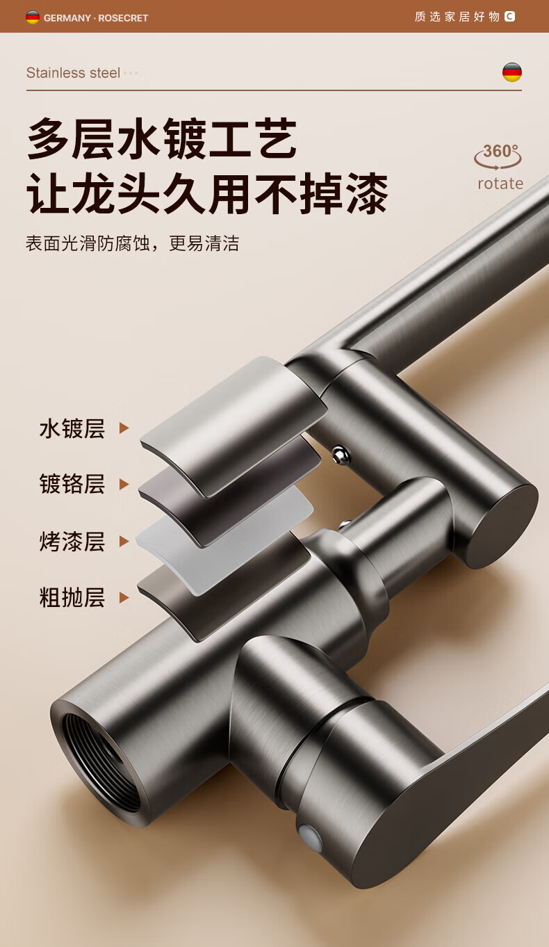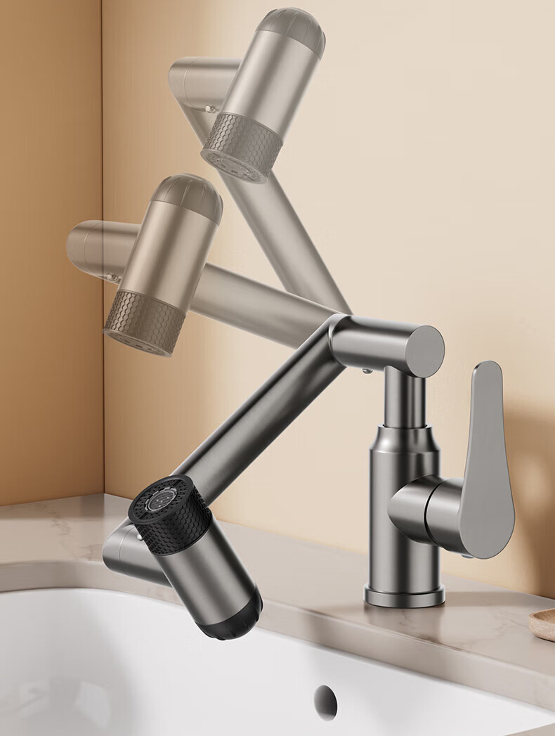 Rosecret【德国】304不锈钢水龙头洗脸盆卫生间面盆洗手盆机械臂冷热龙头 304不锈钢台盆龙头【四档枪灰色】面盆洗脸漱口神器 增压防溅大流量出水丨配80cm冷热进水管*2