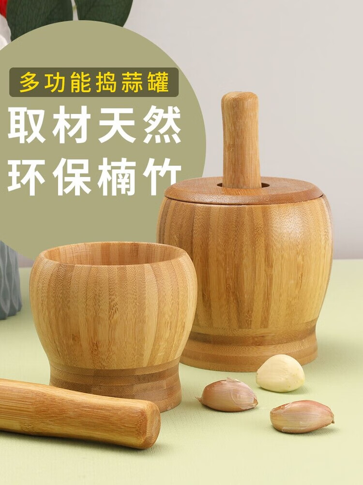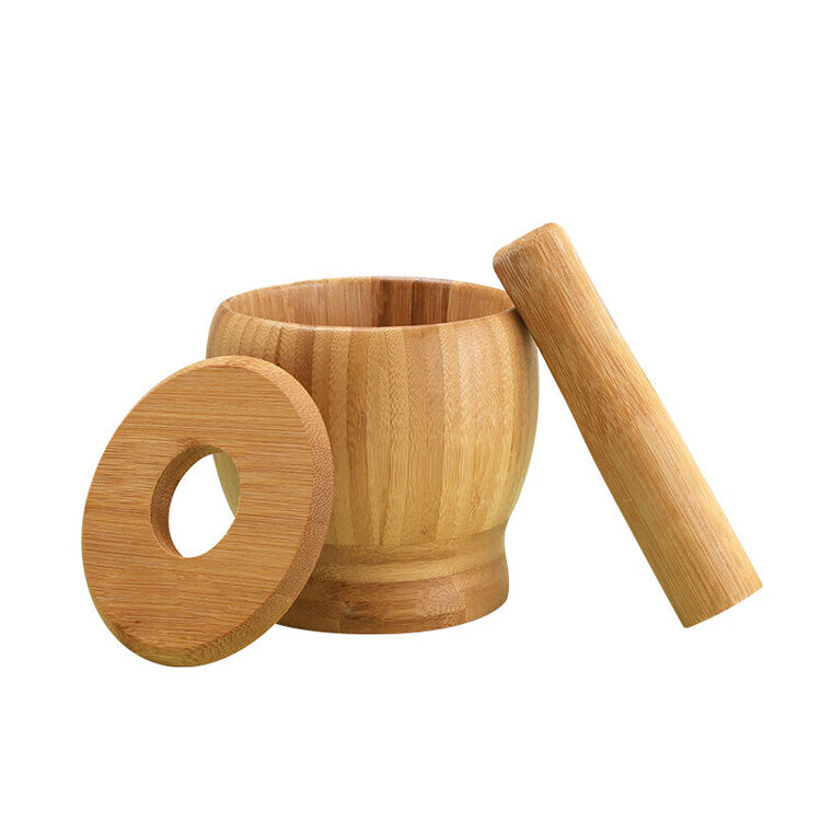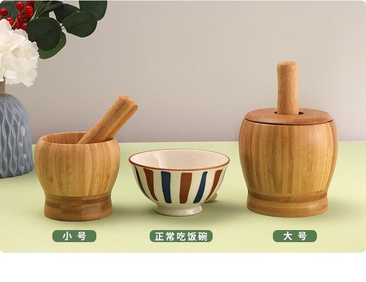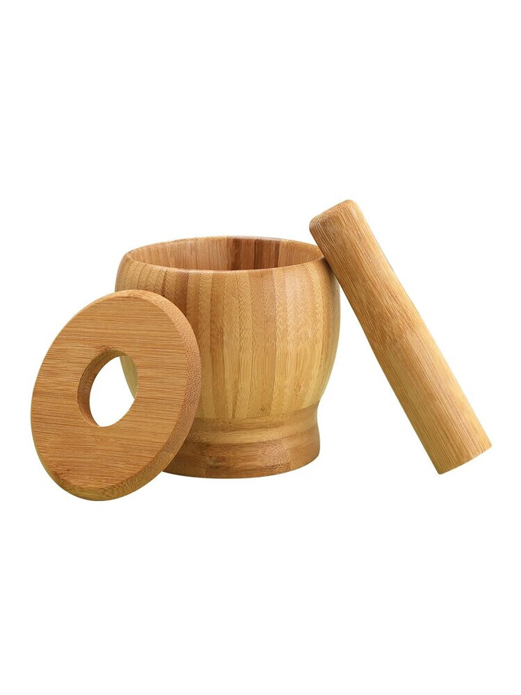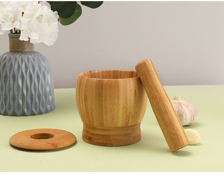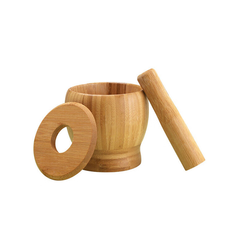 GIOIO天然竹木捣碎罐家用带盖老式蒜臼子老款新款手工捣碎器竹研磨药罐 带盖小号【9CM*9CM】