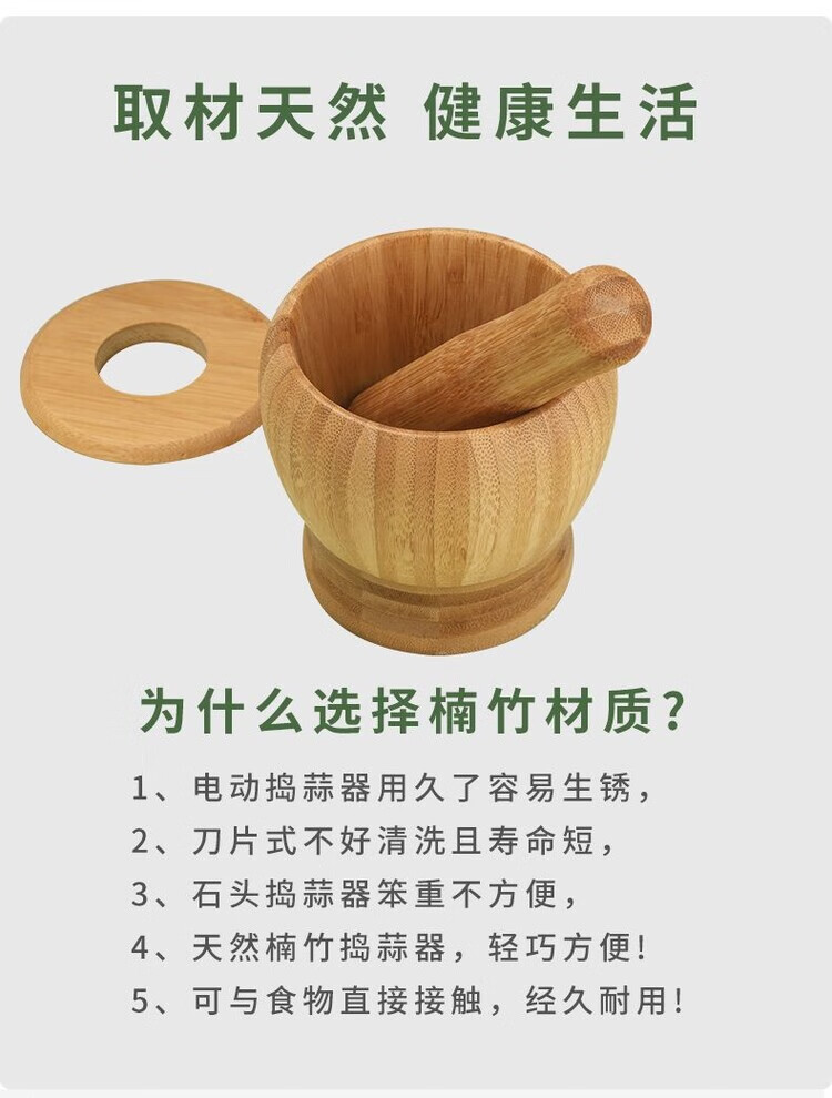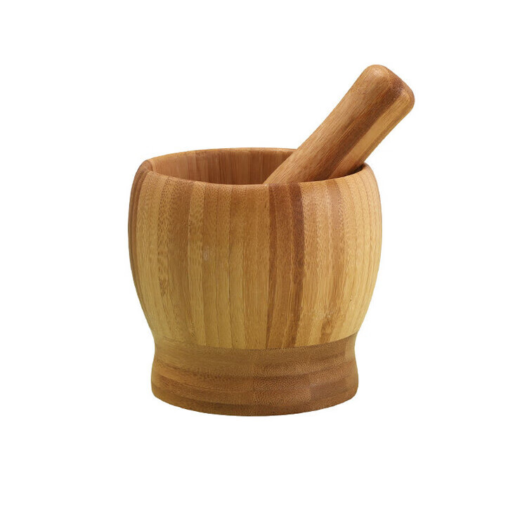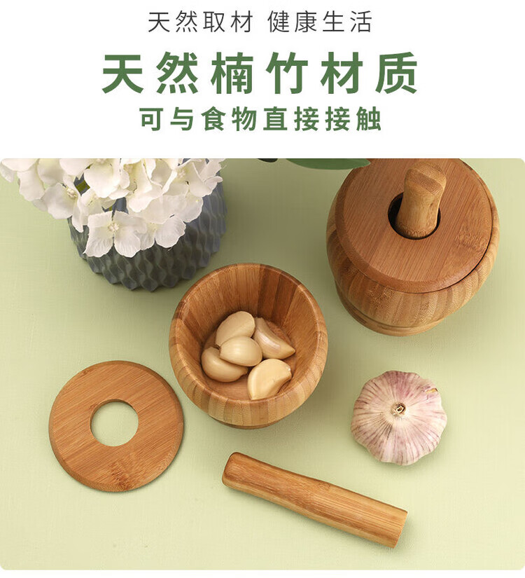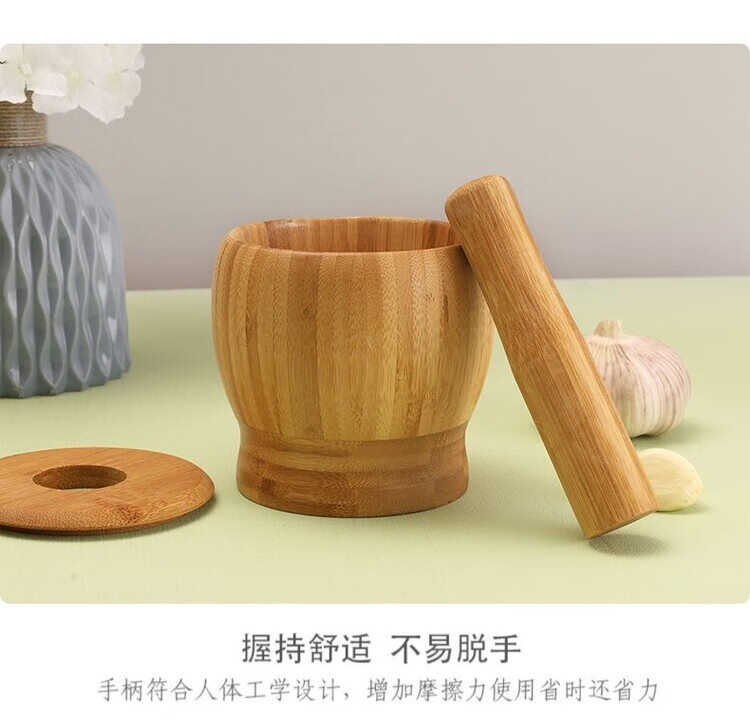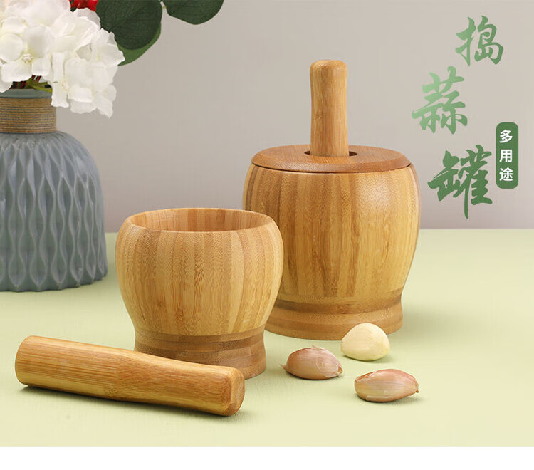 GIOIO天然竹木捣碎罐家用带盖老式蒜臼子老款新款手工捣碎器竹研磨药罐 带盖小号【9CM*9CM】