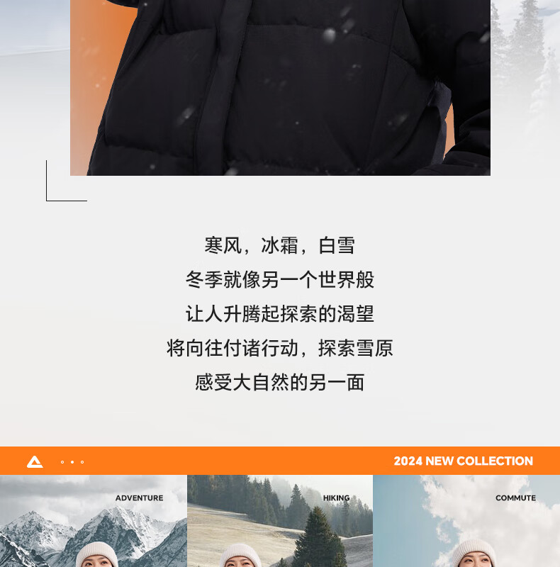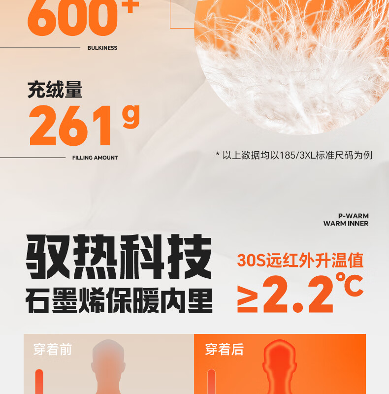 鸿星尔克四防|羽绒服男秋冬新款保暖防风防污防泼水户外休闲运动外套夹克 正黑 2XL