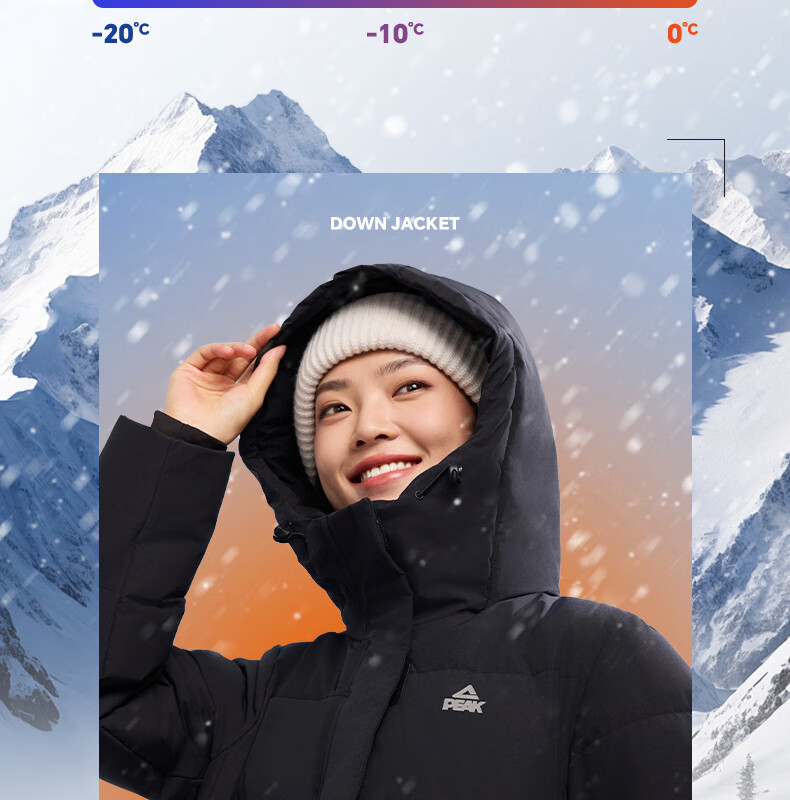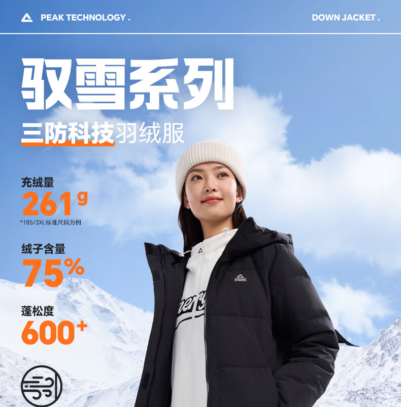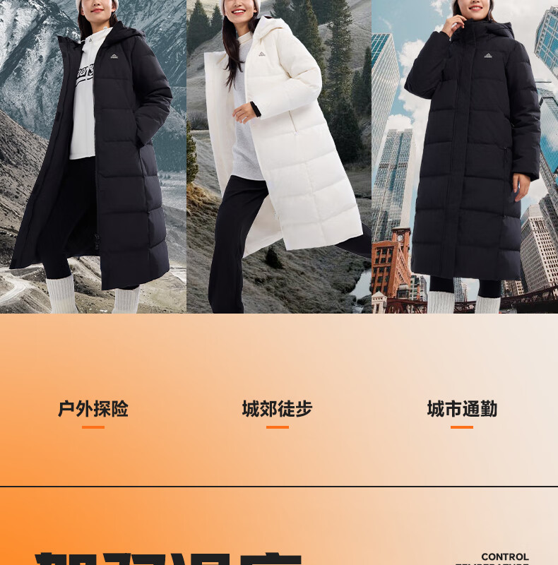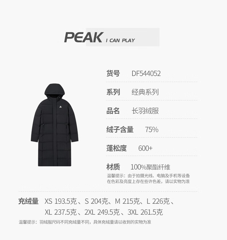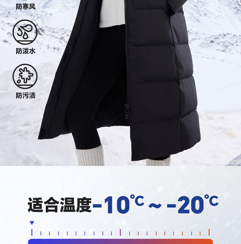 匹克长款羽绒服女冬季三防科技保暖防风防寒加厚75绒运动外套DF544052