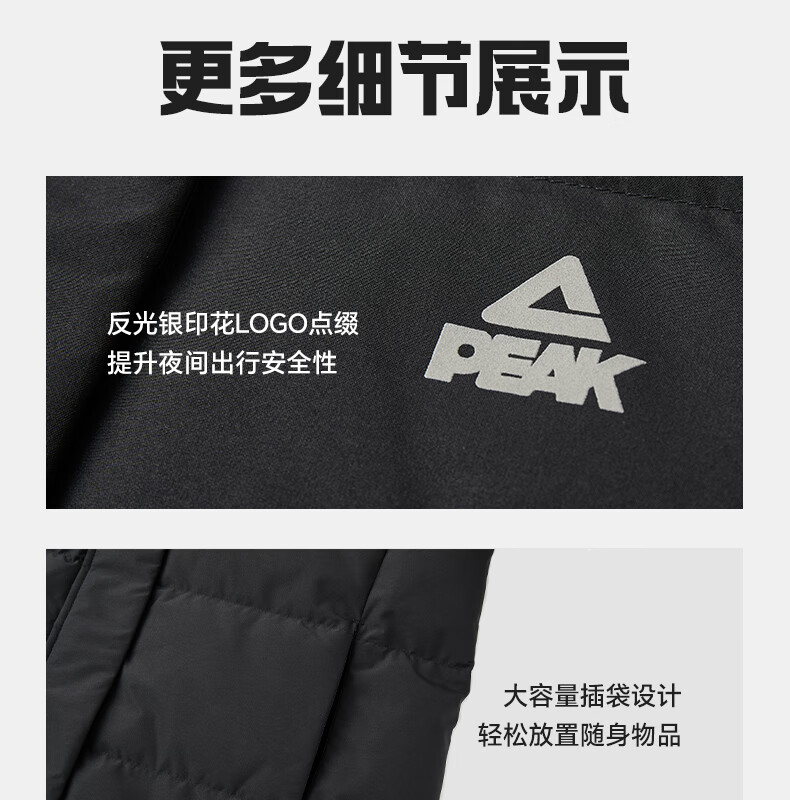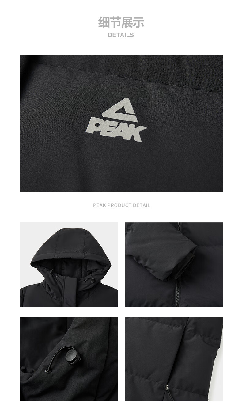 匹克驭雪长款羽绒服男冬季新款三防科技保暖通勤学生长款过膝连帽外套 黑色 XL