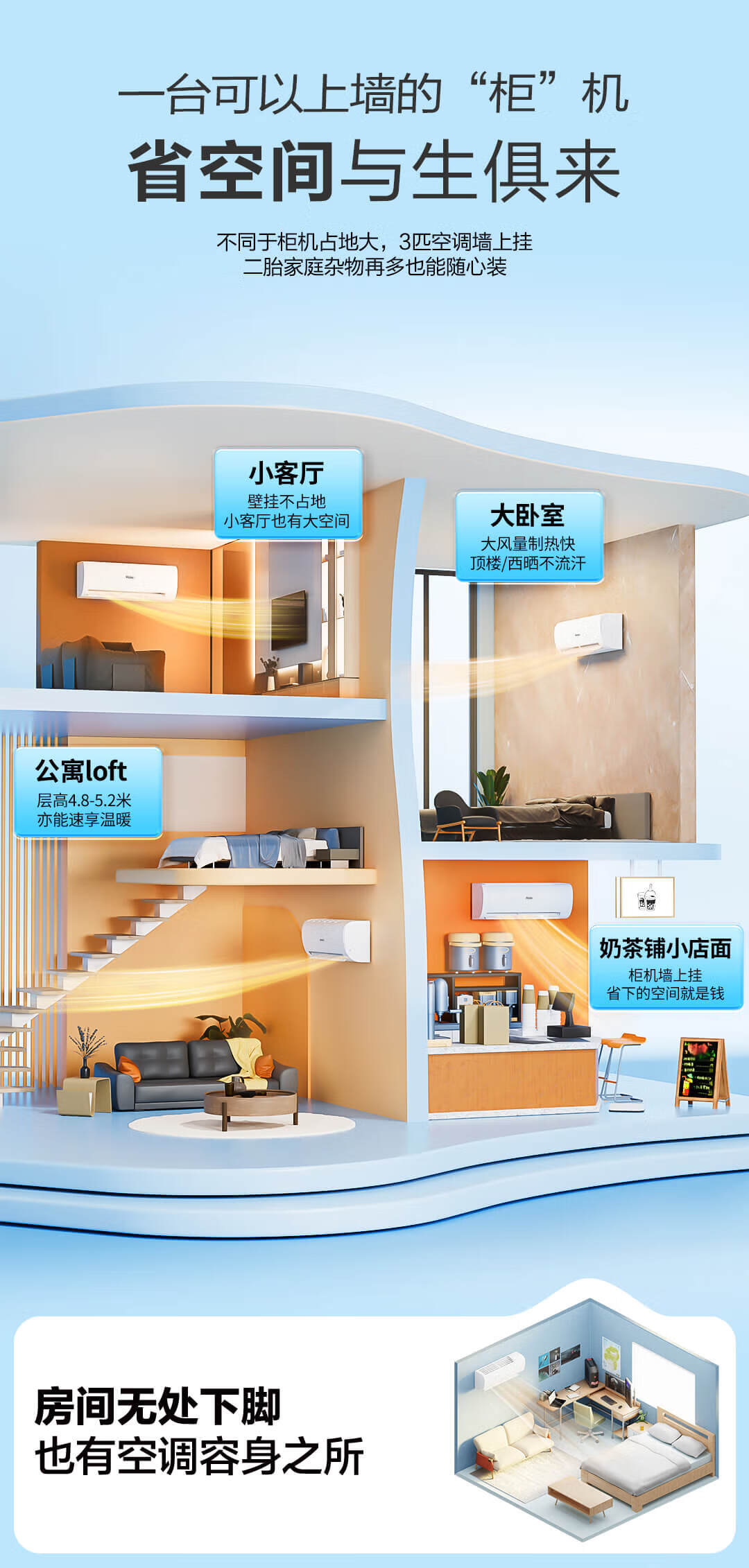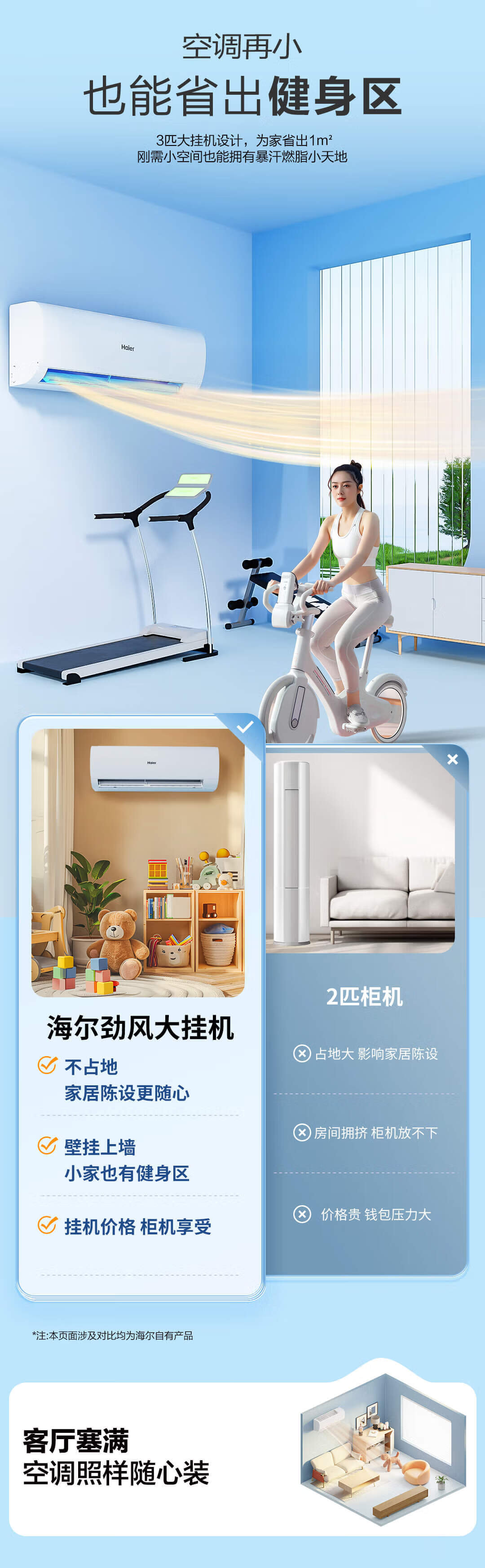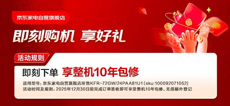 海尔(Haier)空调挂机3匹【小红花】一级能效 省电变频冷暖客厅大挂机大风量 KFR-72GW/24PAA81U1