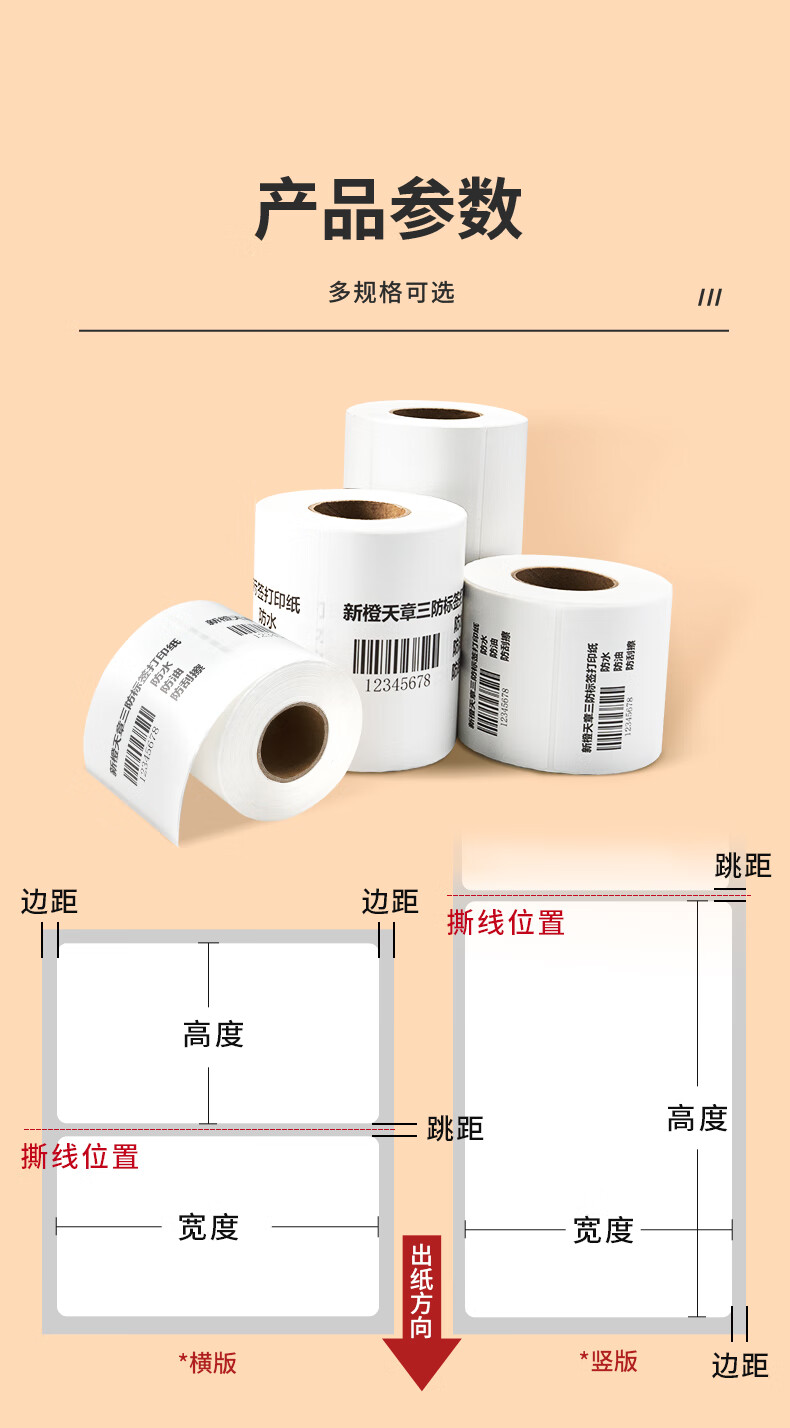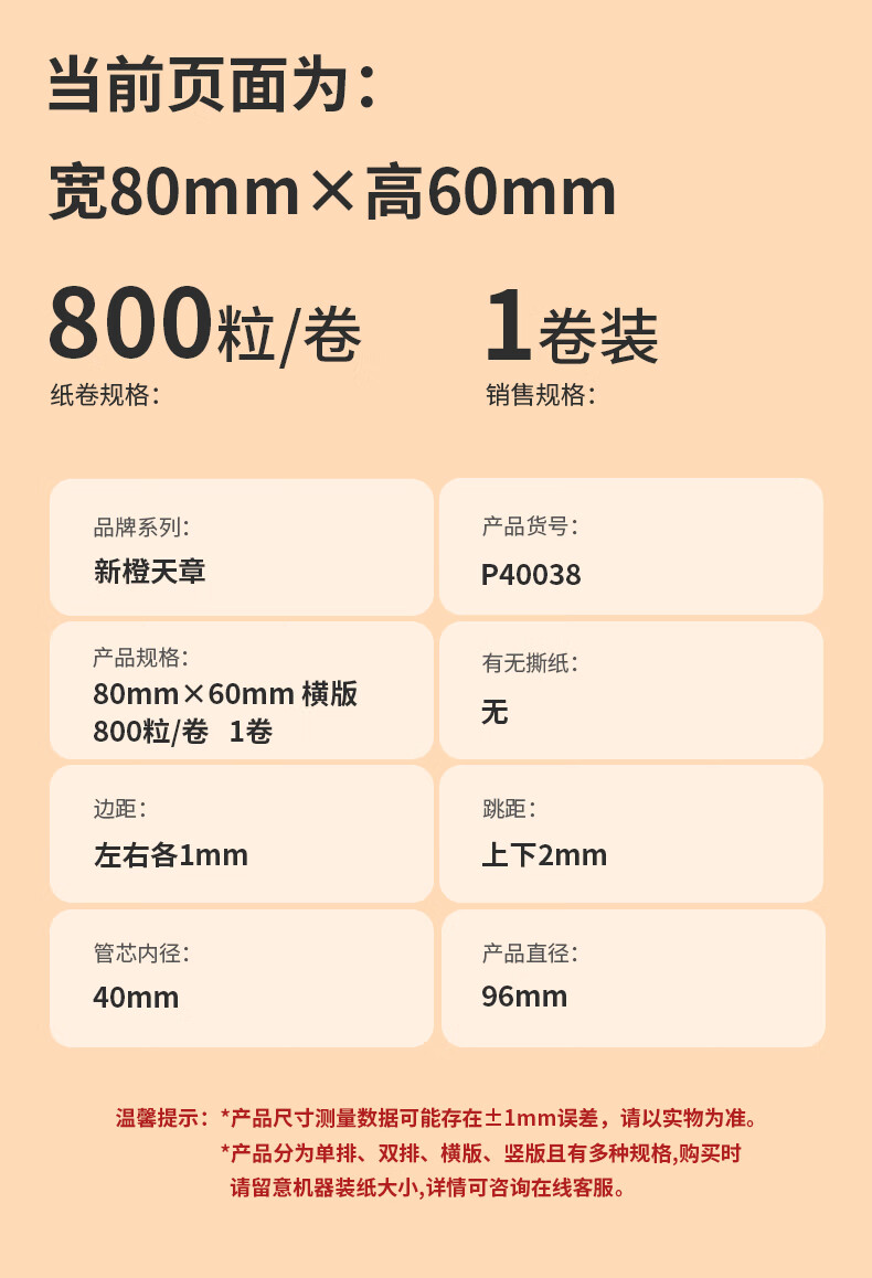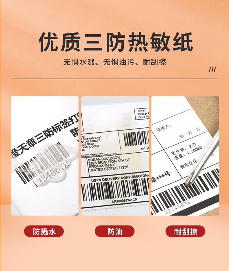 天章 (TANGO)【可定制】80x60mm 800张*1卷新橙天章三防热敏打印纸不干胶标签纸快递面单货物条码适配3寸标签机