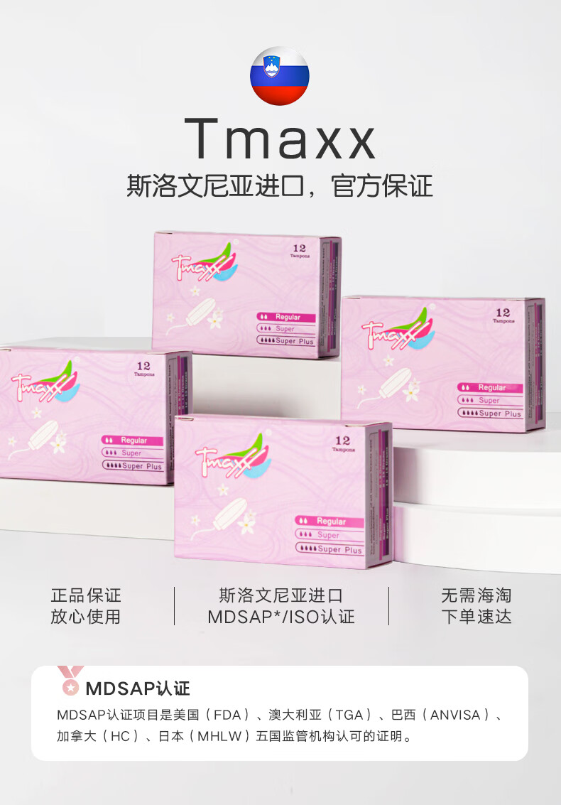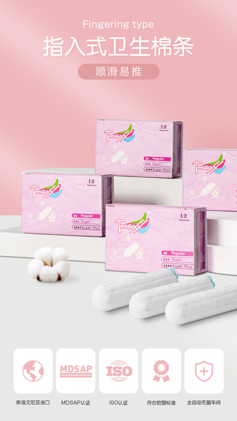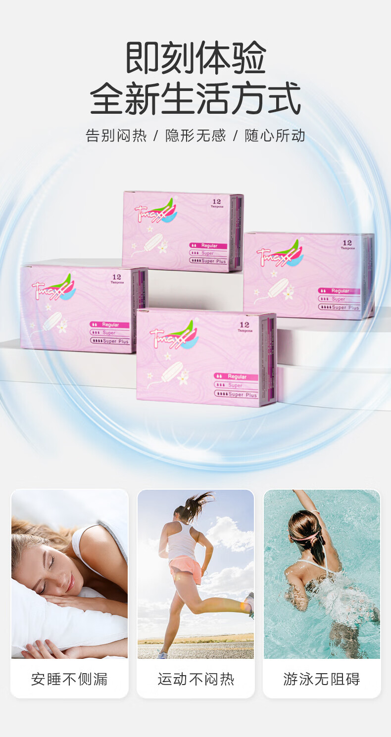 Tmaxx卫生棉条内置卫生巾日夜组合48支(普通12+大流量24+超多12)自营