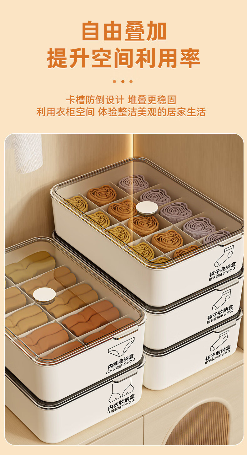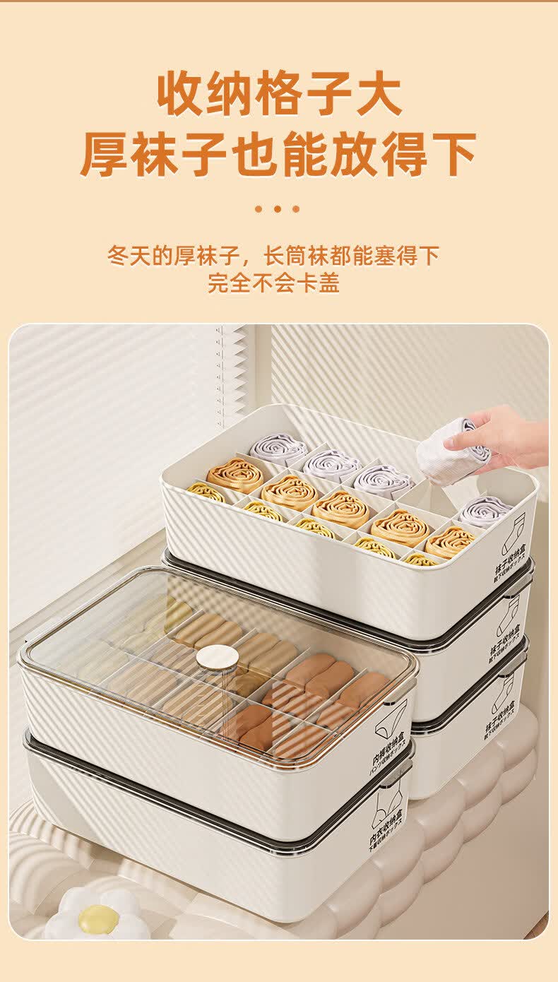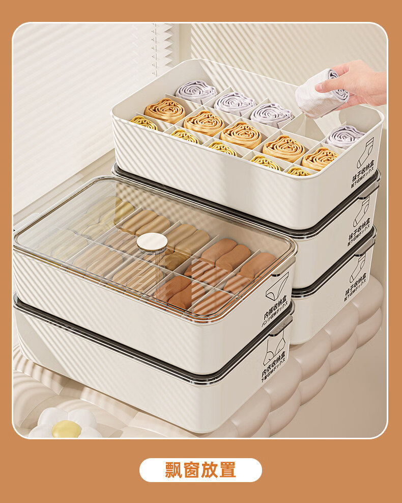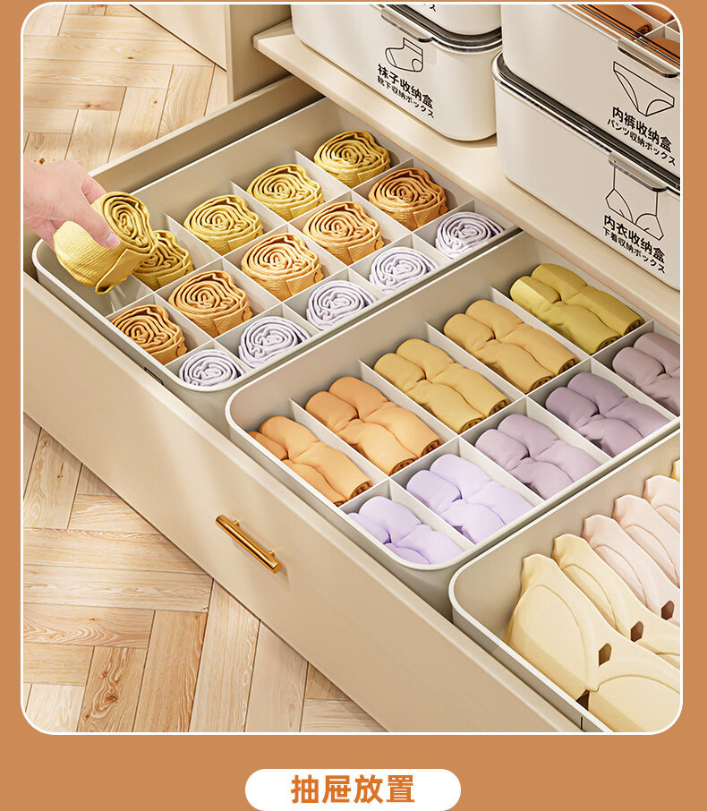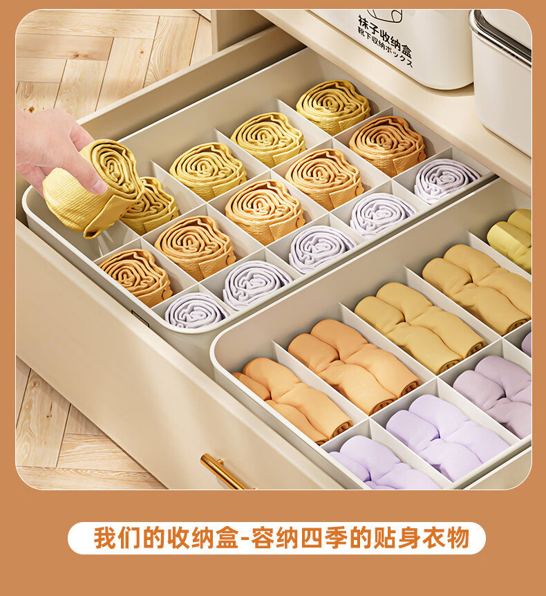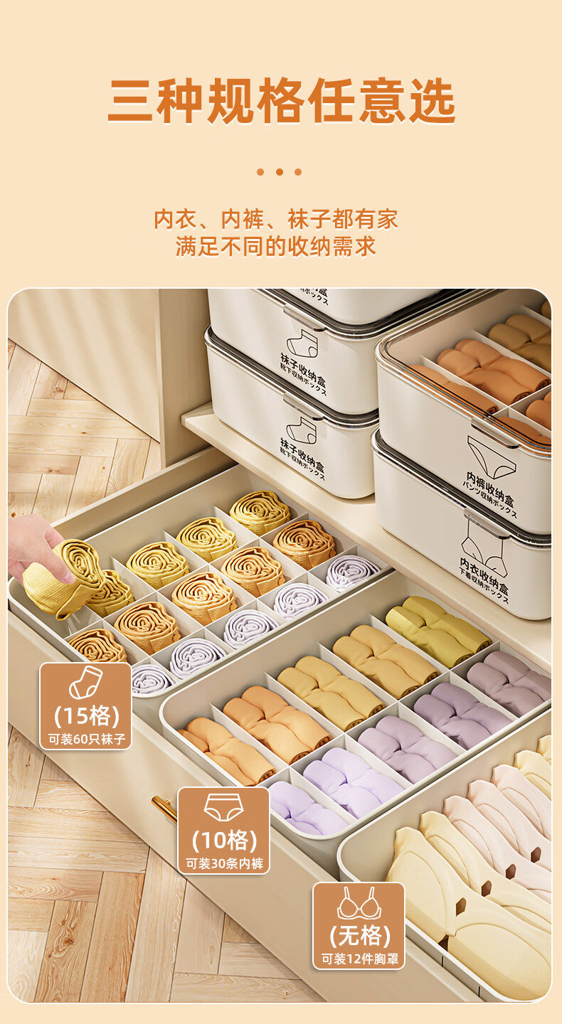 艾仕可(ASCOR)内衣内裤收纳盒家用宿舍衣柜装袜子三合一储物贴身衣物分格整理箱 带盖三件套【内衣+内裤+袜子】 送香薰 驱虫除螨